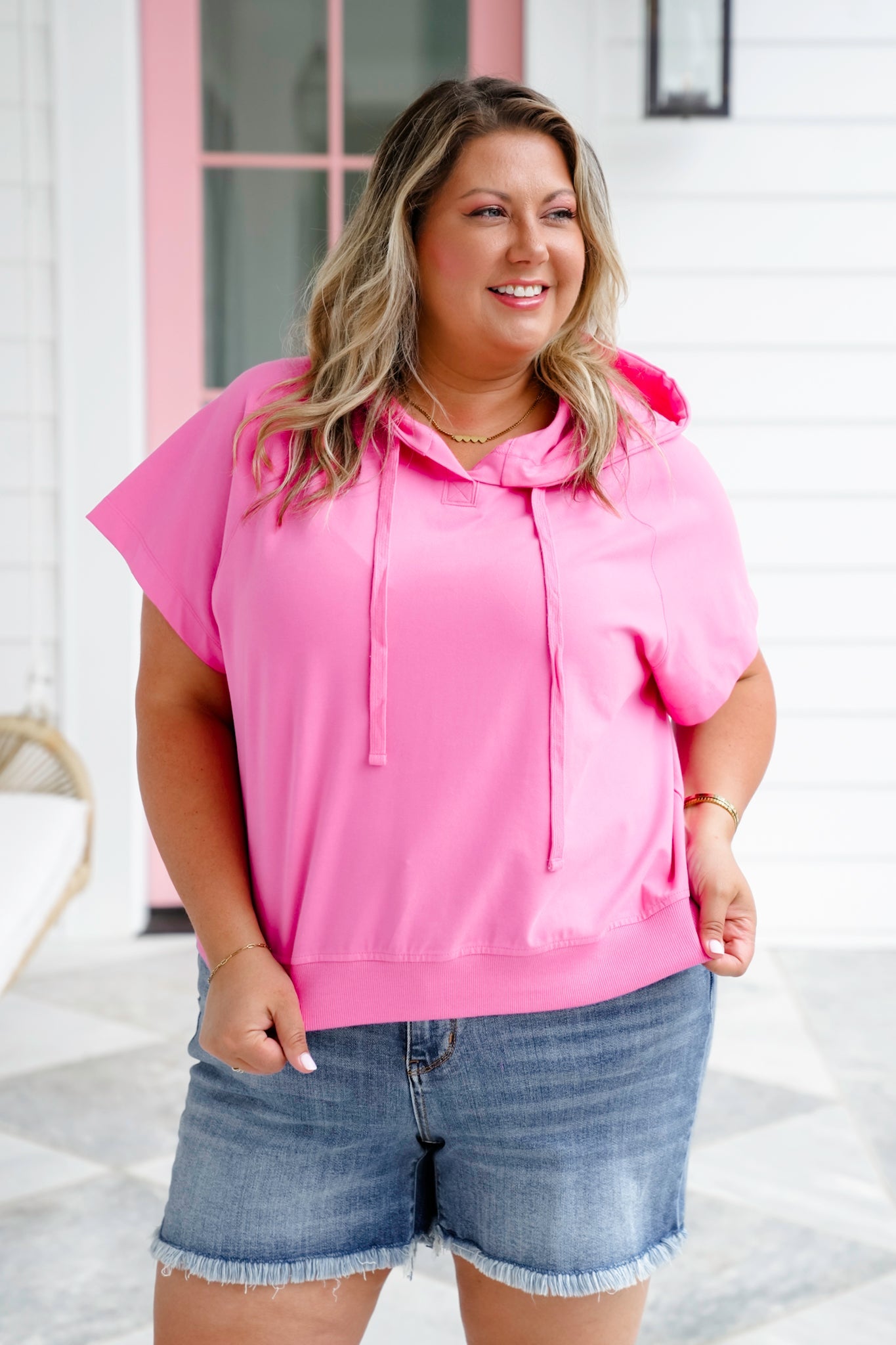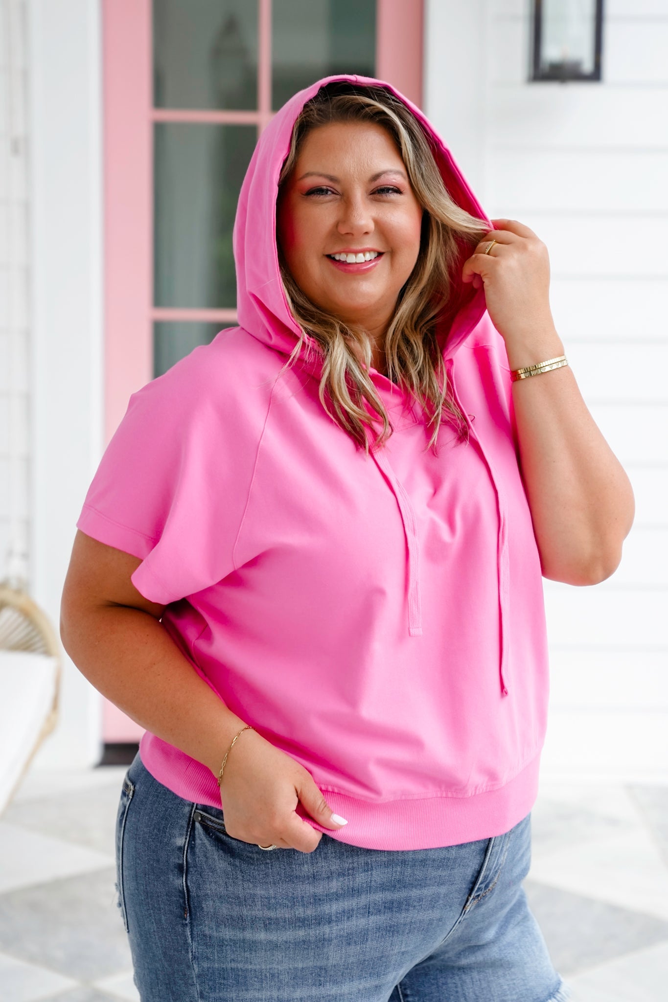 This hoodie is what happens when your favorite sweatshirt meets your go-to tee. With its soft stretch, drawstring hood, and short sleeves, it's made for laid-back layering. Pair it with joggers or denim shorts and your favorite high-tops—this one’s made for off-duty cool.