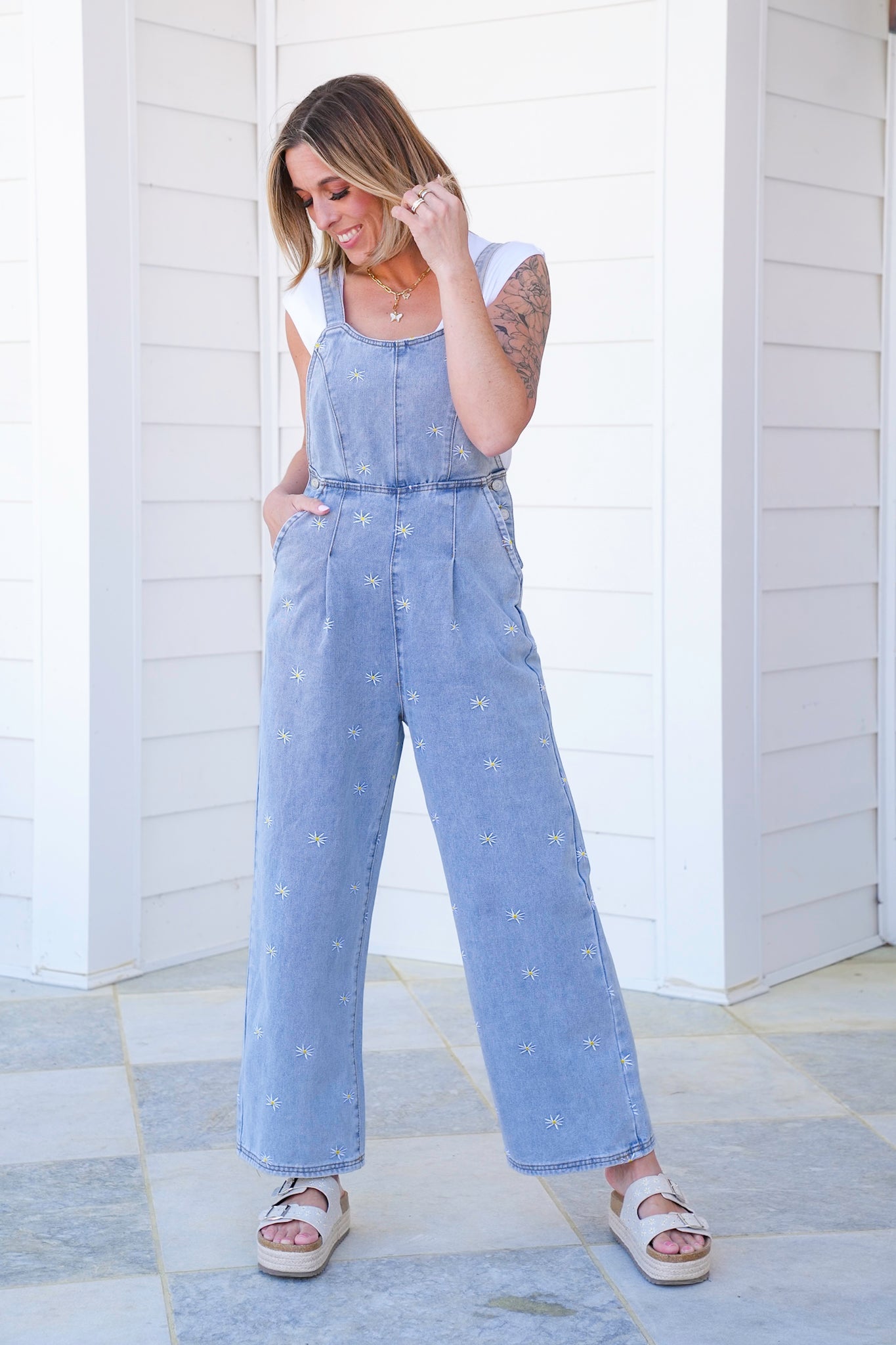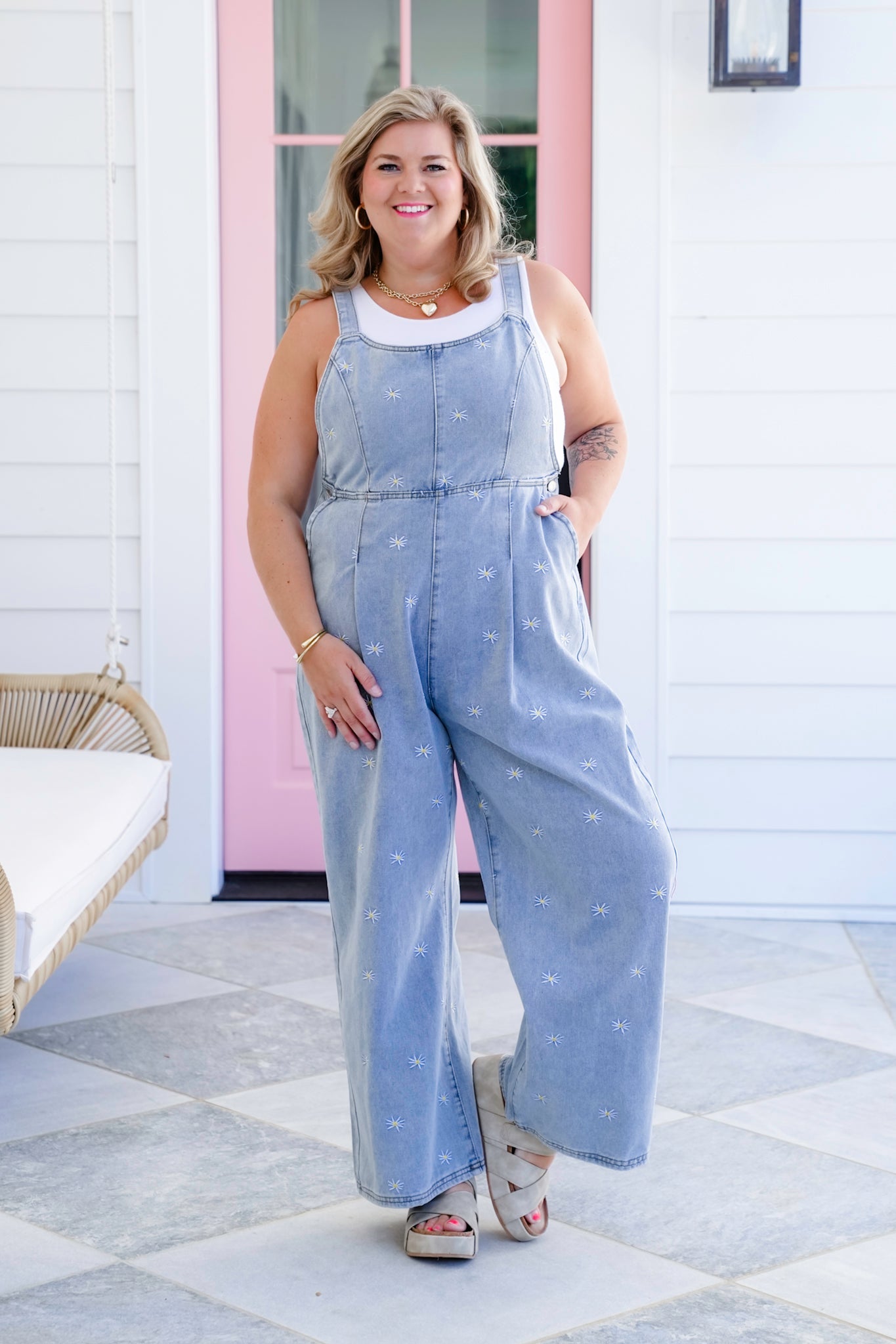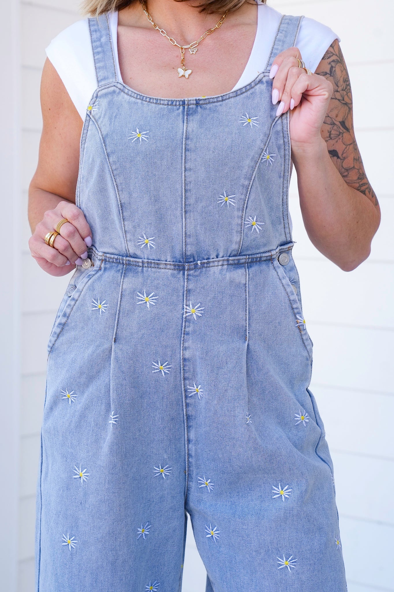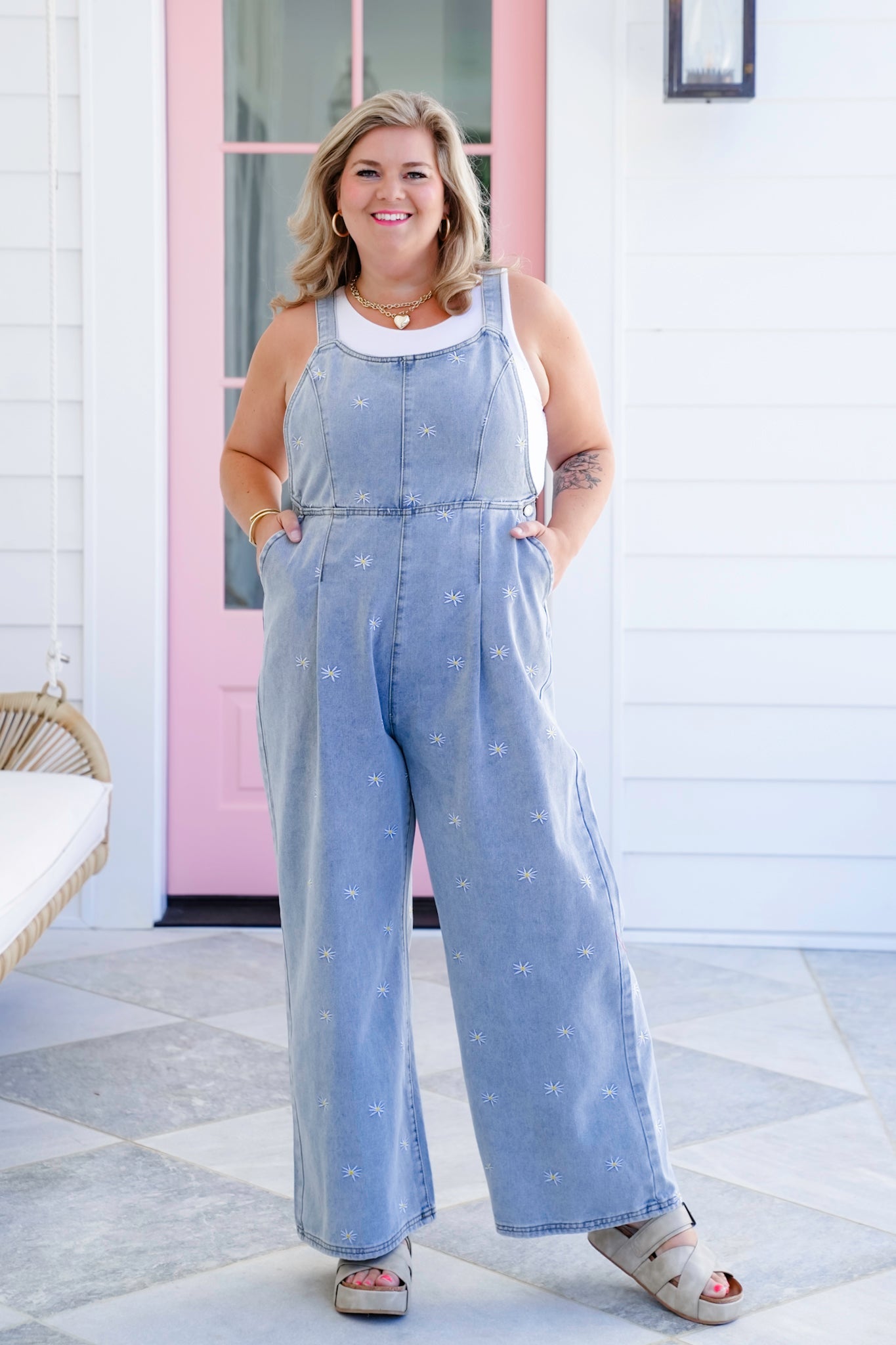 These denim overalls are a total game-changer! The sweet daisy embroidery adds a touch of whimsy to the classic overall style. The adjustable straps and elastic back waistband make for a relaxed, easy fit that’s ideal for any casual outing. Dress them up with a blouse or keep it cool with a simple tee!