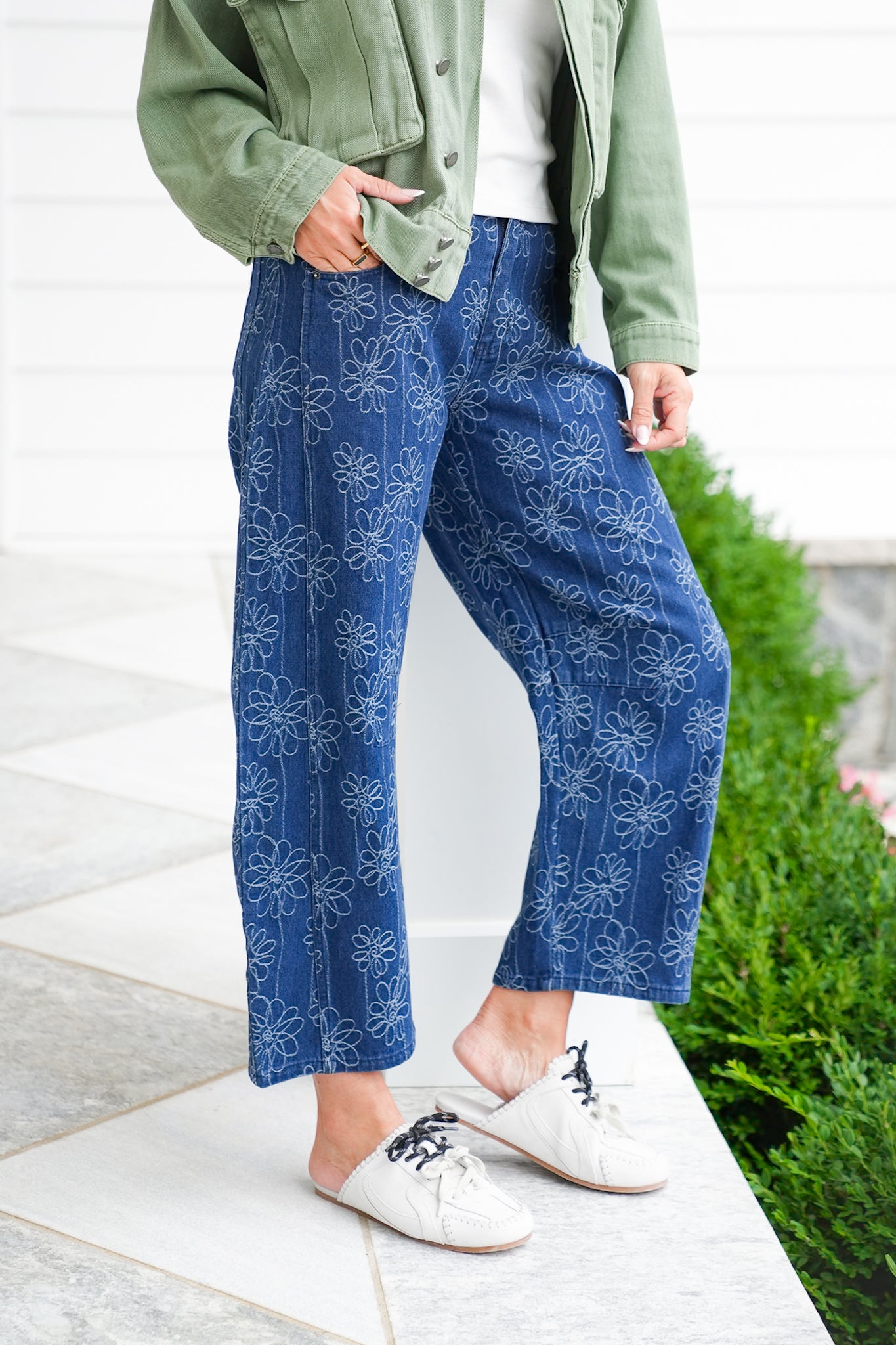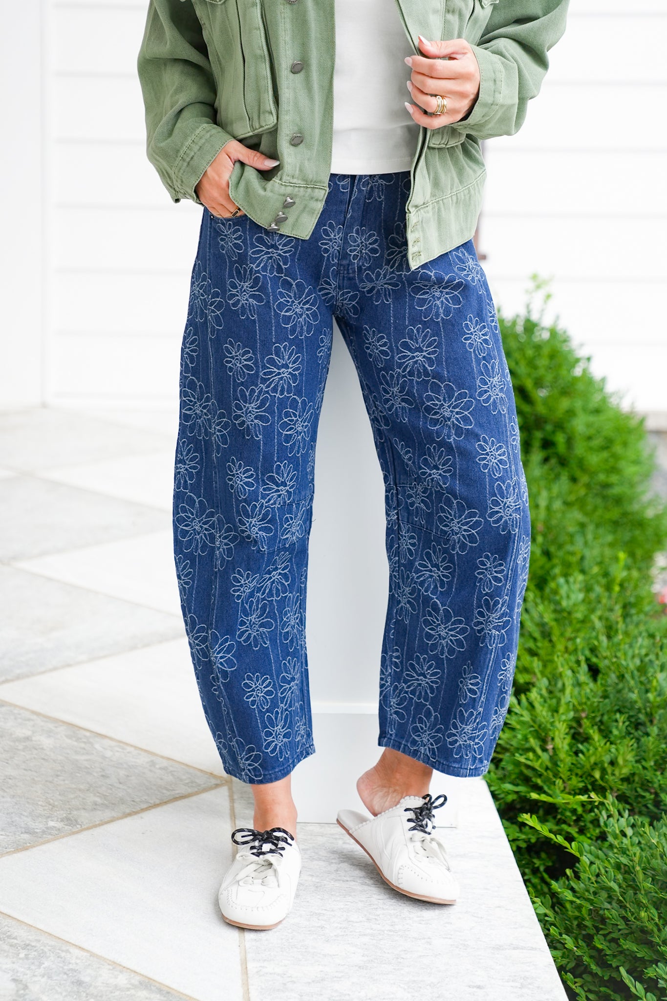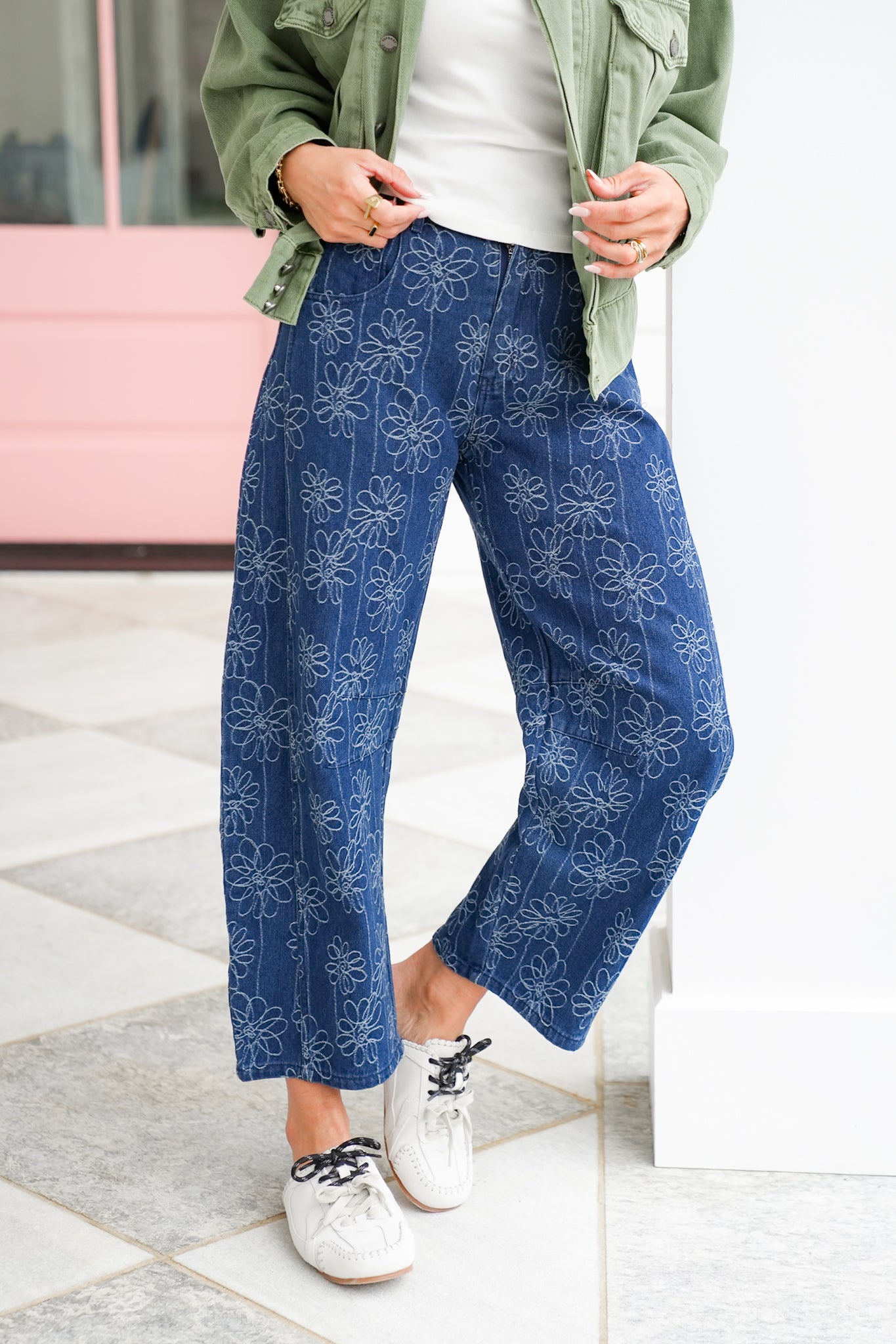 Step out in denim that steals the spotlight. These floral embroidered barrel jeans combine the comfort you love with a unique, flattering silhouette. The high waist pairs beautifully with tucked blouses, cropped knits, or fitted tees, while the embroidery adds a touch of artistry to your everyday look. Dress them up with heels or keep them casual with sneakers, you’ll love how versatile they are.