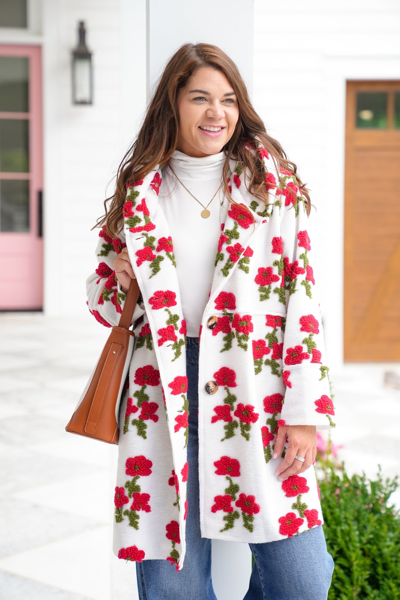 This coat is pure magic! It’s cozy enough to keep you warm on chilly days, yet stylish enough to make you the best-dressed in the room. The embroidery is striking and textured, giving you a boutique look that feels one-of-a-kind. Pair it with denim and booties for a casual yet elevated vibe, or throw it over a dress and tights for a night out. It’s the kind of piece that not only finishes an outfit, but becomes the outfit.
