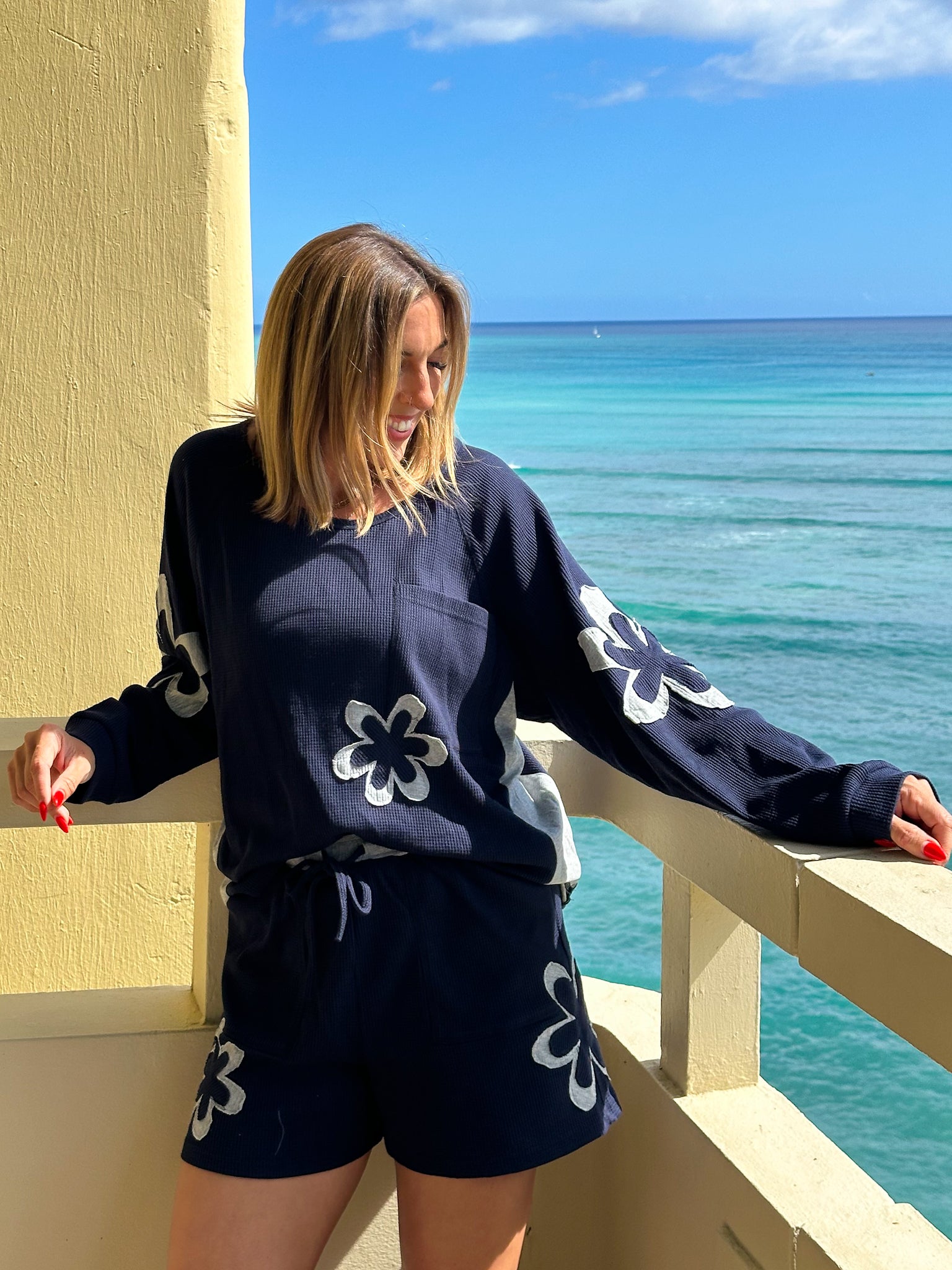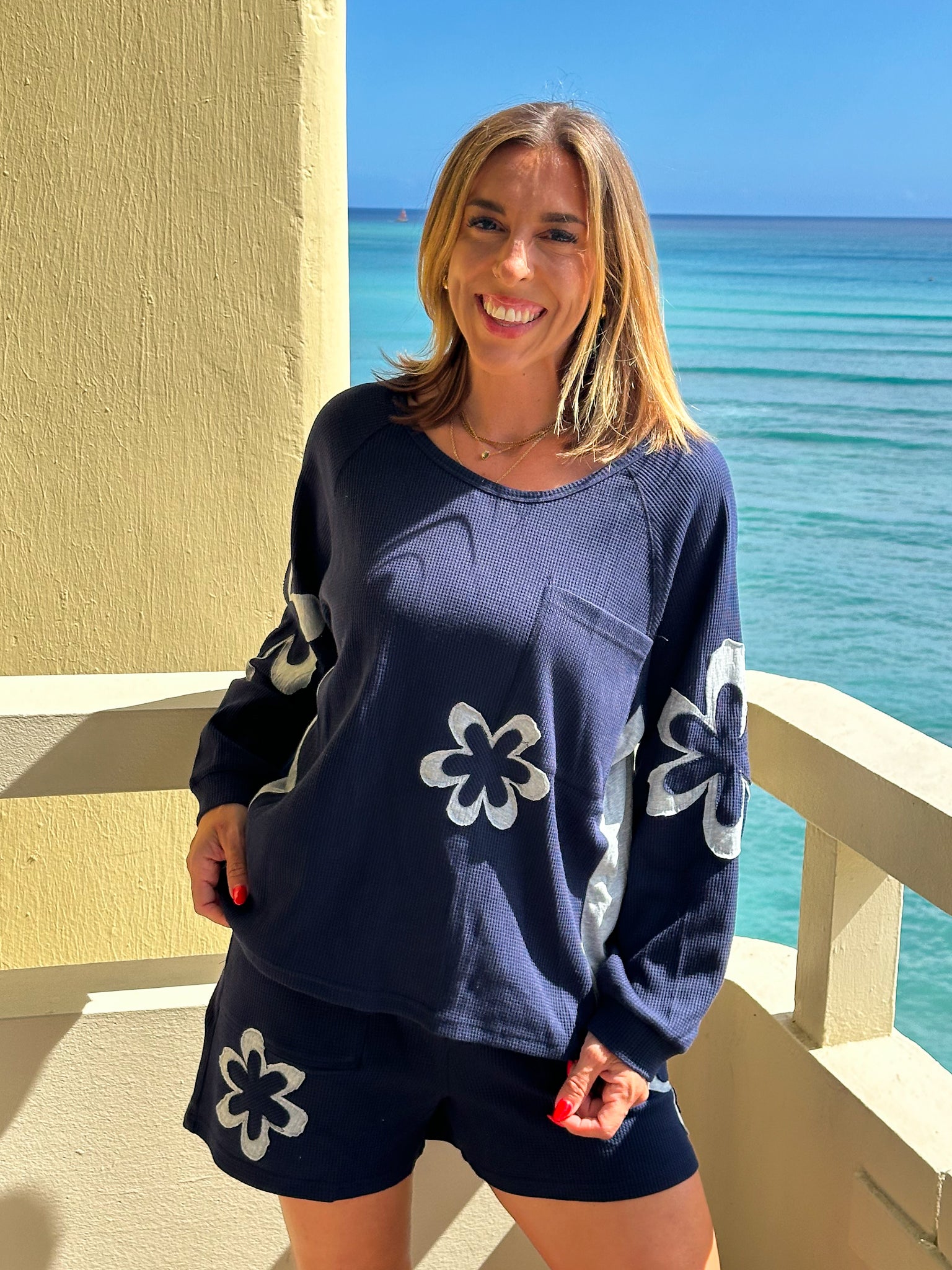 The floral patch thermal top is a fresh take on loungewear chic. With a relaxed fit and whimsical patchwork, it’s just as fun as it is cozy. Style it with the coordinating shorts for a complete set or layer it over denim for a weekend look that’s equal parts casual and stylish.