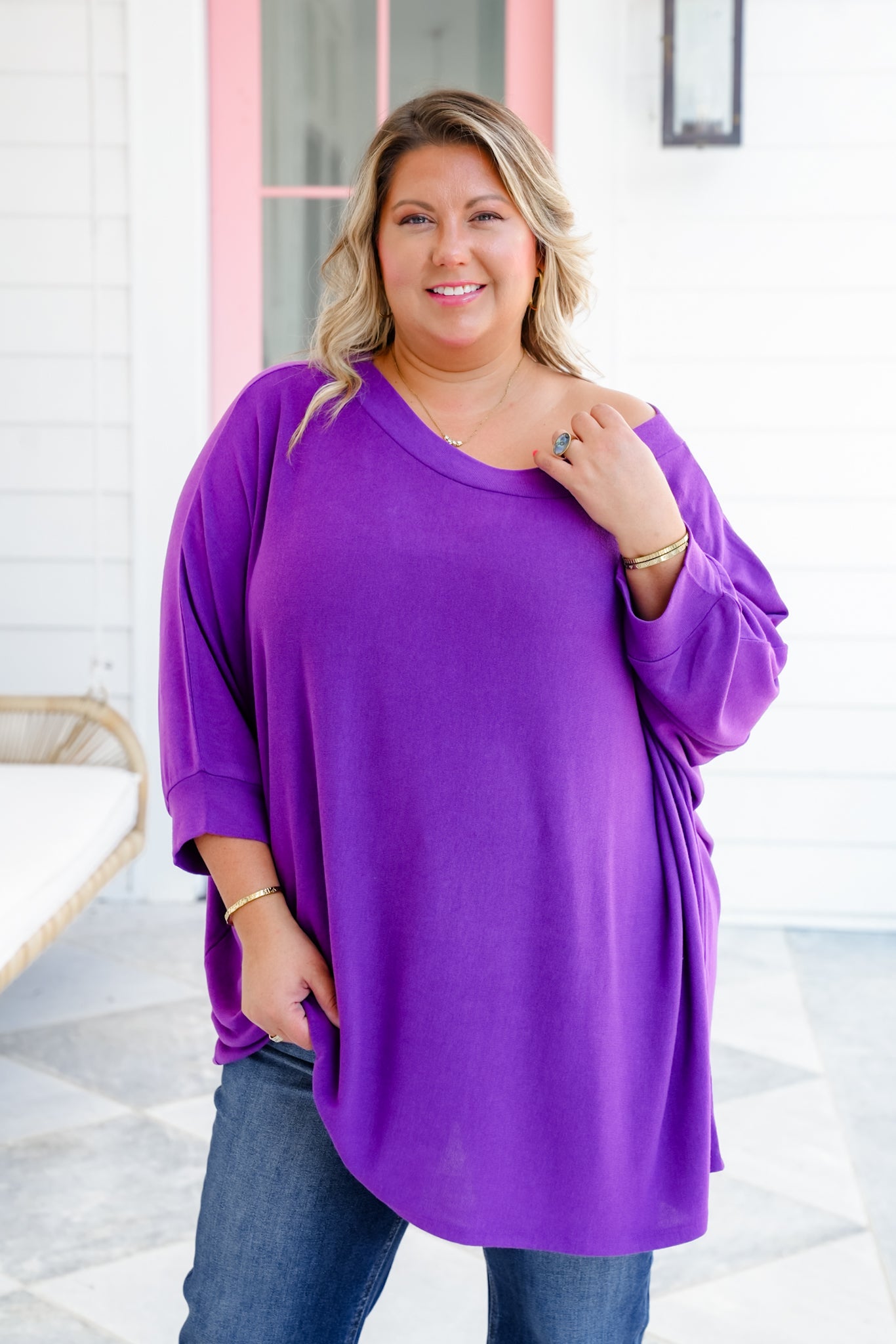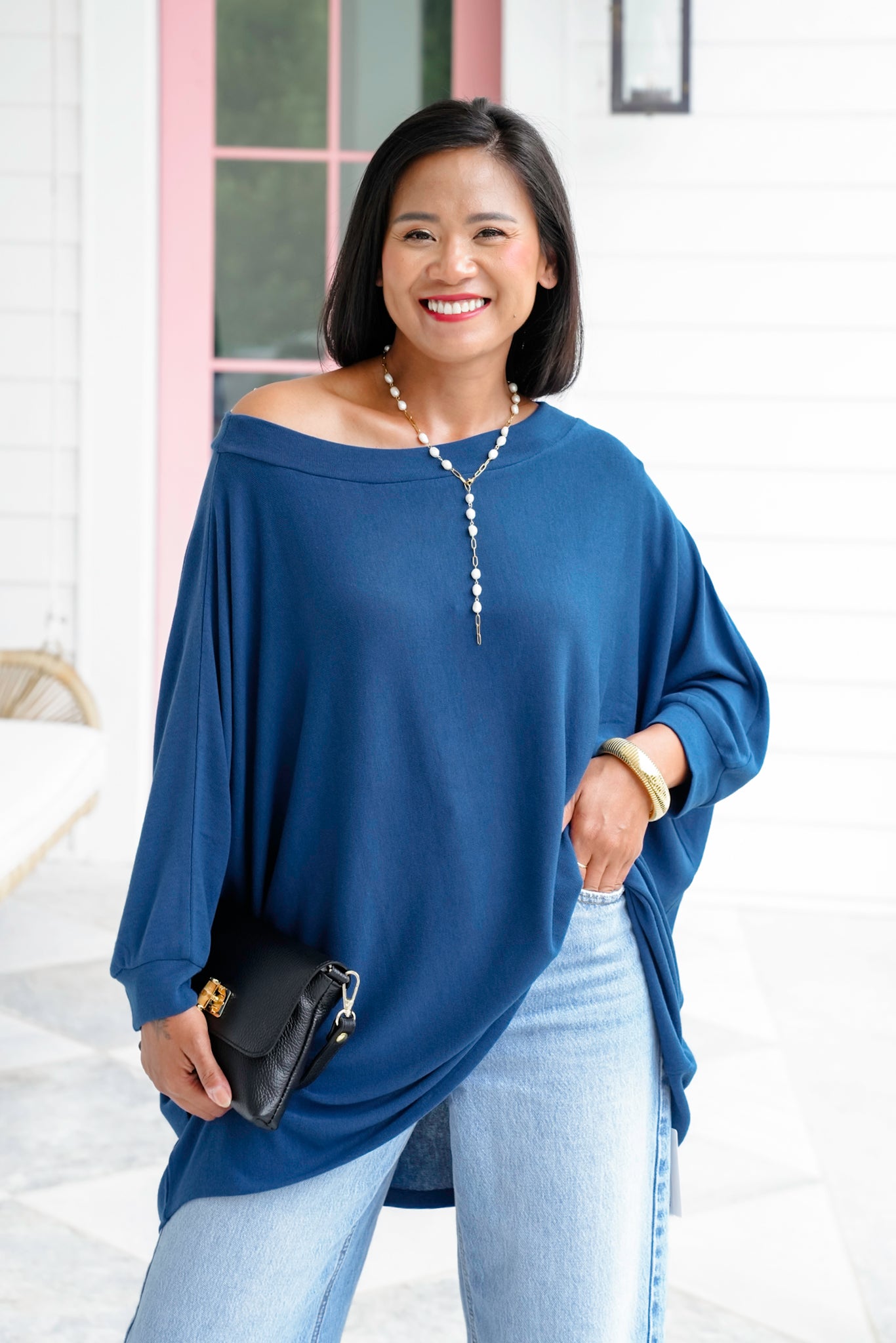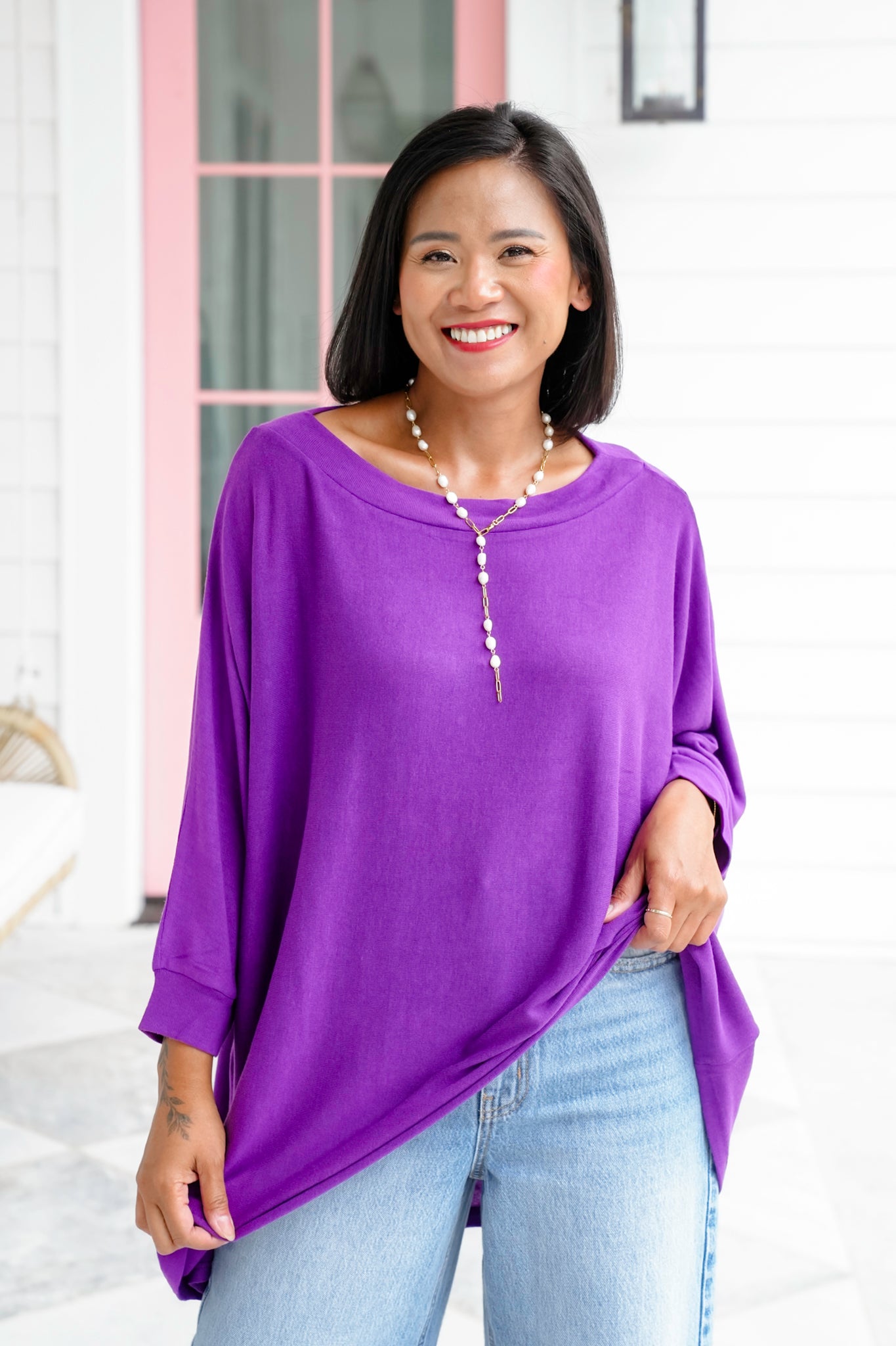 This is the kind of top you’ll reach for again and again—whether you’re lounging, running errands, or heading out for a casual night. The flowy, oversized cut flatters every body type while giving you that laid-back, chic look. Dress it up with layered necklaces and heels, or keep it cozy with leggings and sneakers.