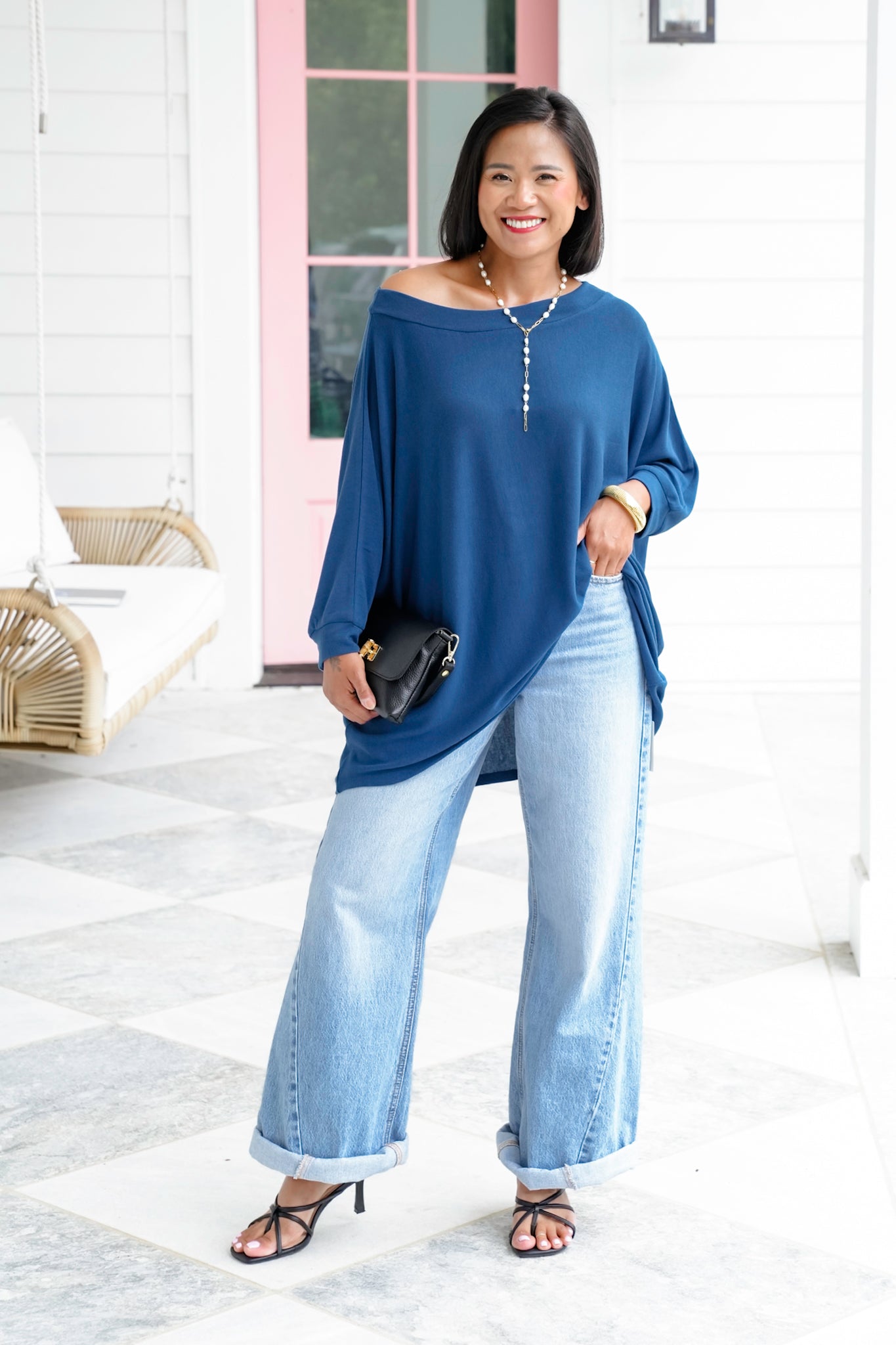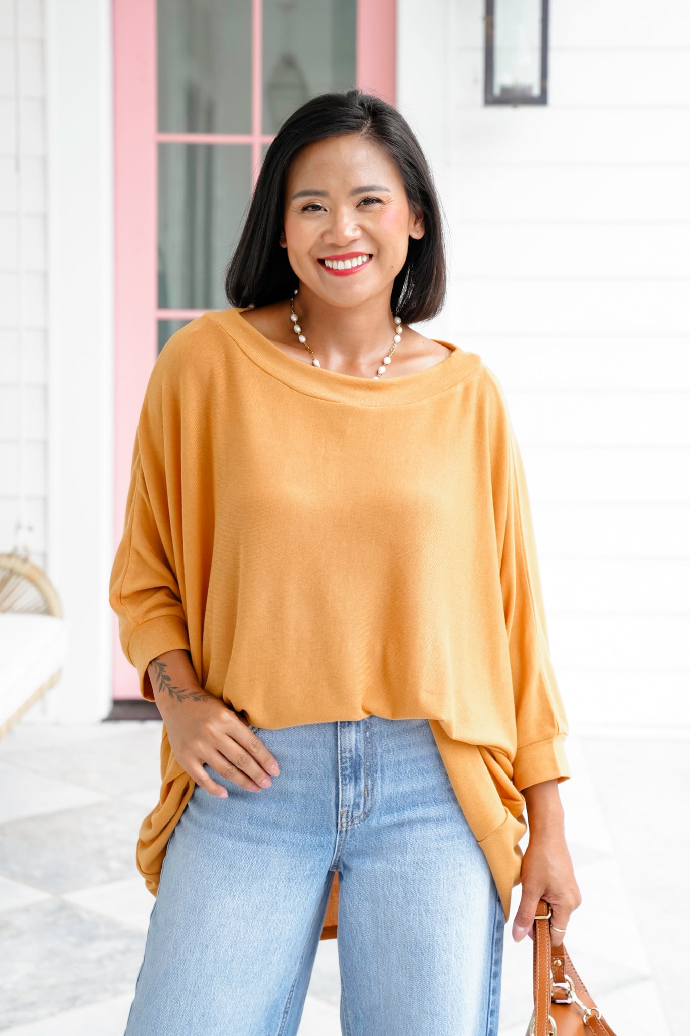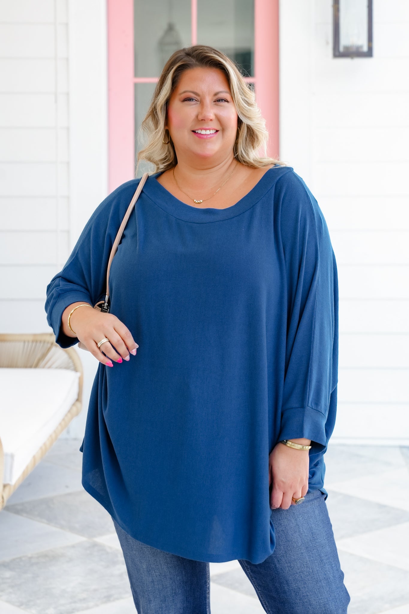 This is the kind of top you’ll reach for again and again—whether you’re lounging, running errands, or heading out for a casual night. The flowy, oversized cut flatters every body type while giving you that laid-back, chic look. Dress it up with layered necklaces and heels, or keep it cozy with leggings and sneakers.