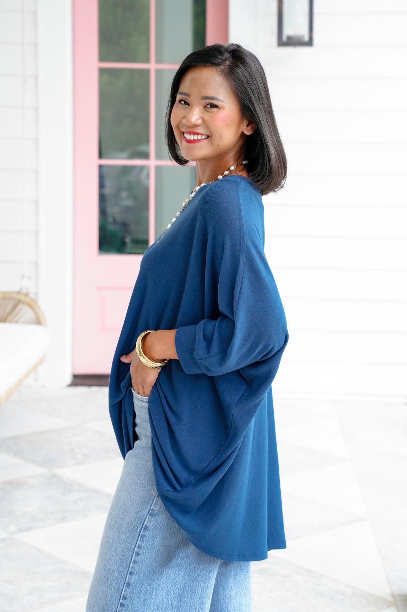 * Oversized dolman sleeves for that effortlessly chic drape