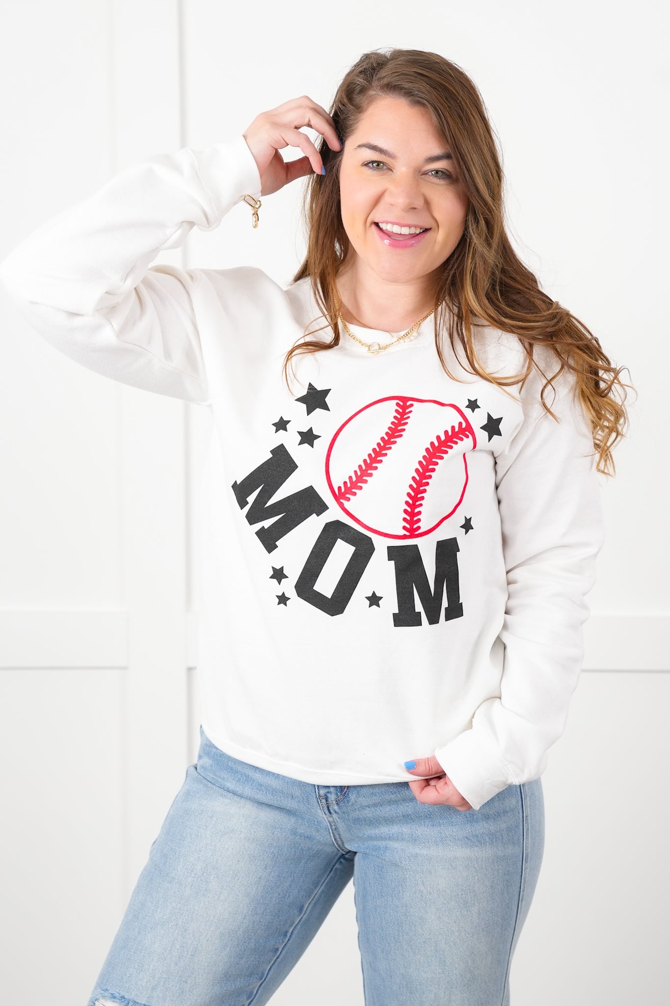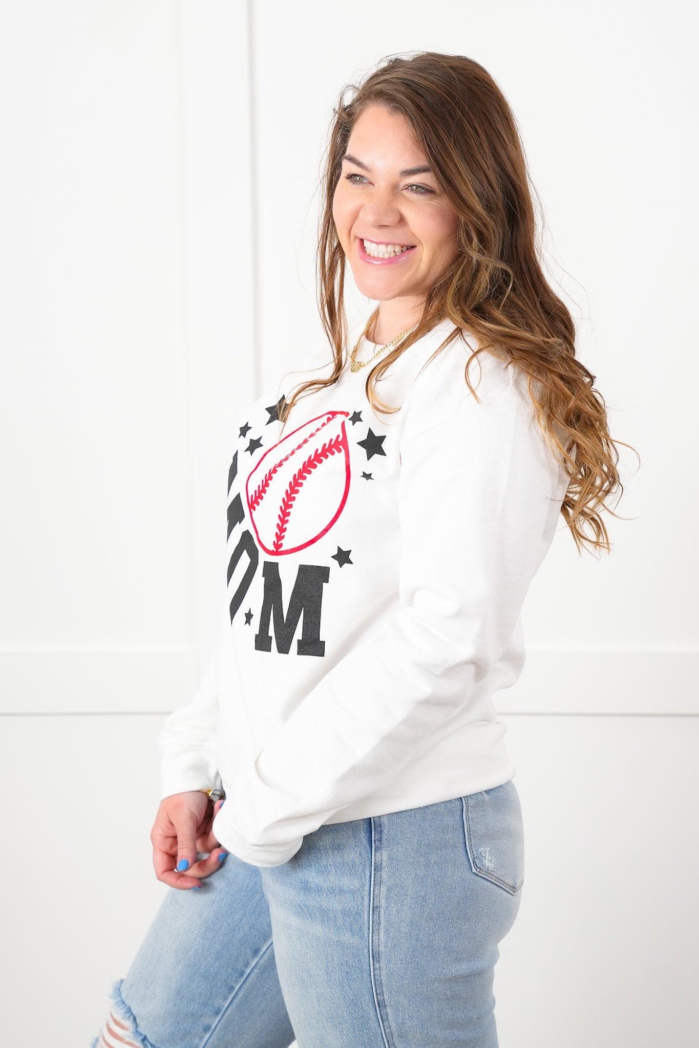 Plus/Reg Long Sleeve Baseball "Mom" Graphic Sweatshirt
