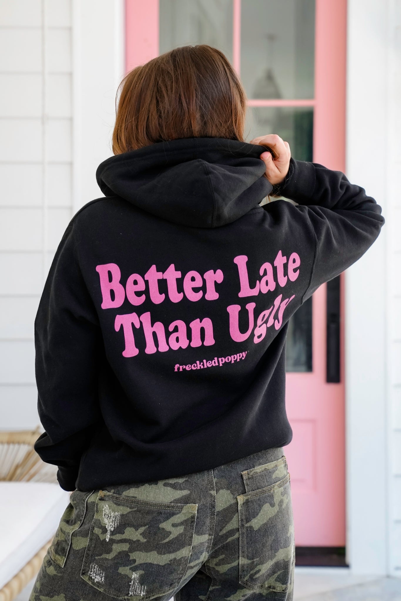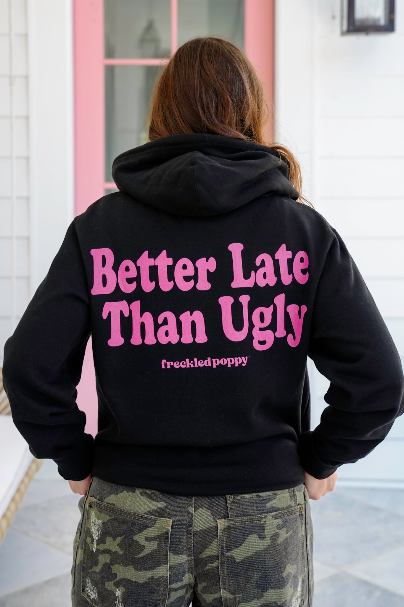 Plus/Reg Long Sleeve "Better Late Than Ugly" Graphic Hoodie