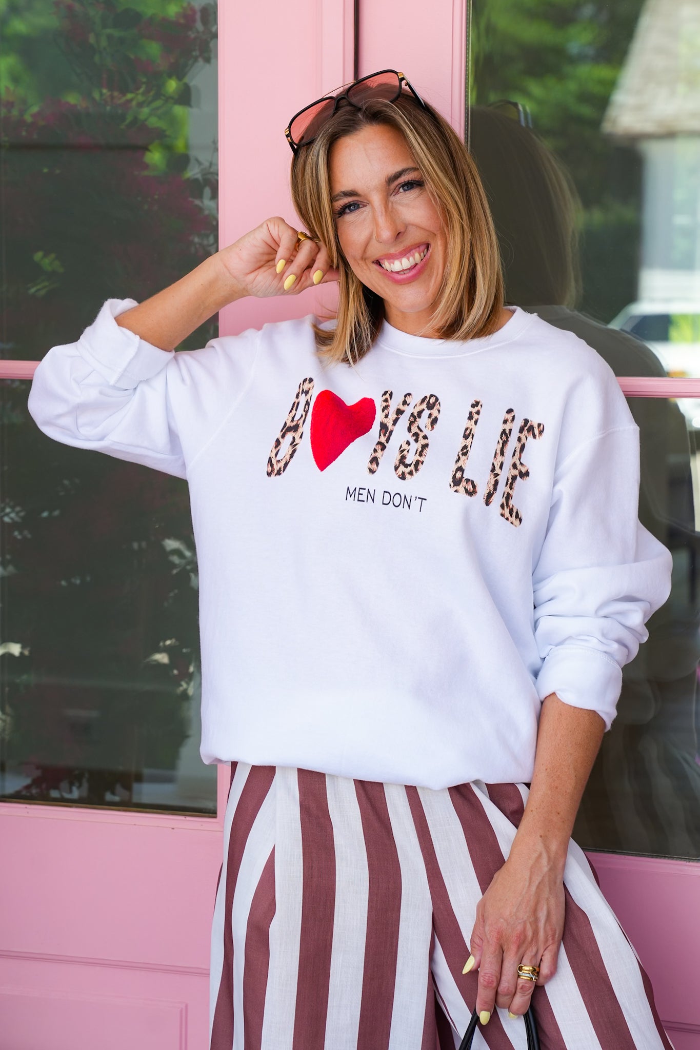 Plus/Reg Long Sleeve "Boys Lie Men Don't" Graphic Sweatshirt
