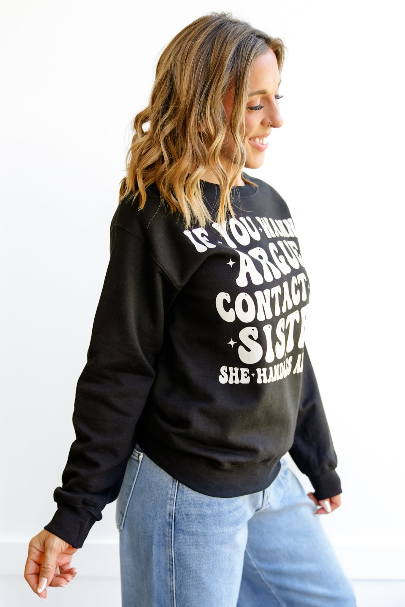Plus/Reg Long Sleeve "Contact My Sister" Graphic Sweatshirt