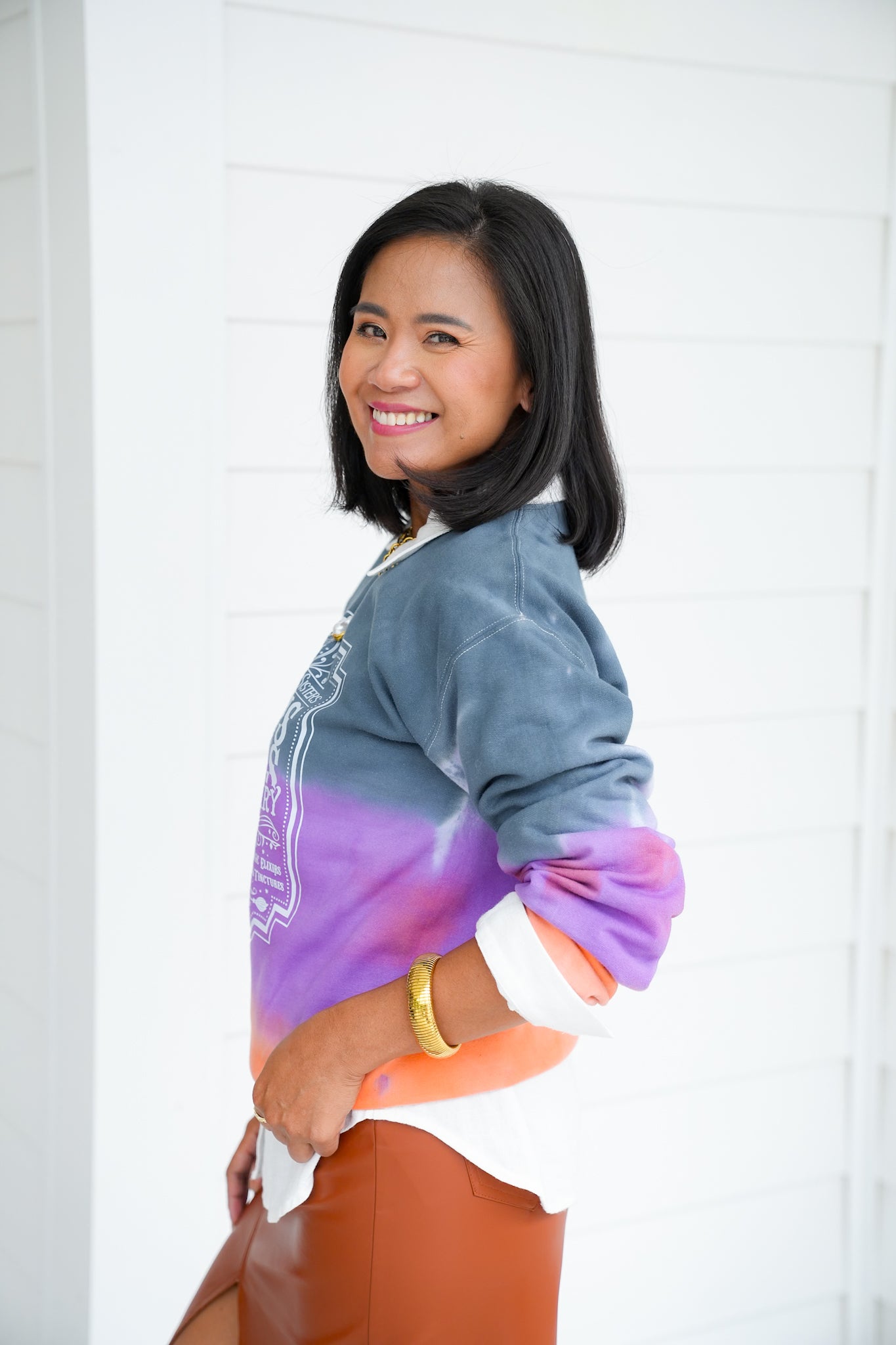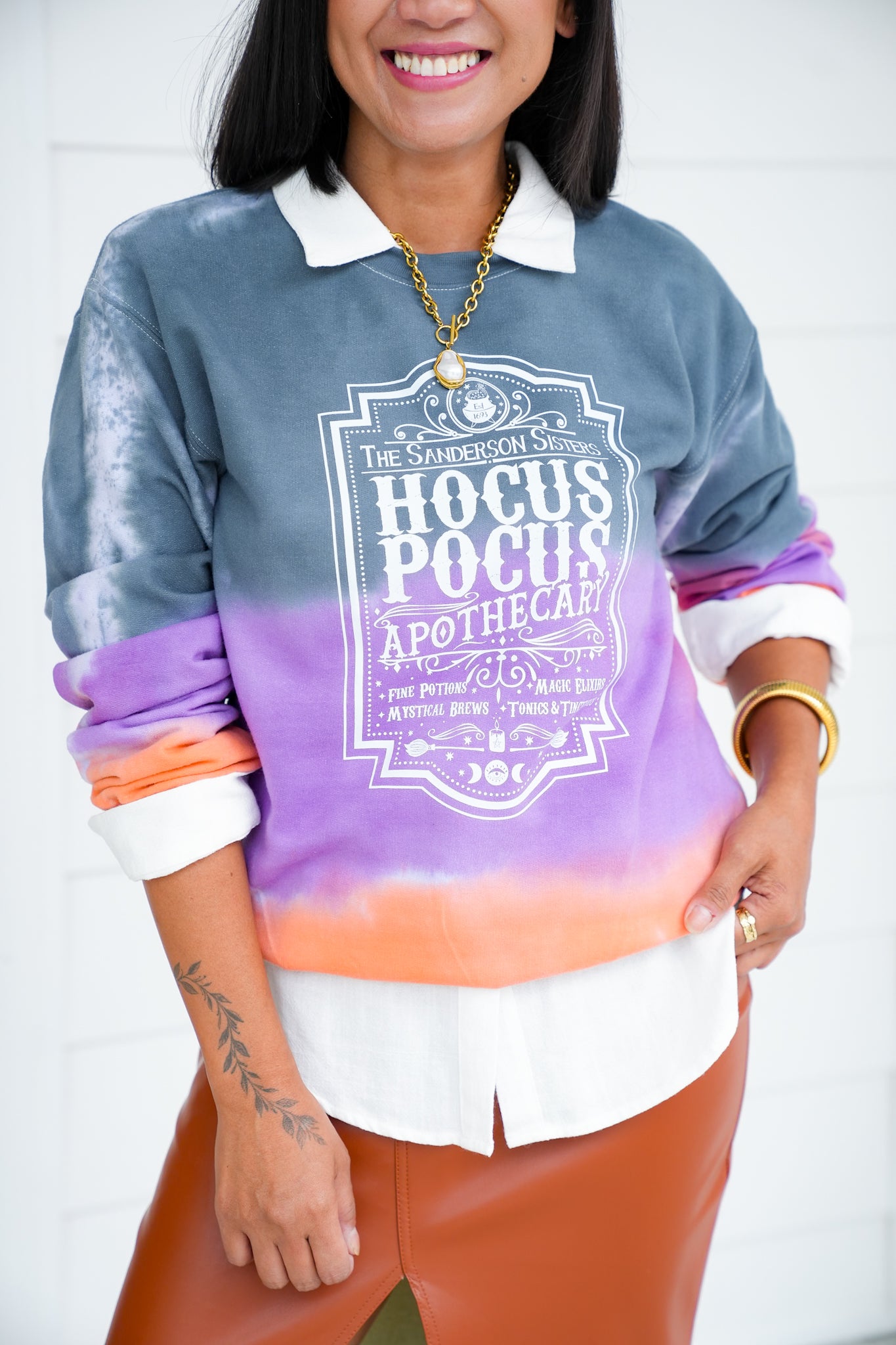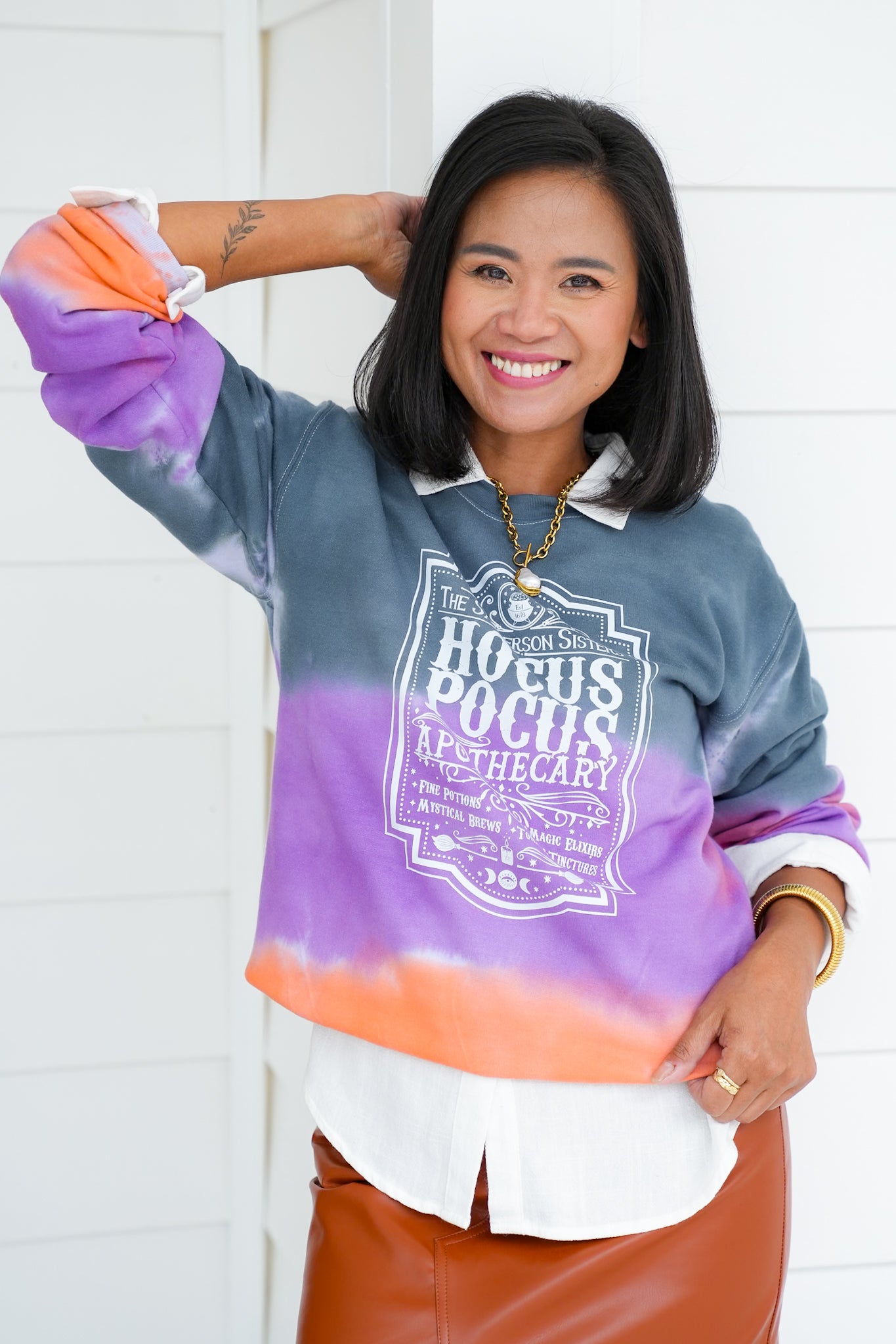 Channel witchy charm with this Sanderson Sisters graphic sweatshirt. The ombre tie-dye colors give a magical sunset feel, while the bold graphic adds that movie-inspired nostalgia. Layer over a collared shirt for a preppy twist or wear solo with leggings for a cozy weekend look.