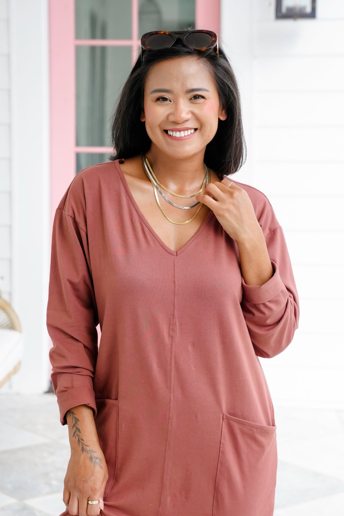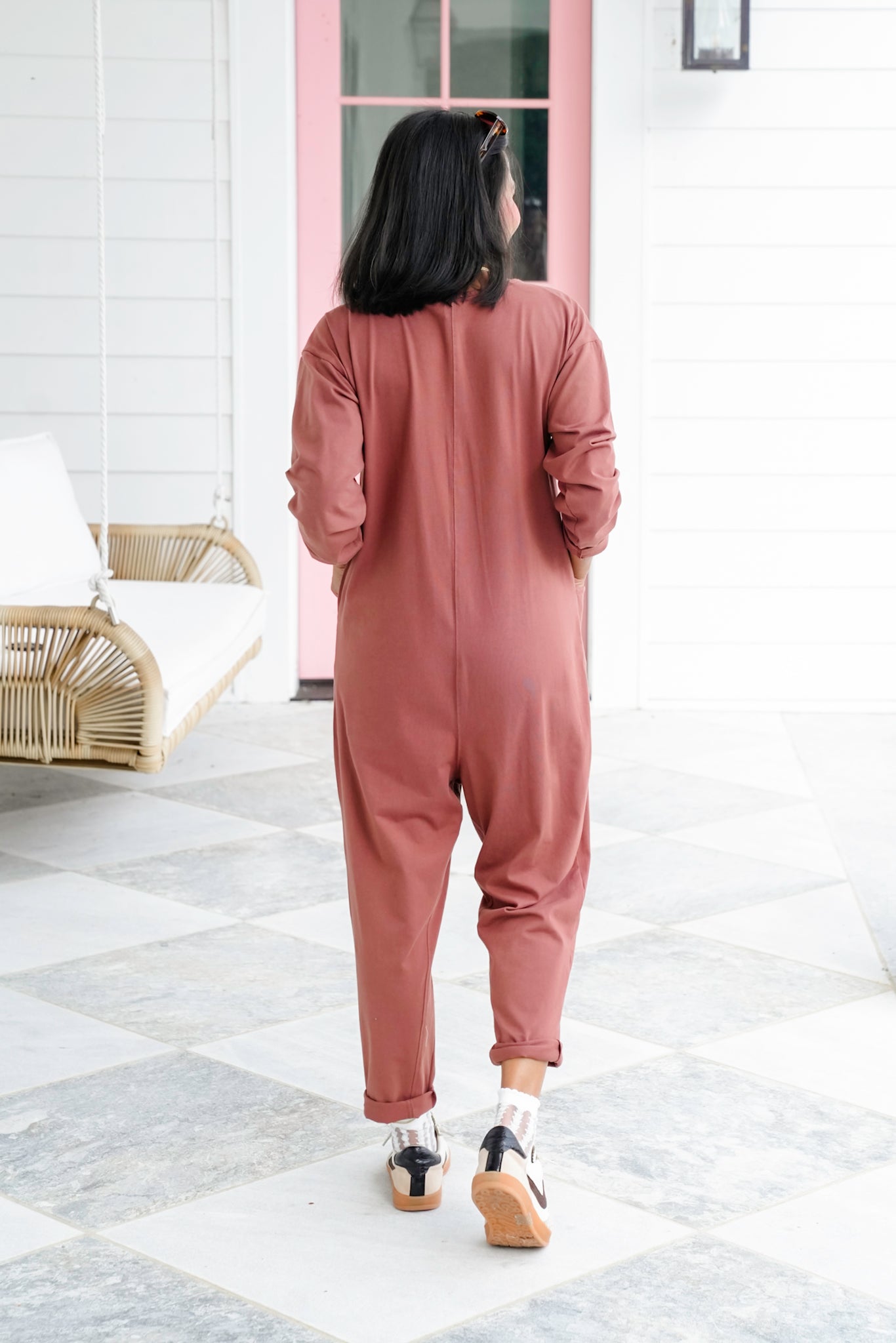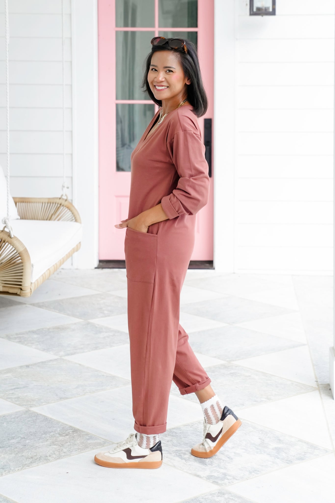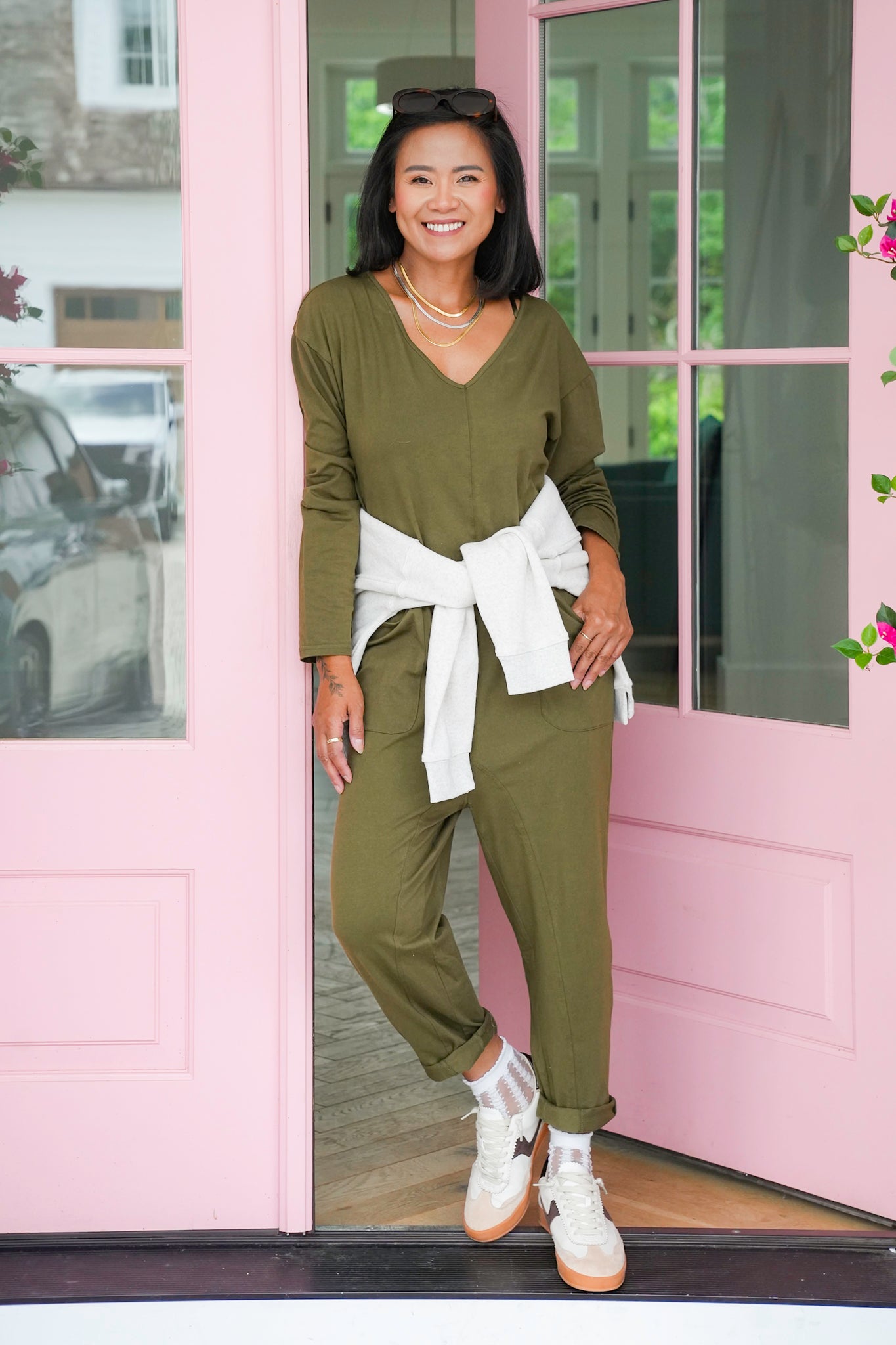 This jumpsuit is about to become your anytime, anywhere fave. Buttery soft with the dreamiest stretch, it moves with you without losing its shape. Deep V neckline keeps things flattering, and functional front patch pockets give it that lived-in, laid-back vibe we all crave. Layer it with a denim jacket, rock it solo with sneakers or sandals, or belt it up for a touch of structure.