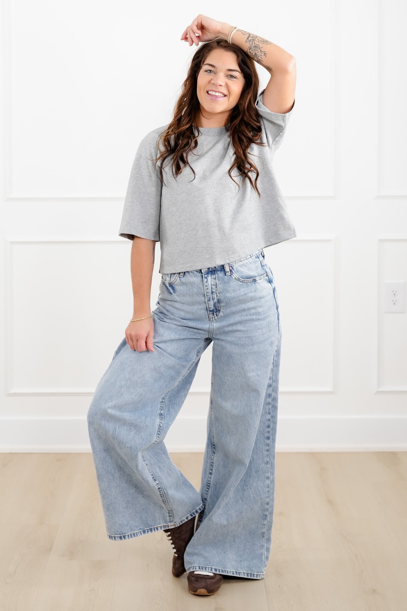 This top is the definition of elevated basics done right. The clean crew neckline and relaxed shape make it easy, but the structured feel keeps it looking polished instead of plain. Style it with denim, trousers, or layered under jackets when you want a simple piece that still feels chic and styled.