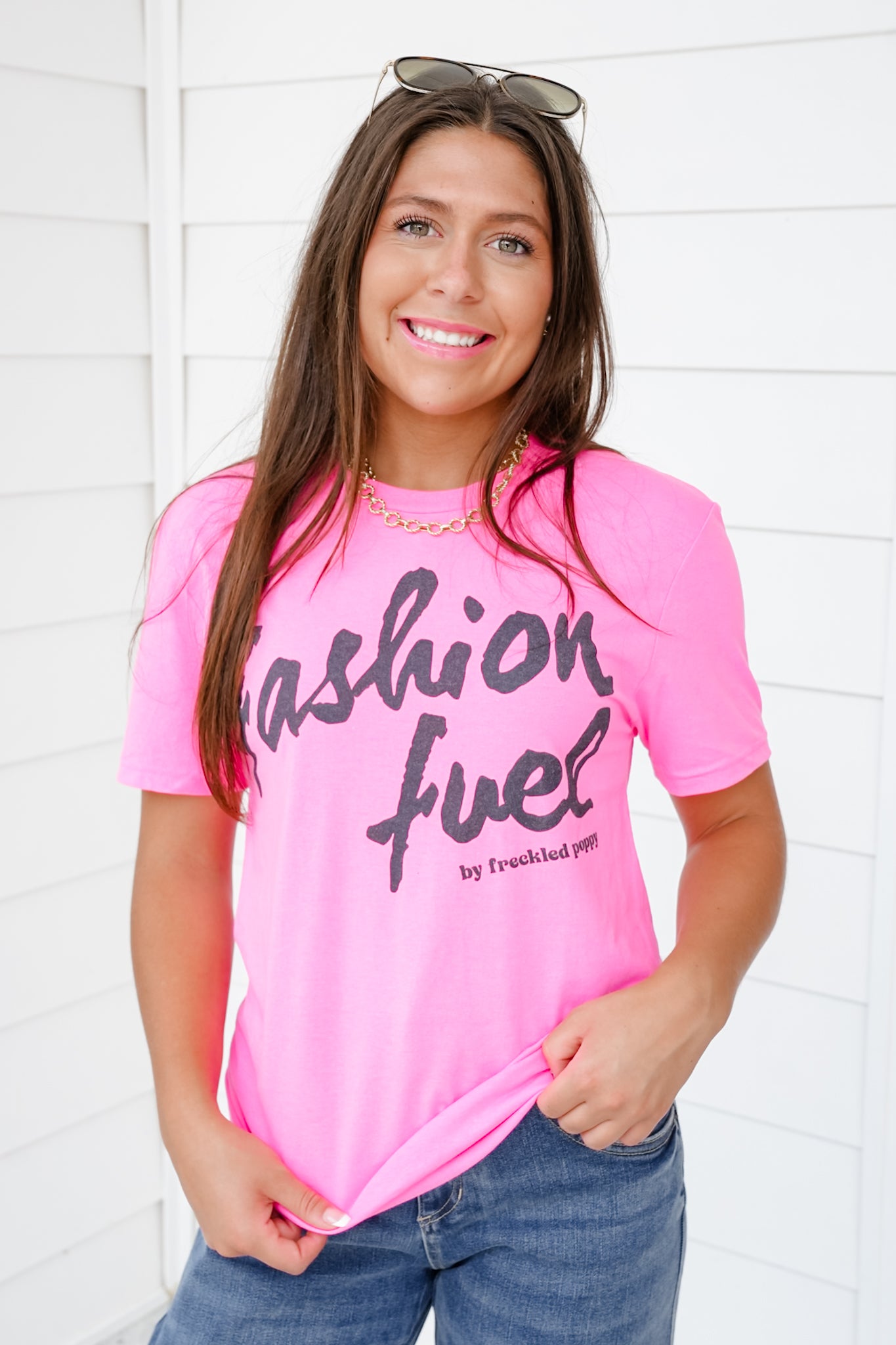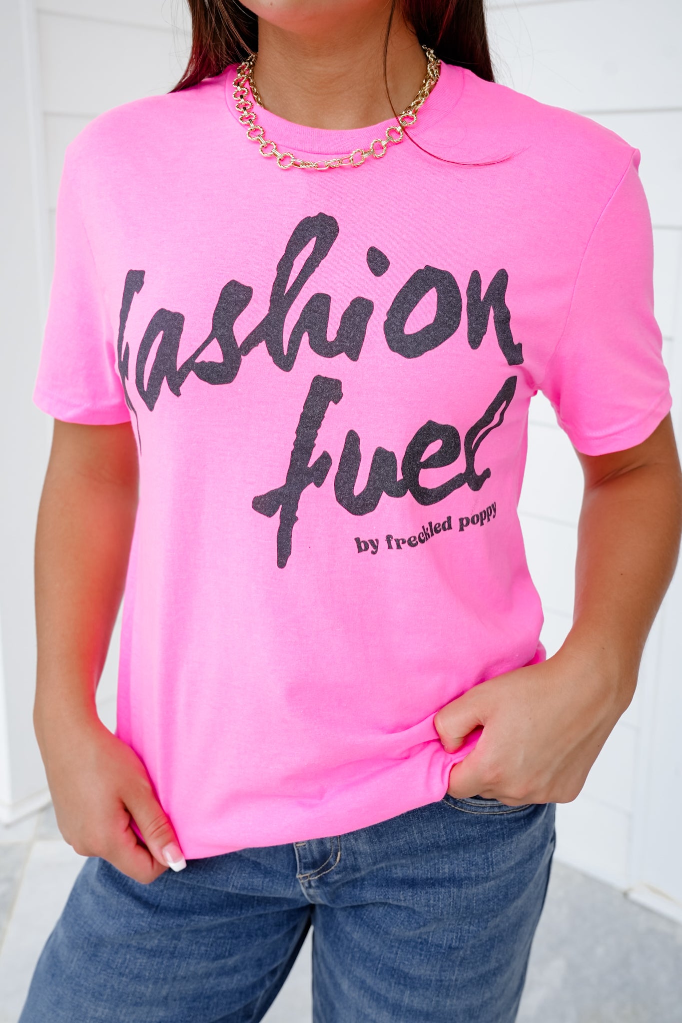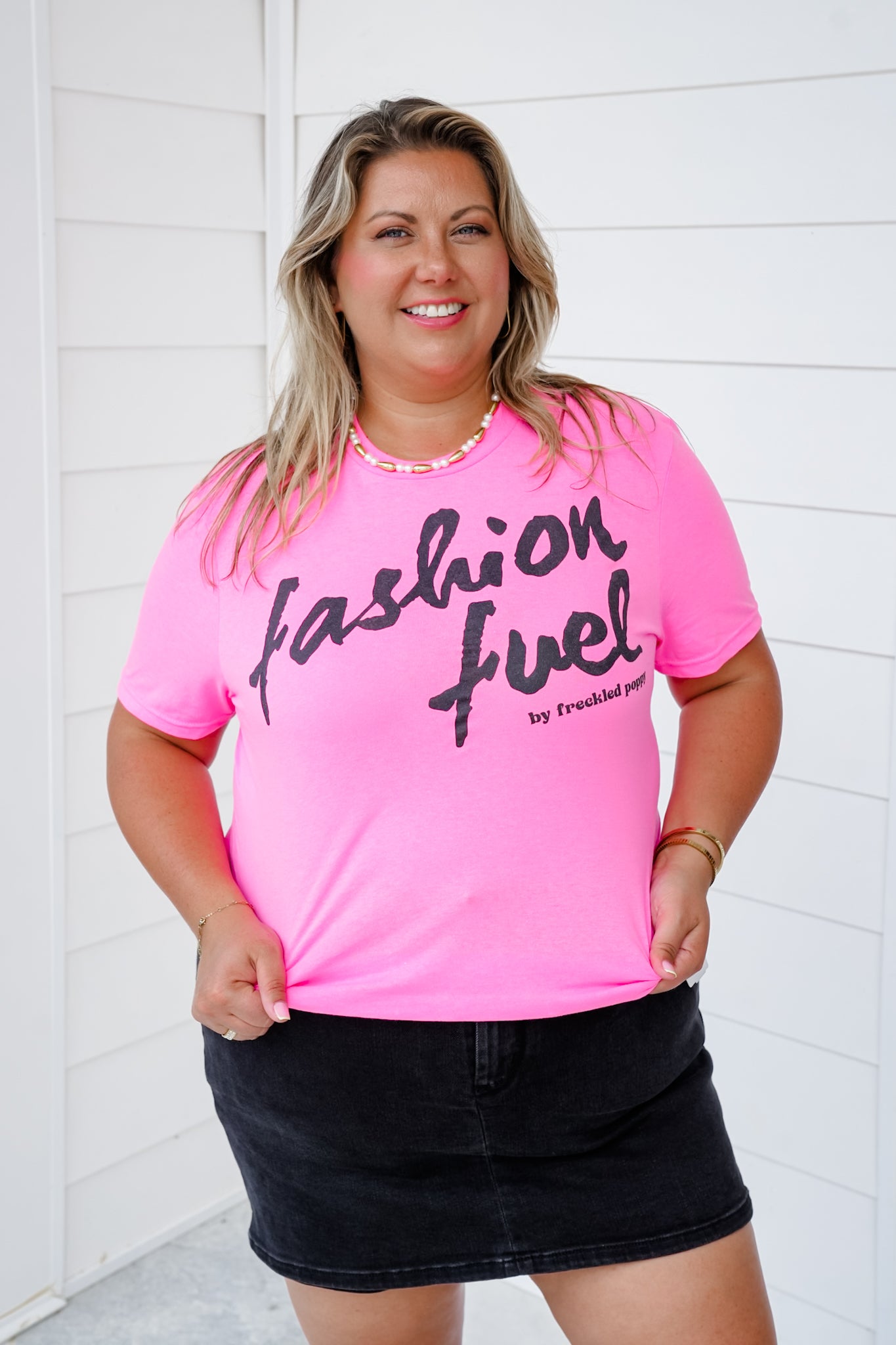 Plus/Reg Pink Short Sleeve "Fashion Fuel By Freckled Poppy" Graphic Tee