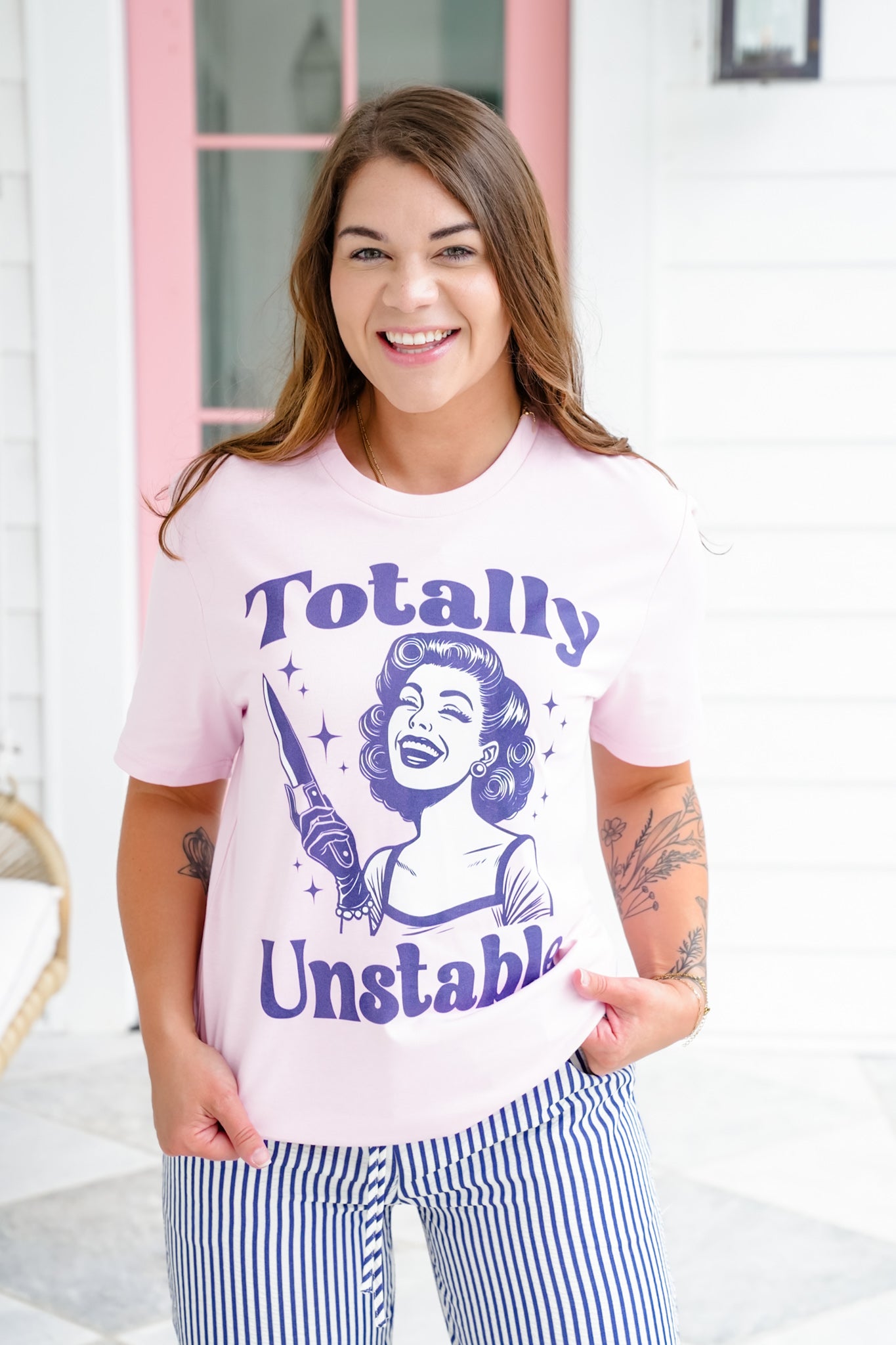 Plus/Reg Pink Short Sleeve "Totally Unstable" Graphic Tee