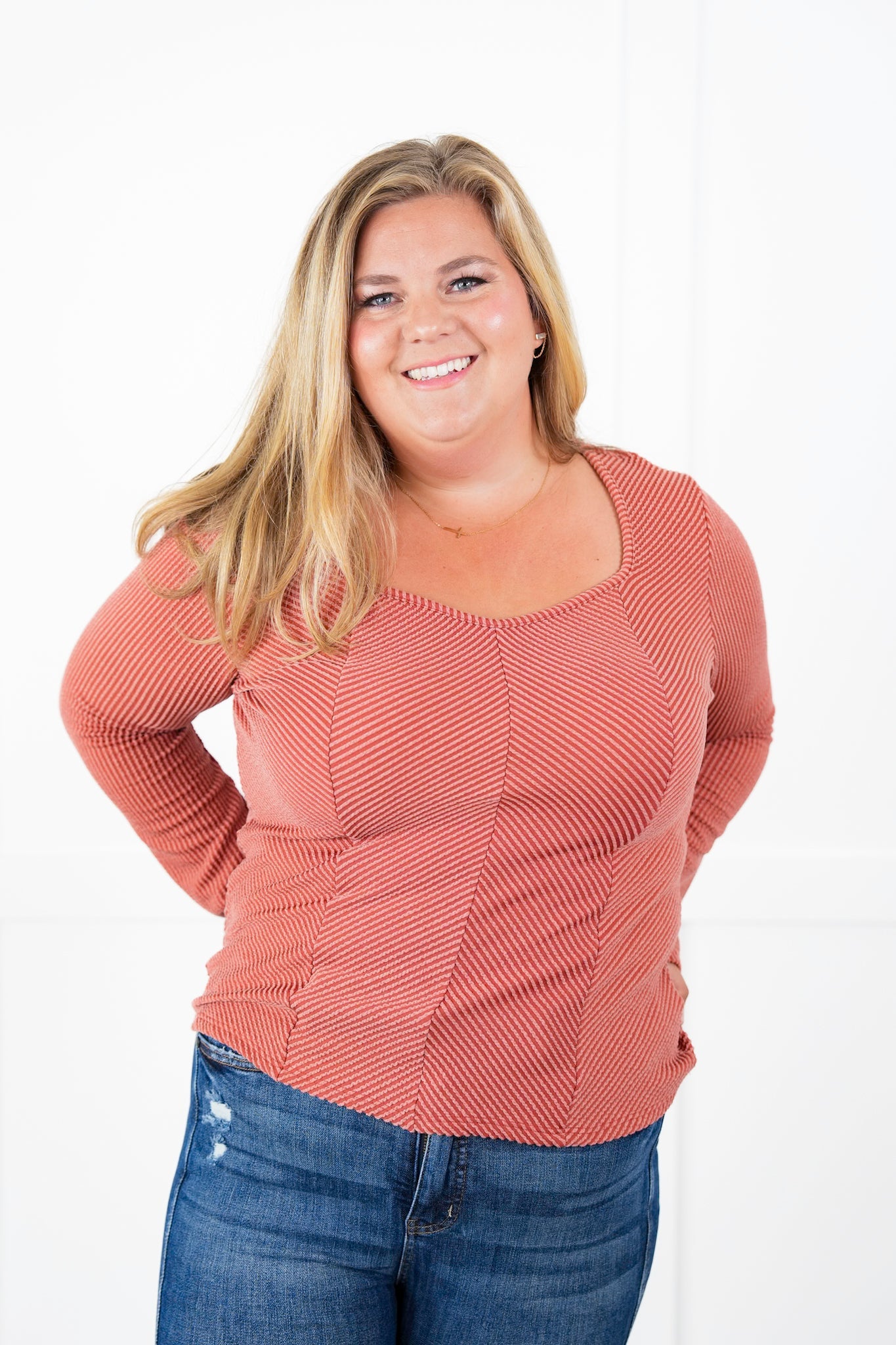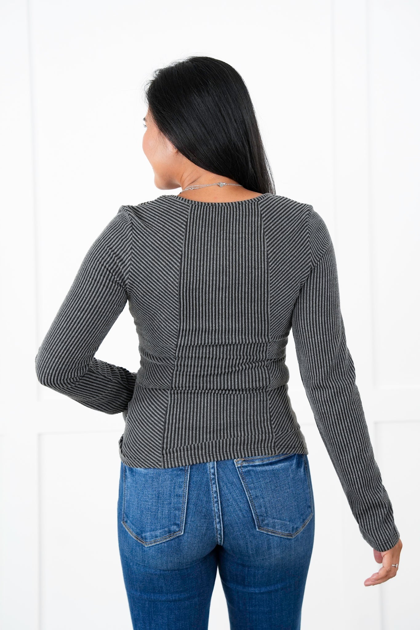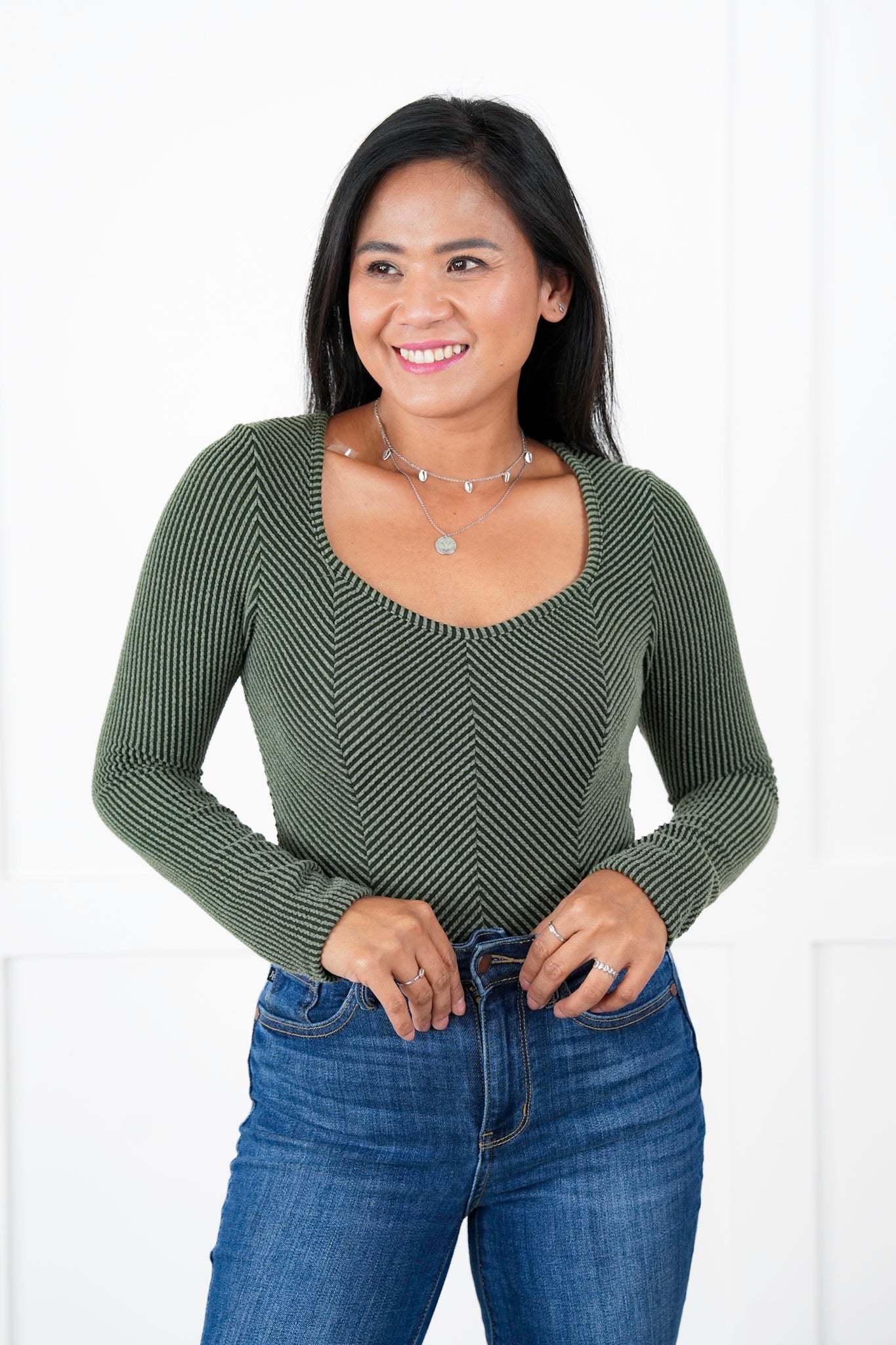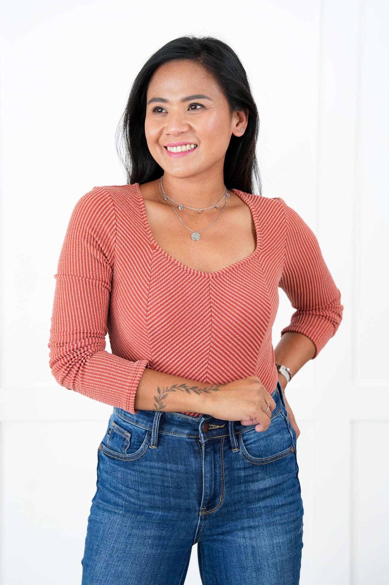 This top is a must-have for your wardrobe! With its flattering v-neckline and comfy urban ribbed fabric, it is perfect for layering or wearing on its own. The snug fit hugs your curves in all the right places, and the chevron ribbed panels make it both stylish and cozy. Available in multiple colors, it's easy to mix and match with your favorite jeans, skirts, or even lounge pants. Whether you're dressing up for a night out or keeping it casual, this top is a versatile piece that will keep you looking chic and feeling great all day long!