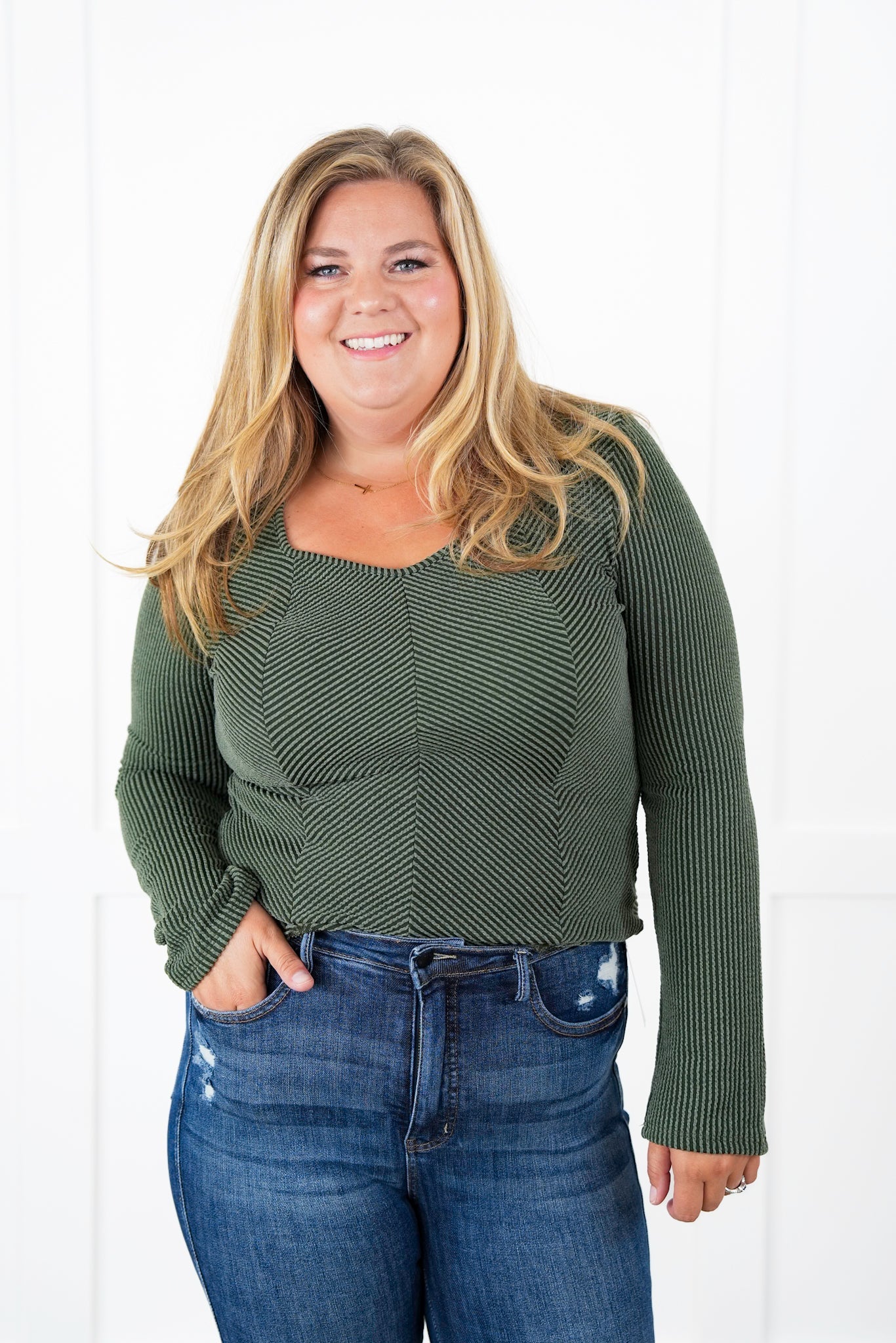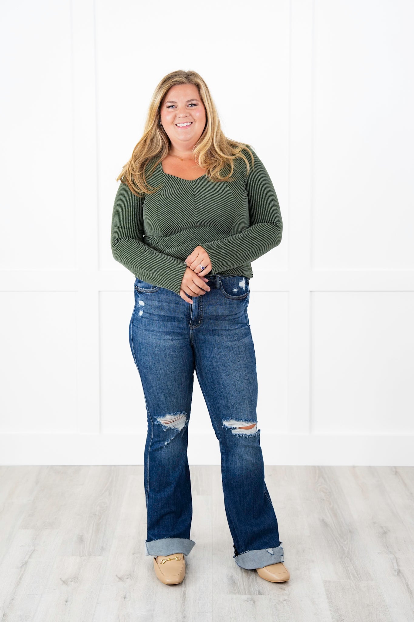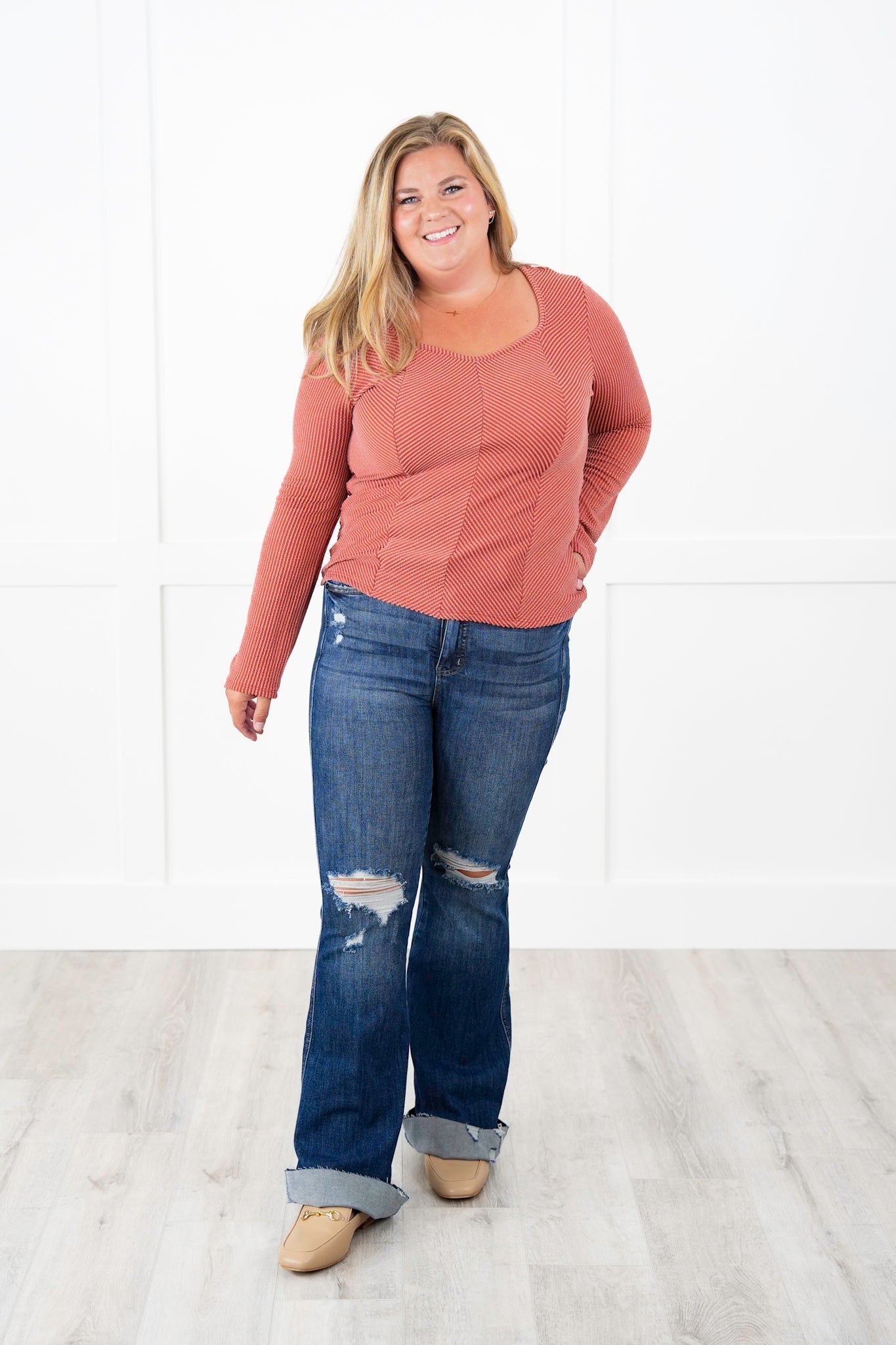 Plus/Reg Ribbed Long Sleeve V Neck Top (Multiple Colors)