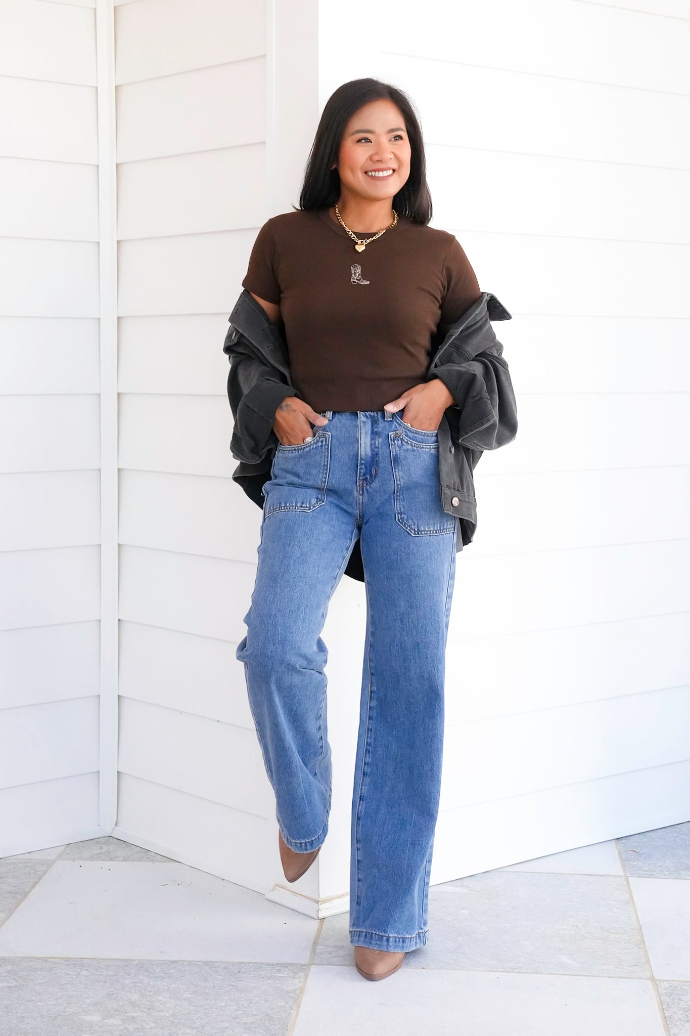 This tee is the ultimate grab-and-go piece with a little attitude. The baby tee silhouette gives it a modern, on-trend vibe, while the embroidered cowboy boot adds a nod to western charm. Wear it with denim shorts and boots to a concert or tuck it into wide-leg jeans for everyday style.