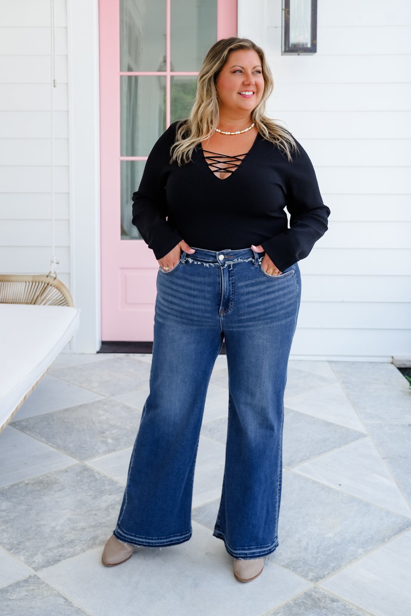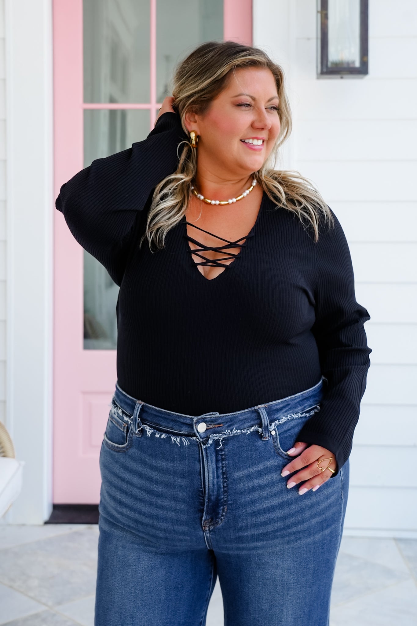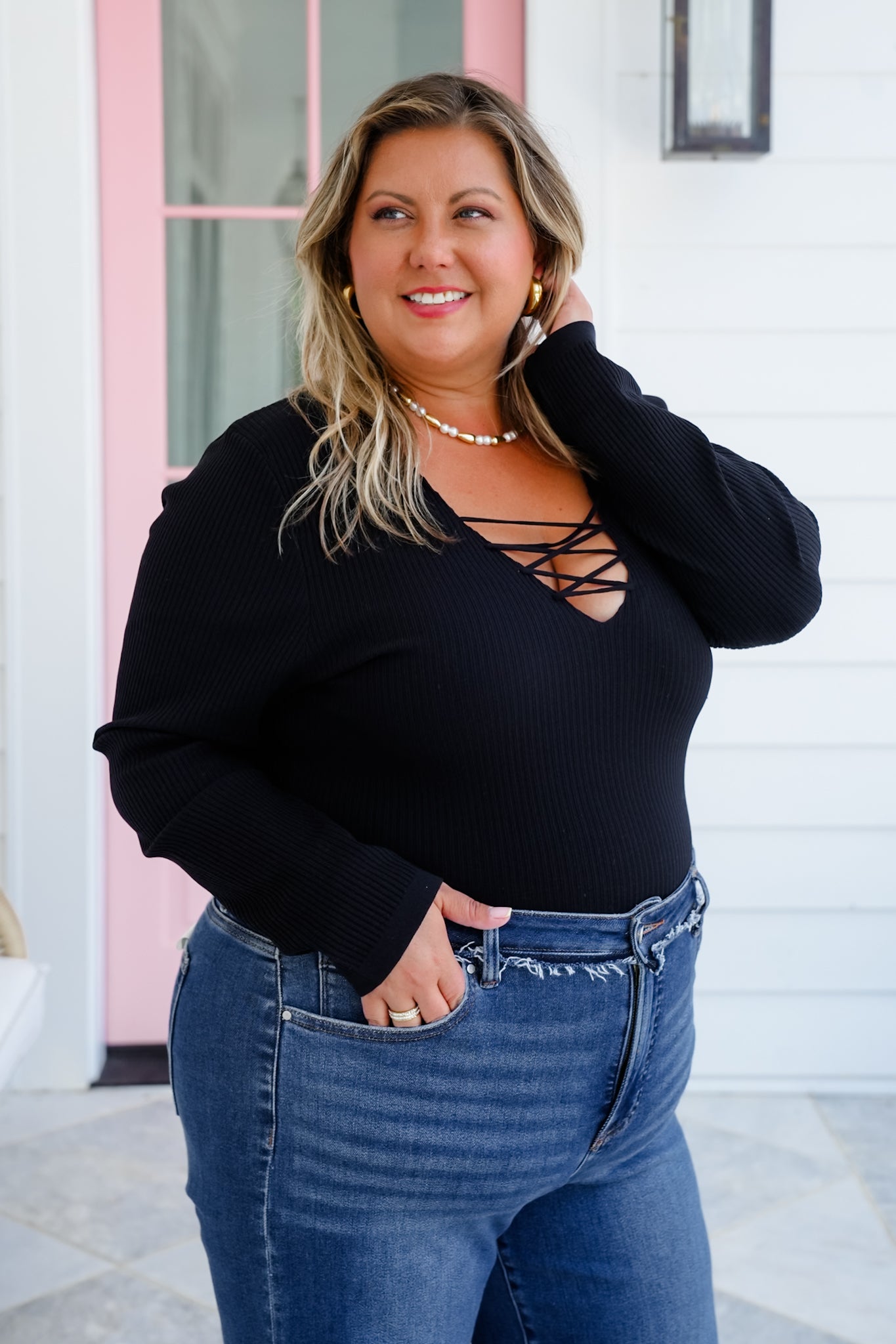 Plus/Reg Ribbed Sweater Lace Up Bodysuit