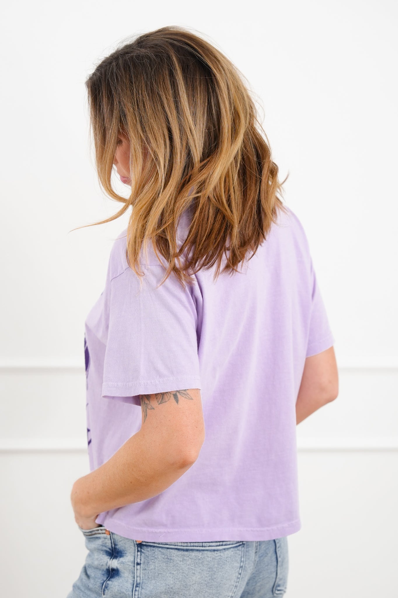 This tee is all attitude in the cutest way. The retro glam graphic and “Better Late Than Ugly” saying bring the sass, while the soft lavender base makes it pop. The relaxed, boxy fit gives it that easy, laid-back feel that looks great with a front tuck into denim or worn loose.