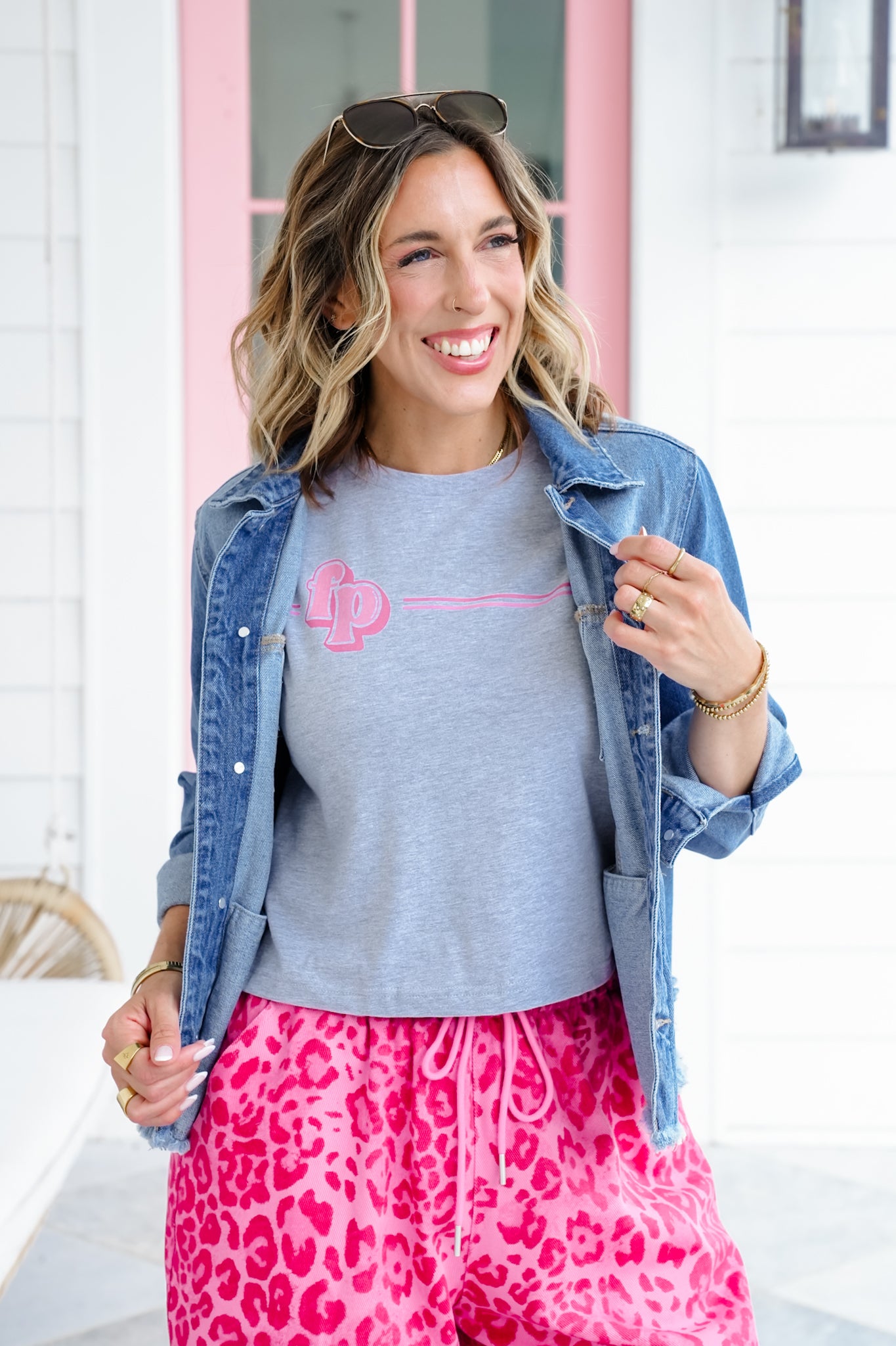 Show off your FP love in the cutest way possible with this exclusive graphic tee! It has an effortlessly cool vibe, with a soft heather gray base and a bright pink "FP" logo across the chest, adding a fun pop of color. The boxy cut adds just the right amount of laid-back charm, making it a go-to for lounging, running errands, or pairing with your boldest bottoms.