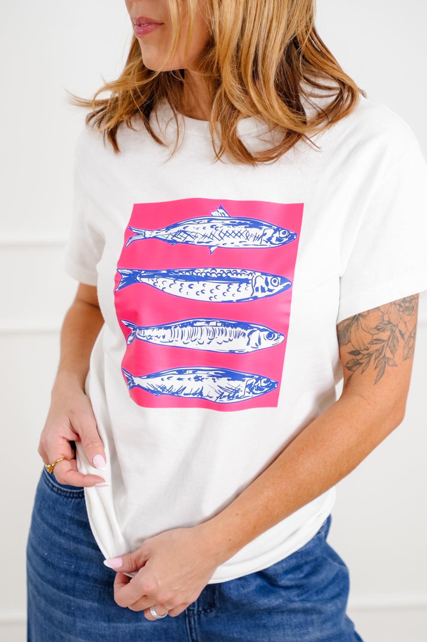 Plus/Reg Short Sleeve Sardines Graphic Top