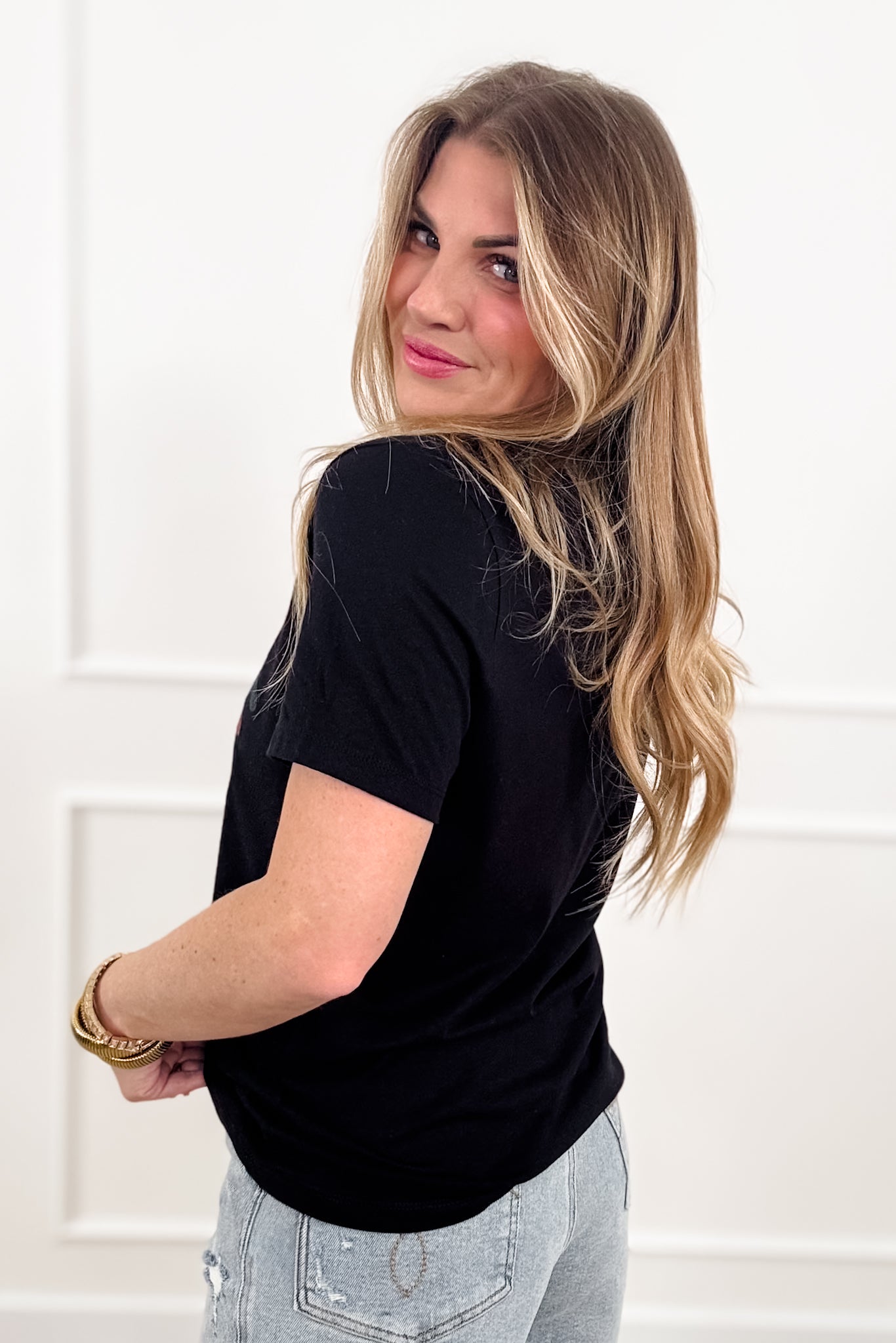 A little reminder we all need sometimes… better days are on the way. Black graphic tee with colorful, playful lettering that instantly lifts the mood. The relaxed fit gives it that easy, laid-back feel, and adds a little extra positivity to your day. So cute with denim, cutoffs, or leggings when you want something casual with a good message.