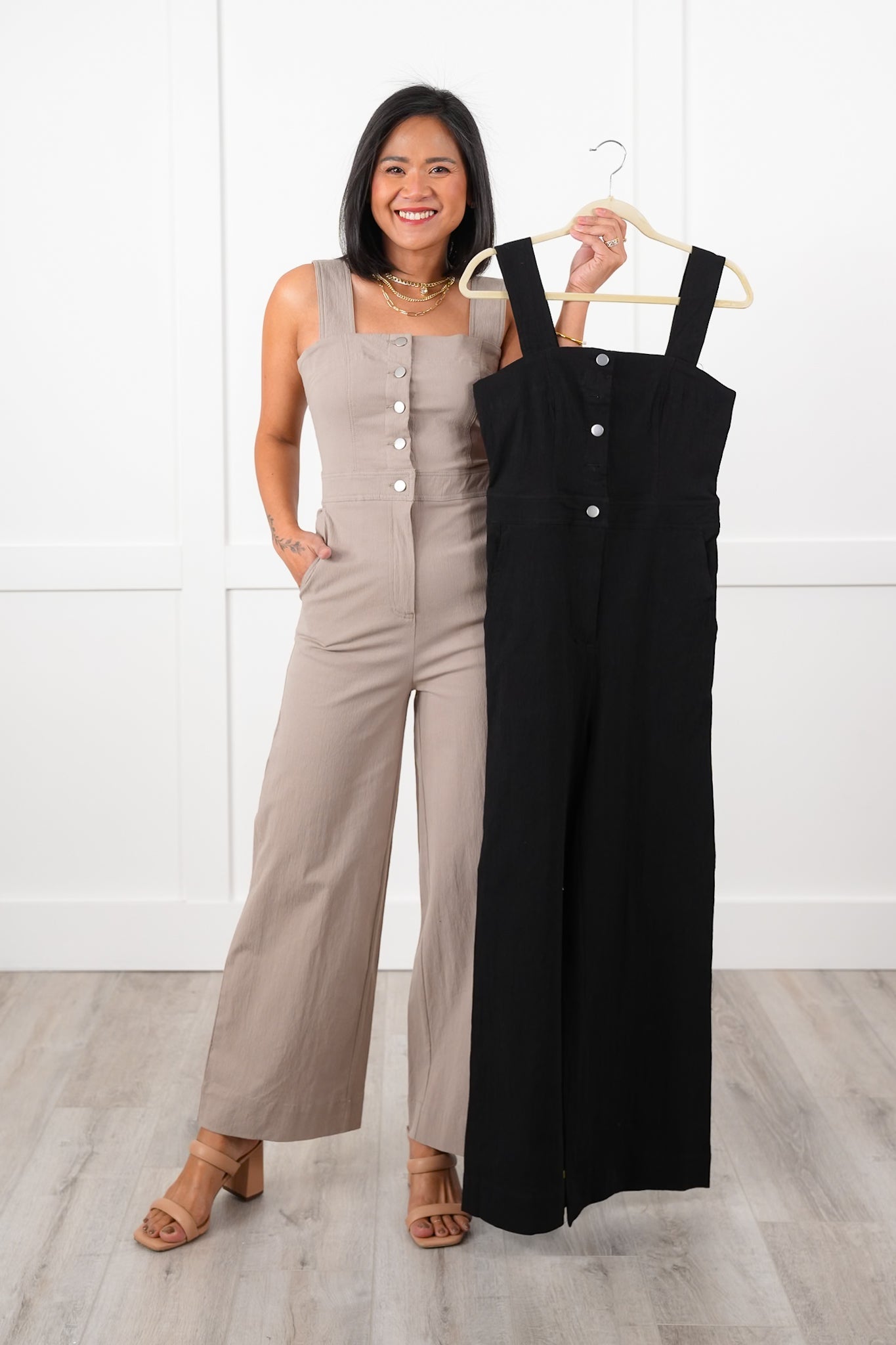This jumpsuit is all about style and comfort. Whether you're dressing up for a day out or dressing down for an easygoing weekend, this piece has your back. The functional buttons and side pockets add a stylish and practical touch to this super chic look. Pair it with wedges for a daytime outing or add a denim jacket to transition into the evening!