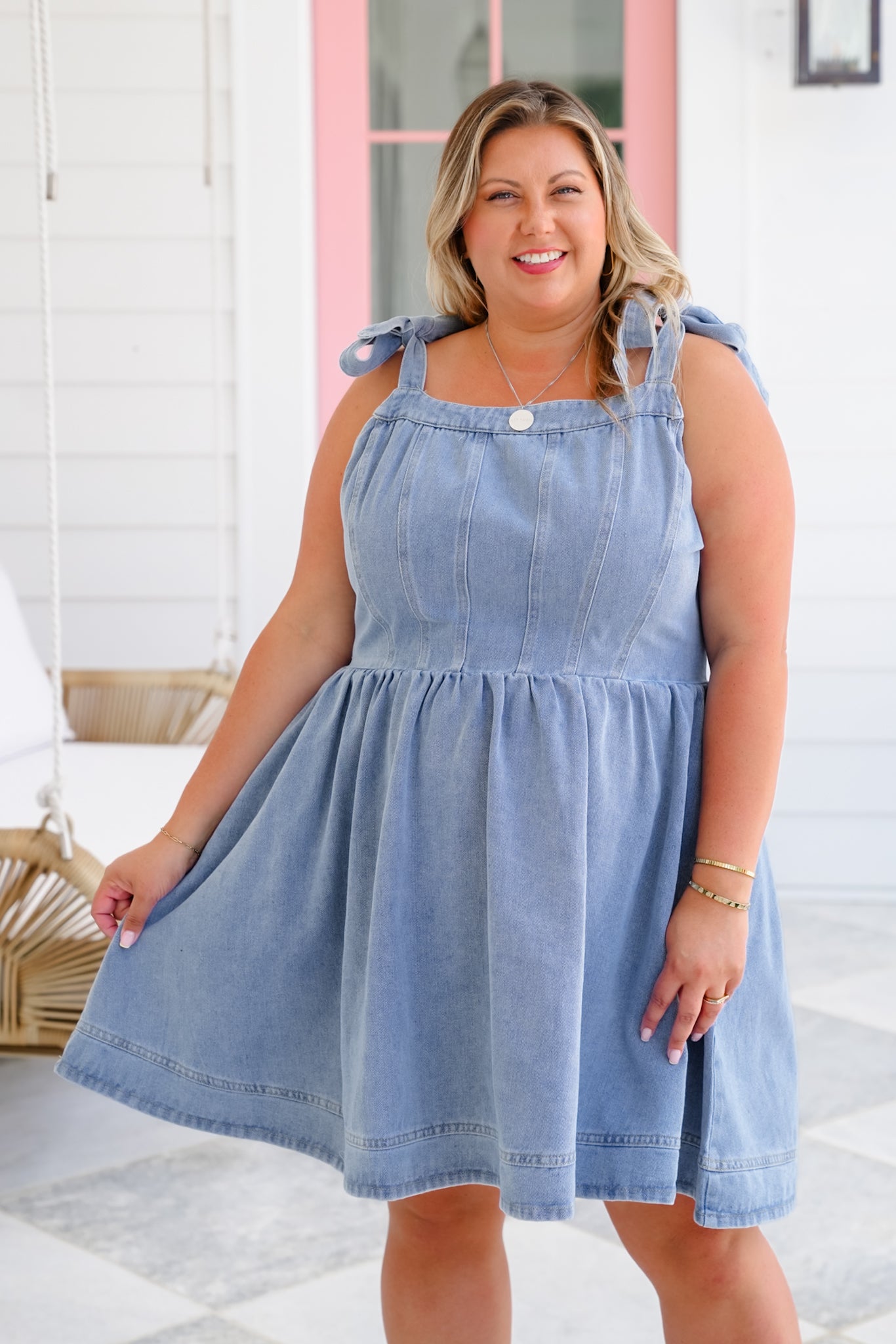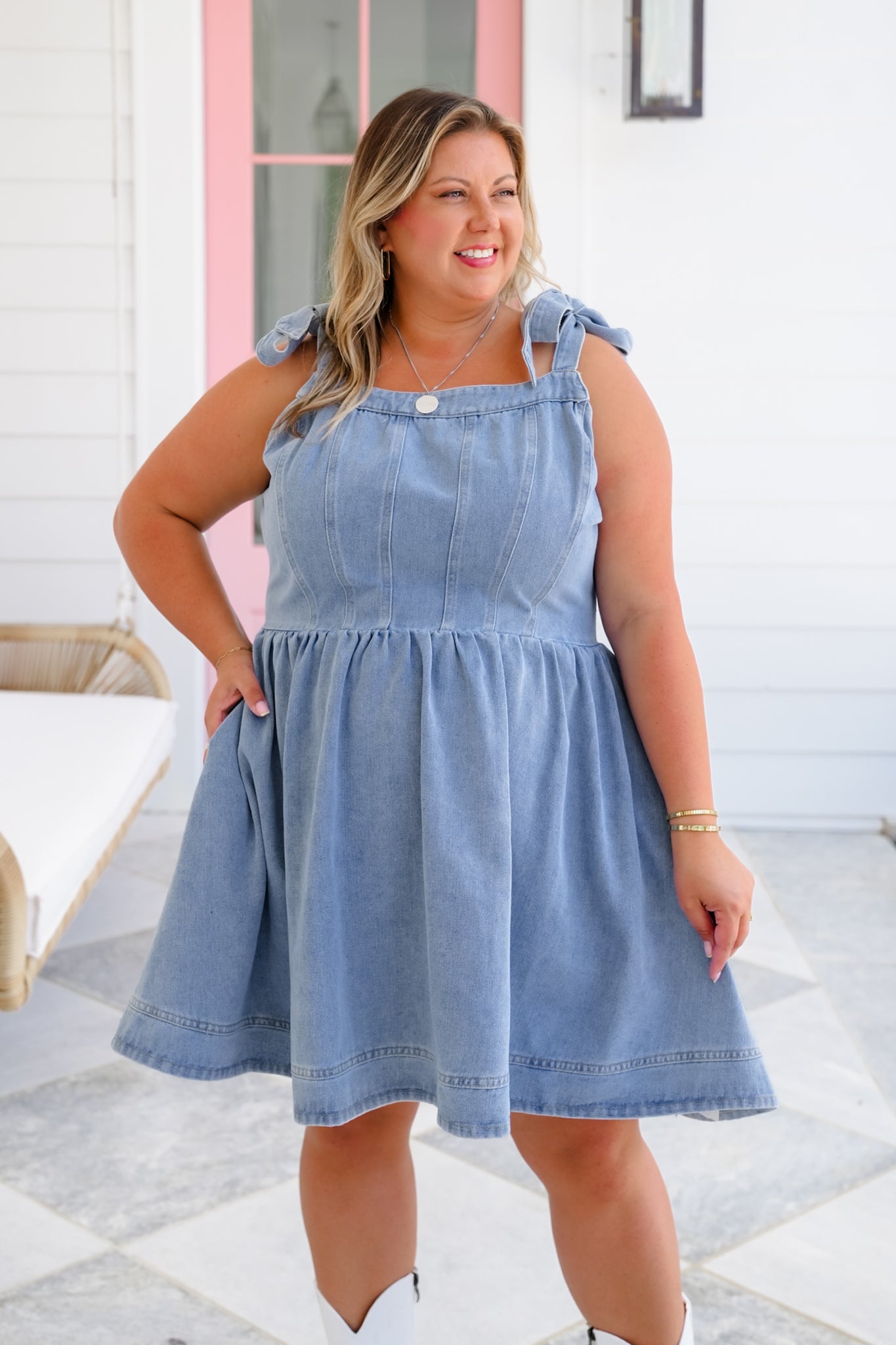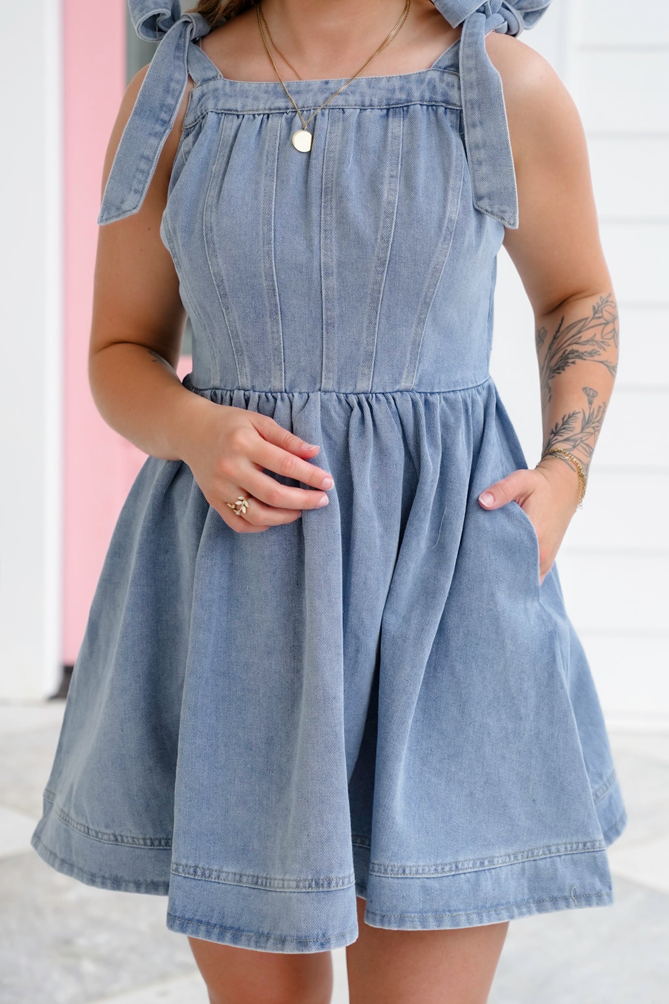 Feminine and playful, this tie-shoulder mini is ready for sunshine! The smocked back and adjustable ties create a flattering shape, while the twirly skirt with hidden side pockets brings the charm. Pair with sandals or wedges and bold jewelry for a summer-ready look.