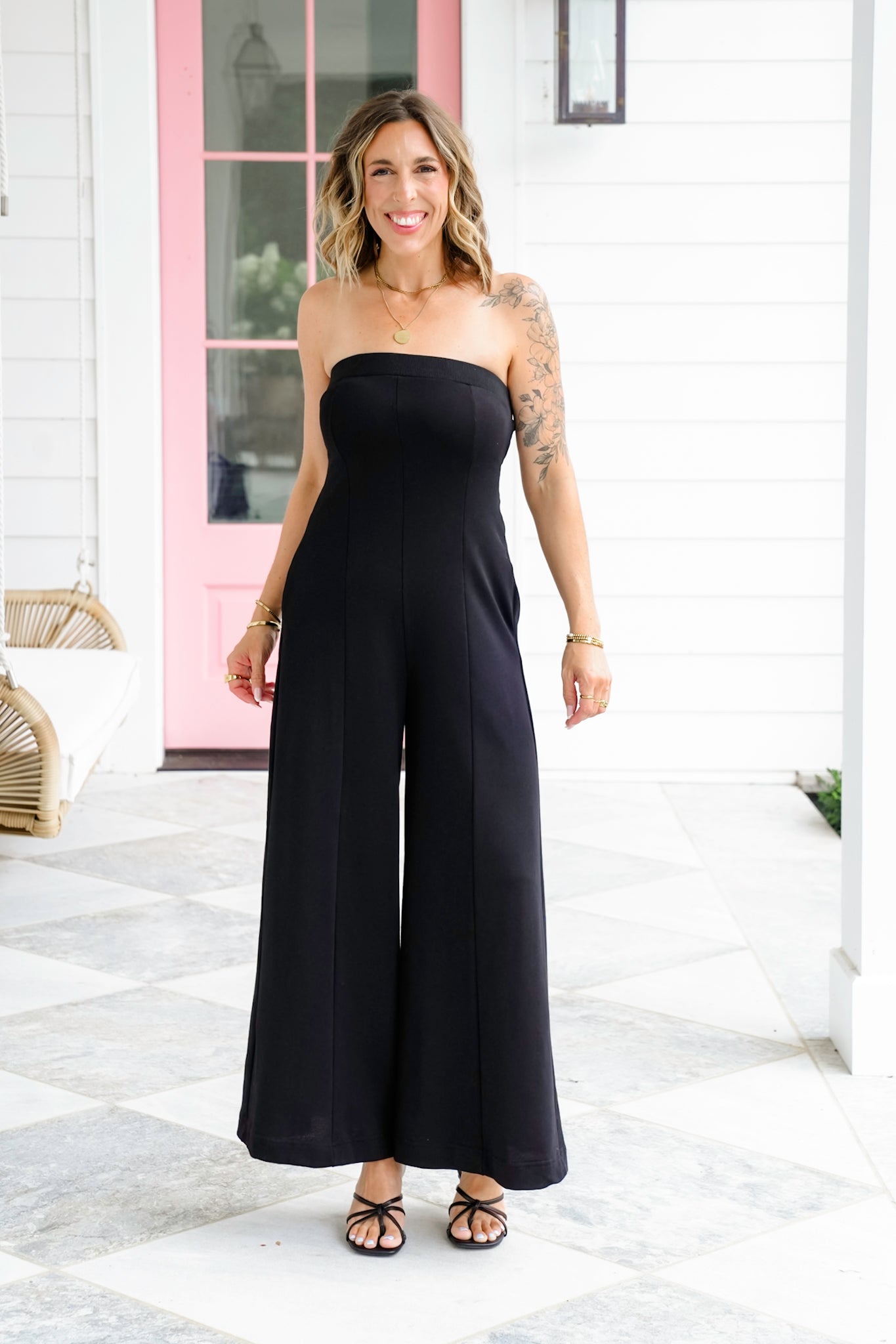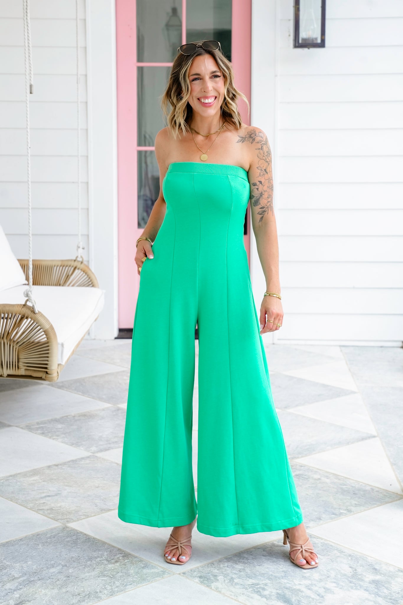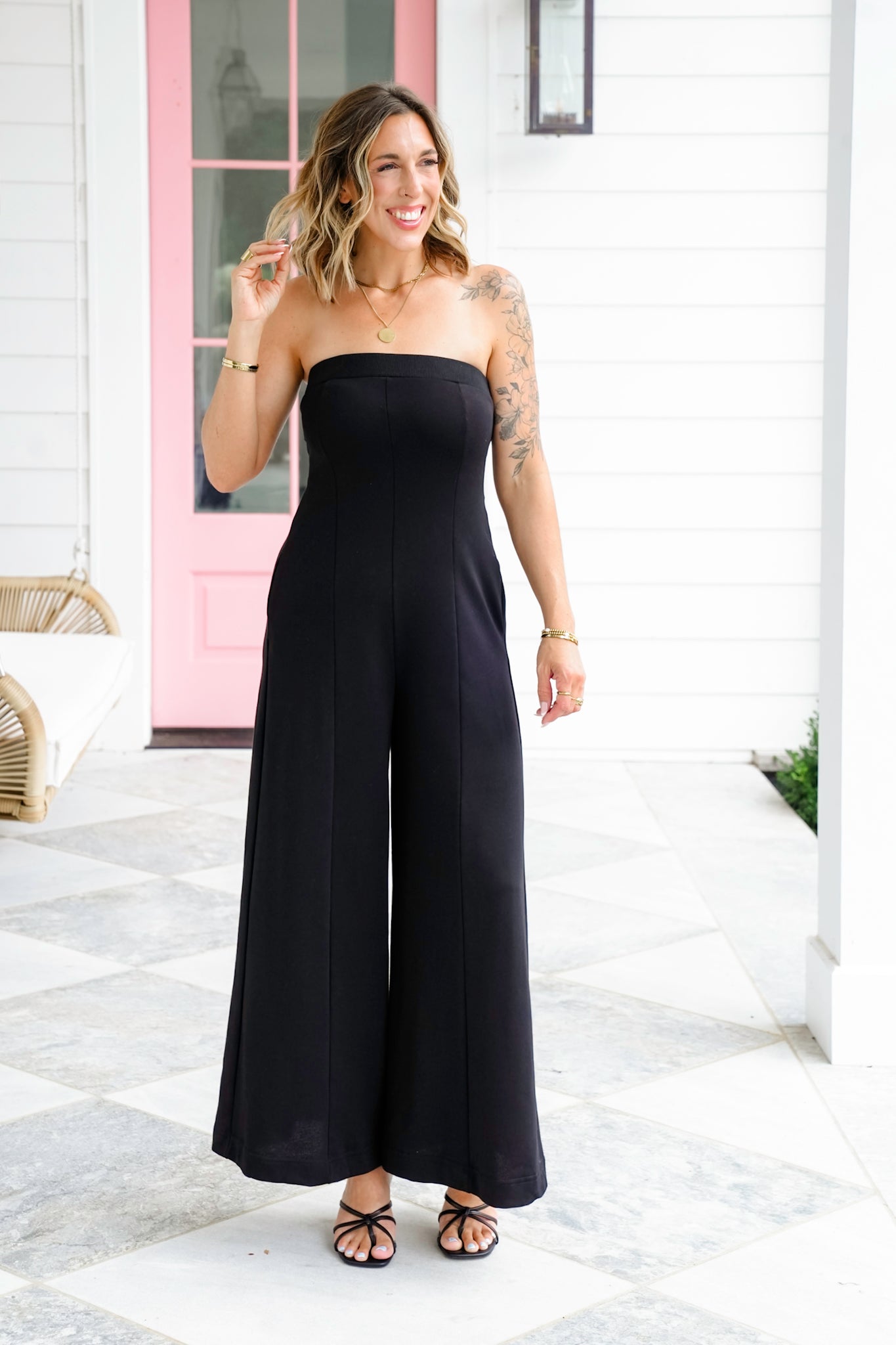 Instant confidence in one piece, this jumpsuit is everything. A wide leg design keeps it breezy and bold, while the soft knit fabric hugs in all the right places. Removable, adjustable straps mean you can style it strapless i that's your preference. The deep side pockets are the cherry on top! Whether you’re styling it with a straw hat and sandals for day or adding statement earrings and heels for night, this jumpsuit makes it look like you tried, even if you didn’t.