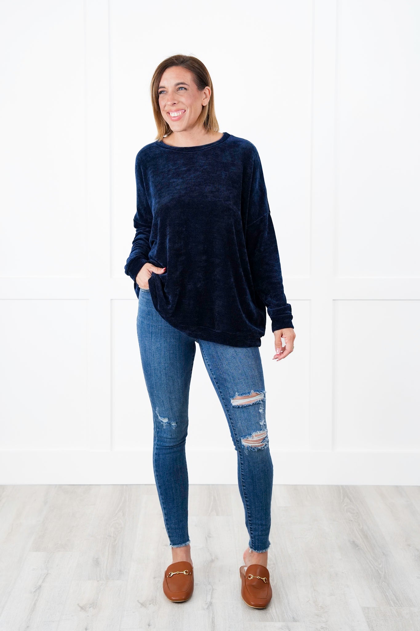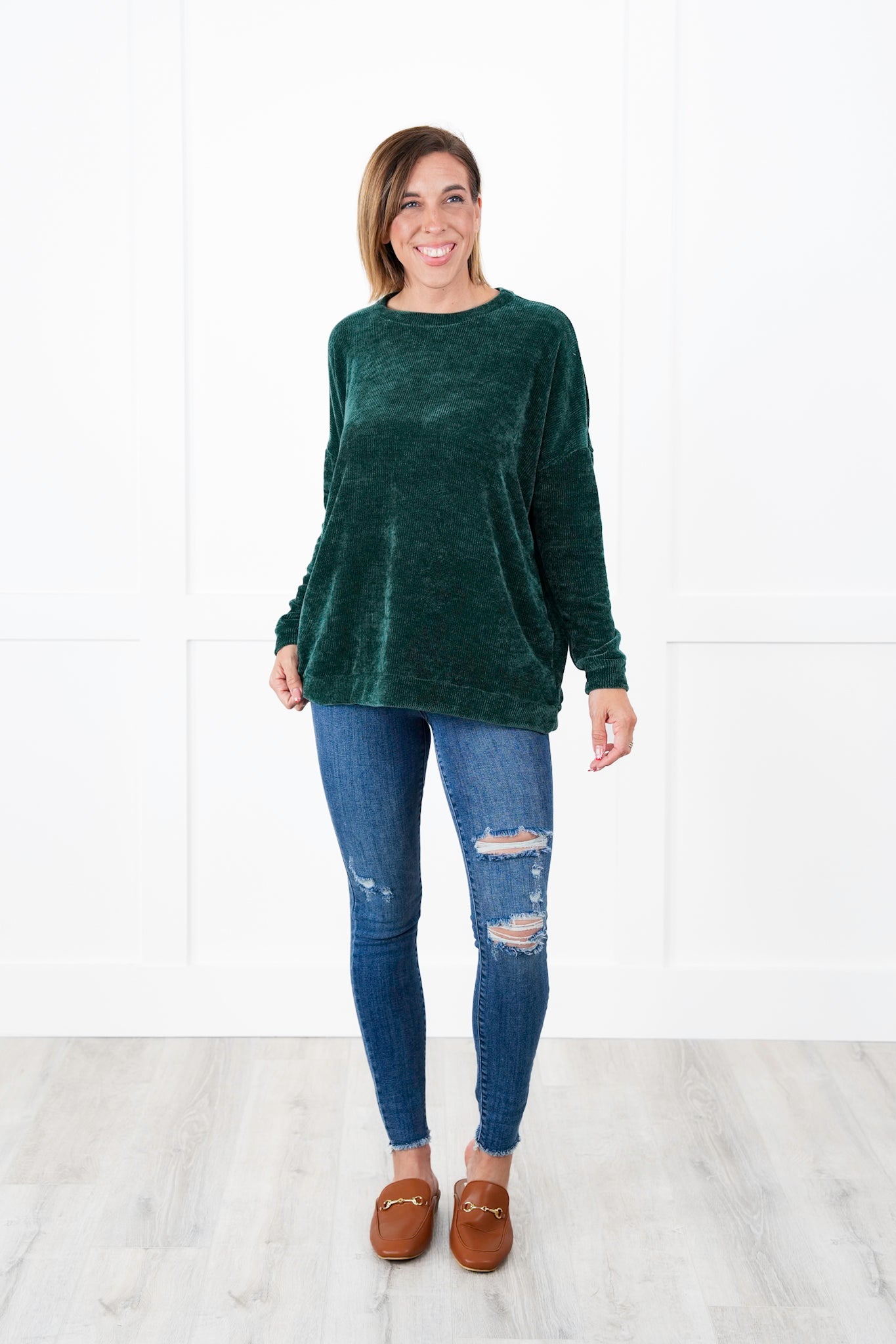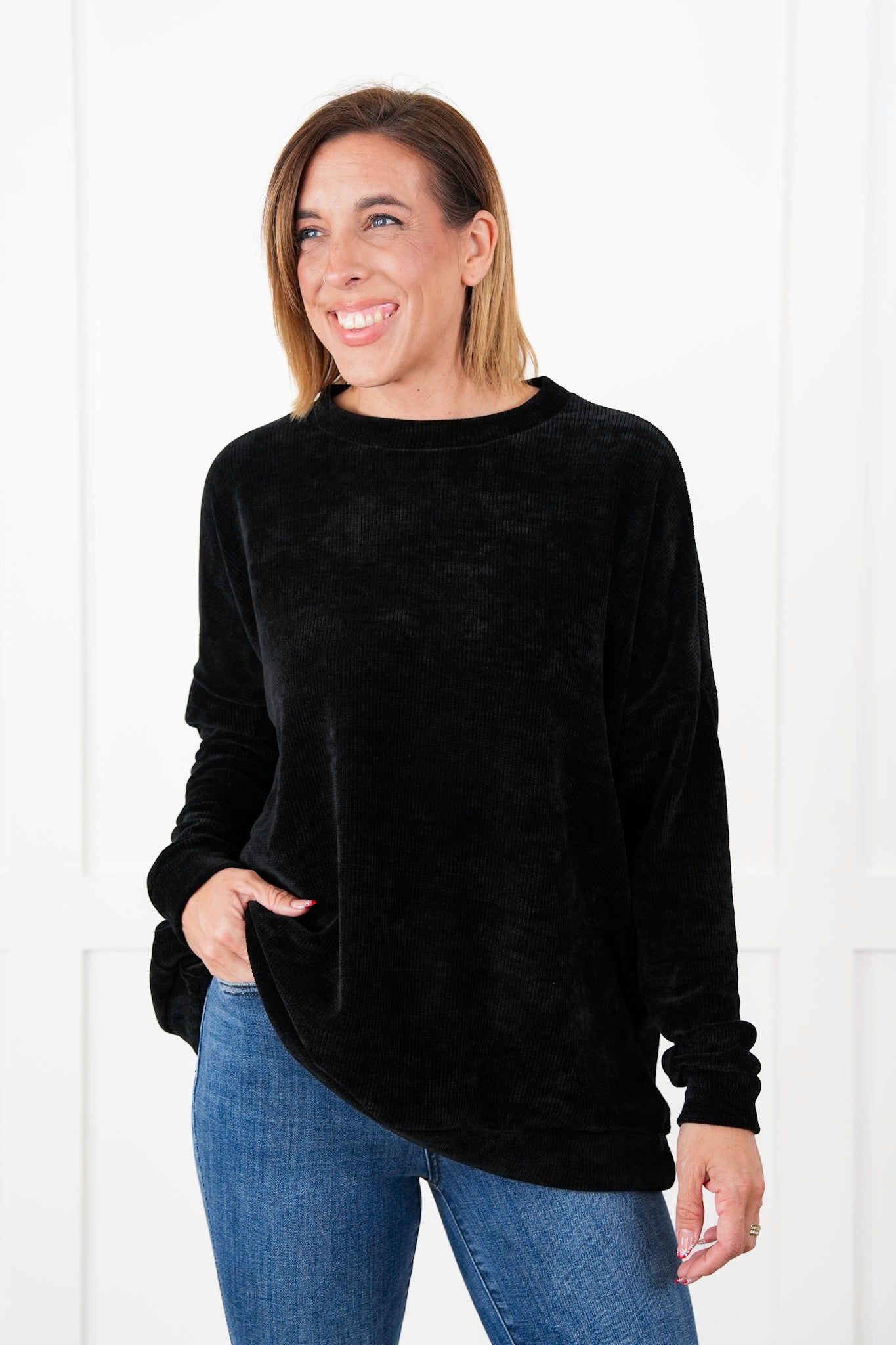 Plus/Reg Solid Chenille Long Sleeve Round Neck Top (Multiple Colors)