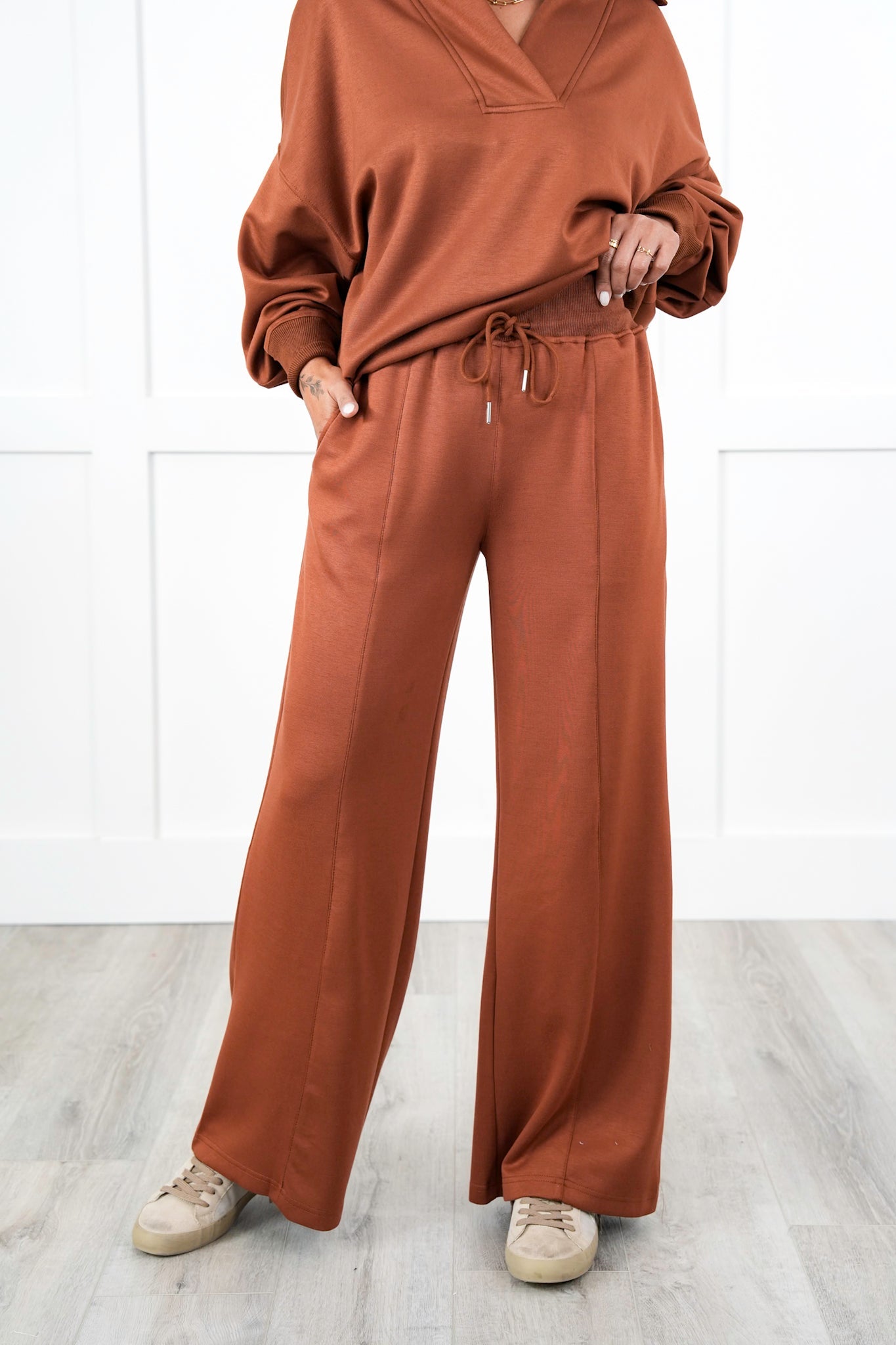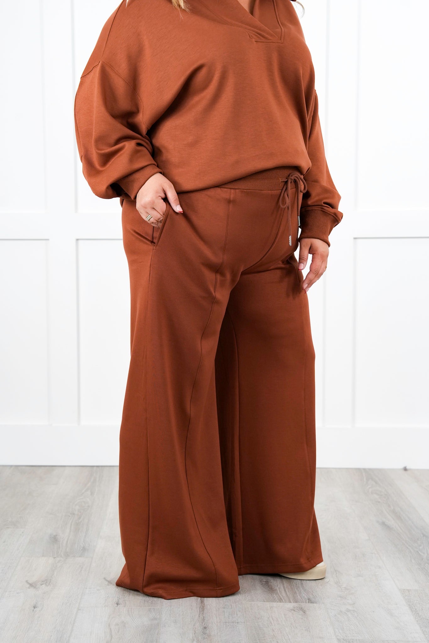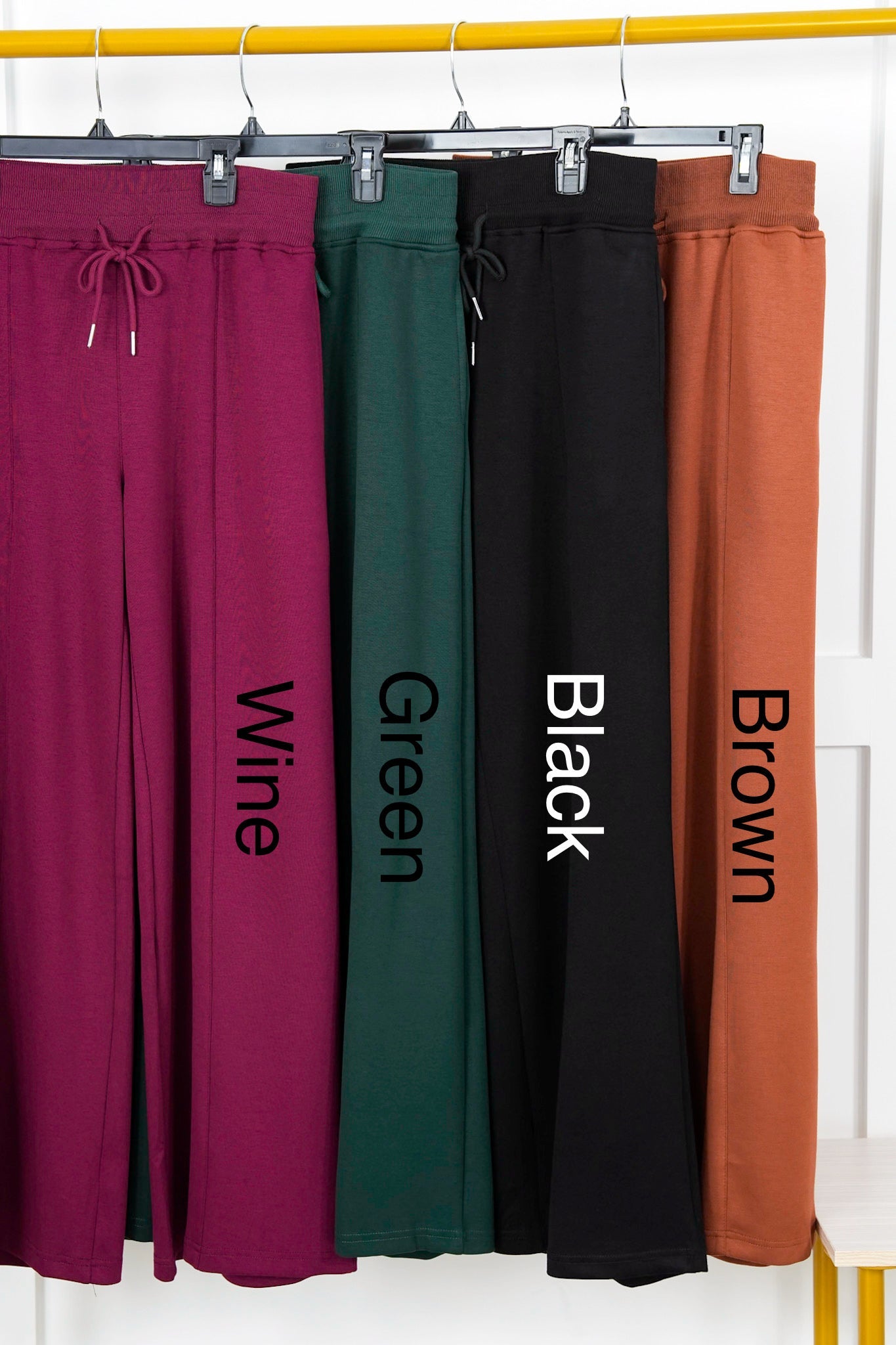 Fit: These aren't your average sweatpants, ladies! They are scuba knit making them chic and trendy. We love the wide legs, elastic waistband, and functional drawstring for added comfort. They also have side pockets and front seam. These are super soft with a relaxed, true-to-size fit!