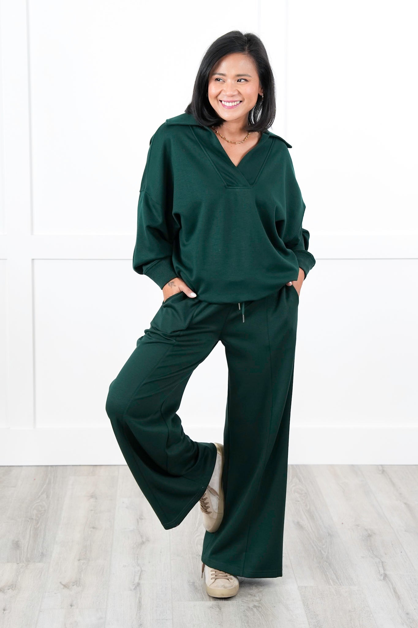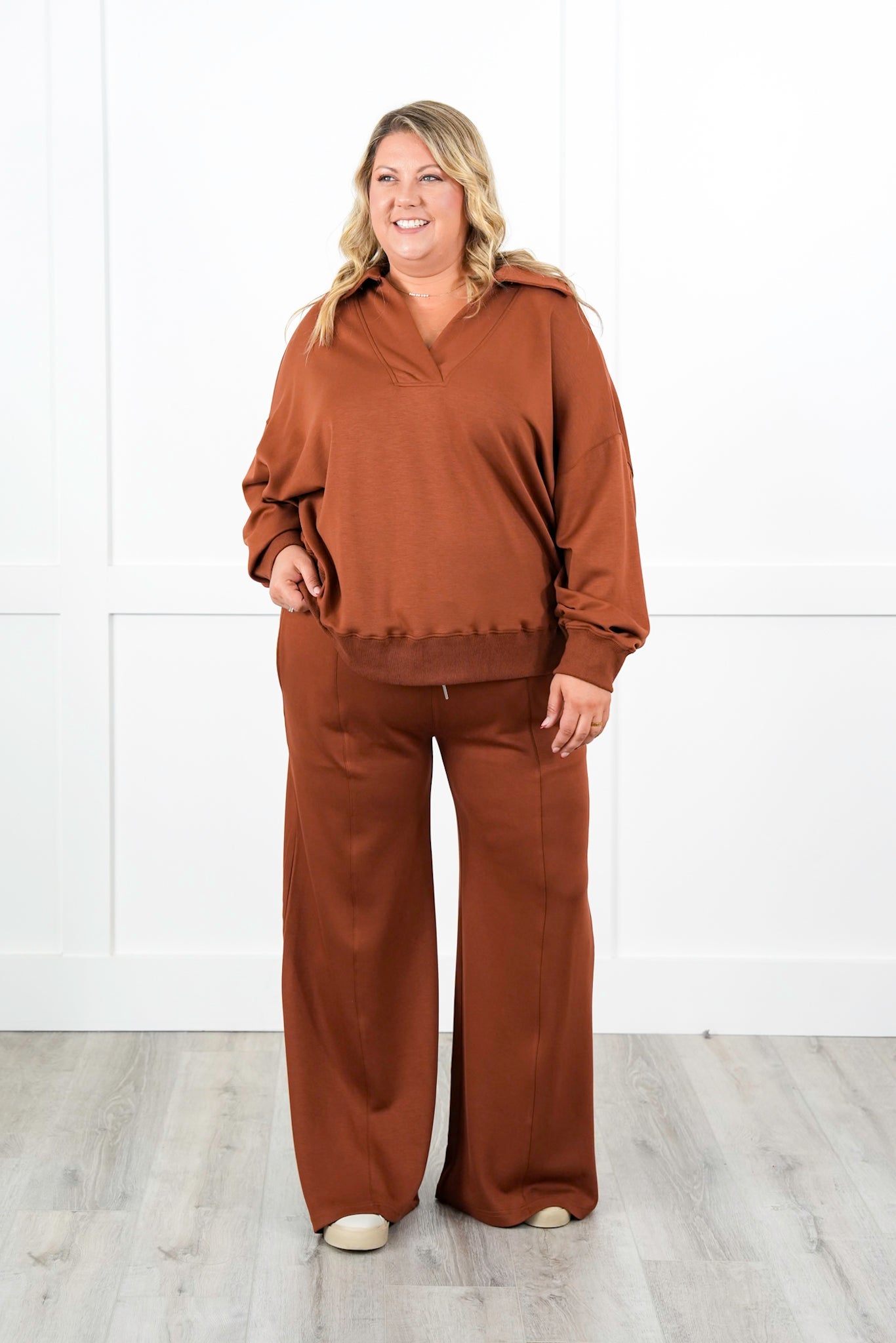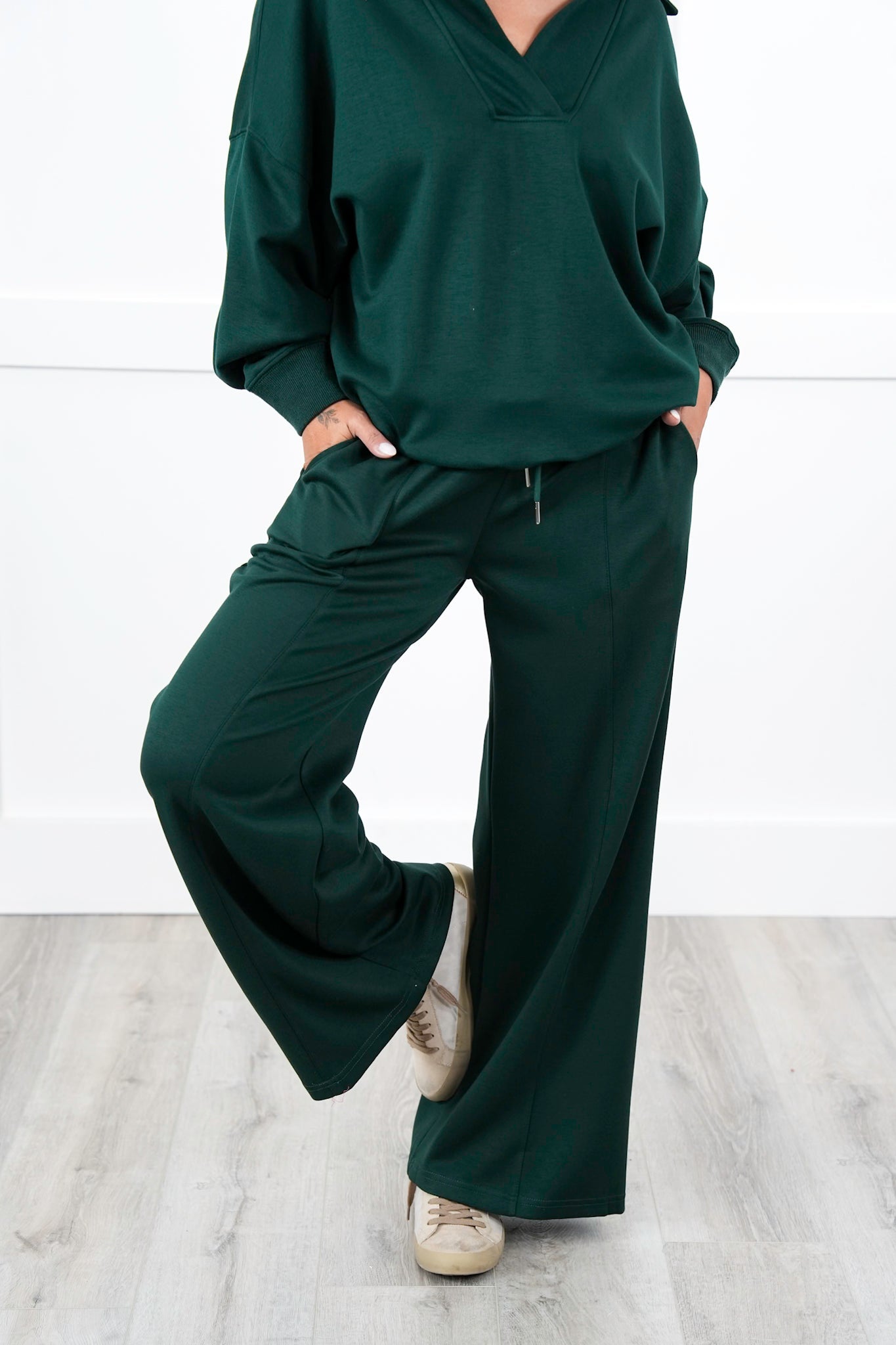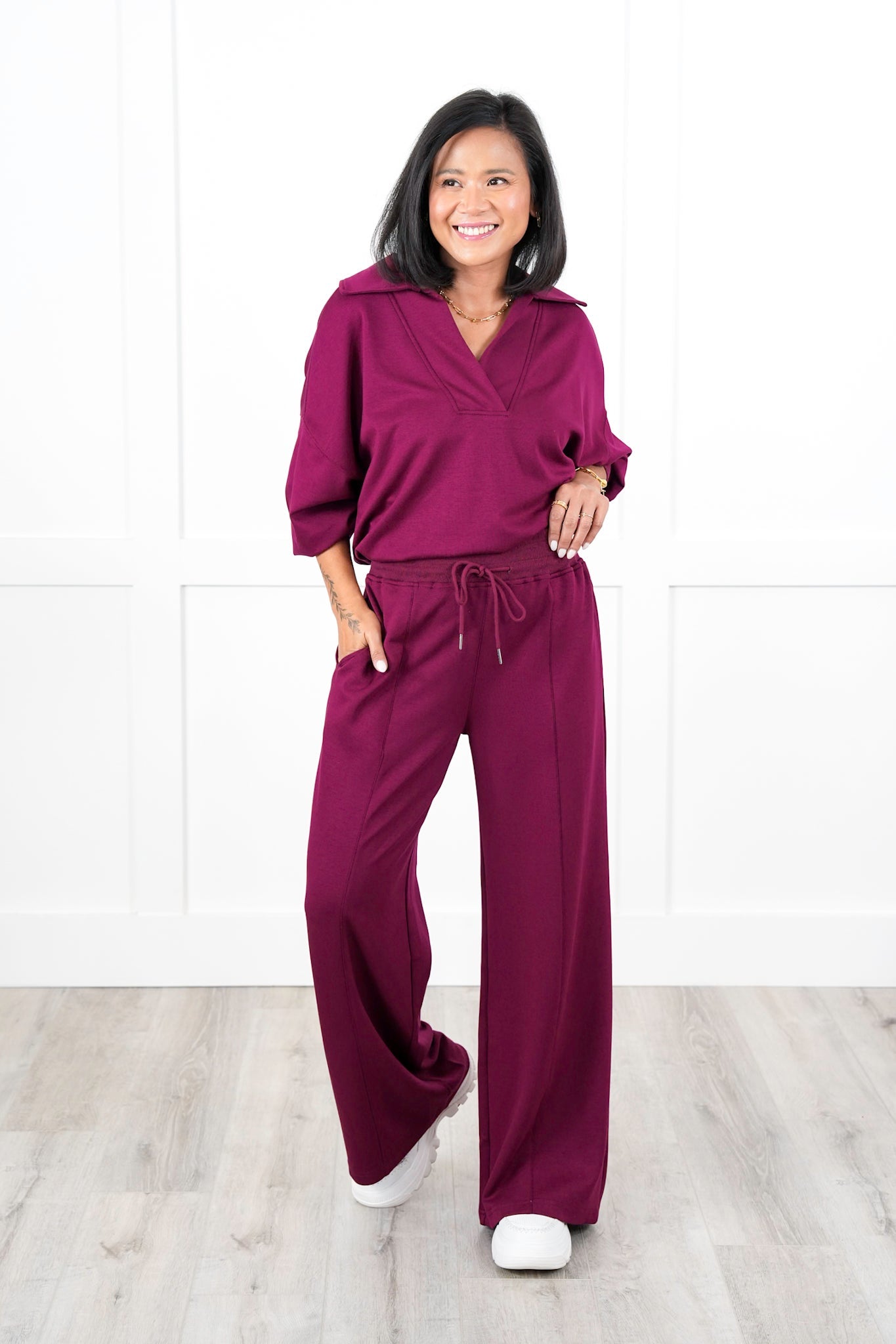 Fit: These aren't your average sweatpants, ladies! They are scuba knit making them chic and trendy. We love the wide legs, elastic waistband, and functional drawstring for added comfort. They also have side pockets and front seam. These are super soft with a relaxed, true-to-size fit!