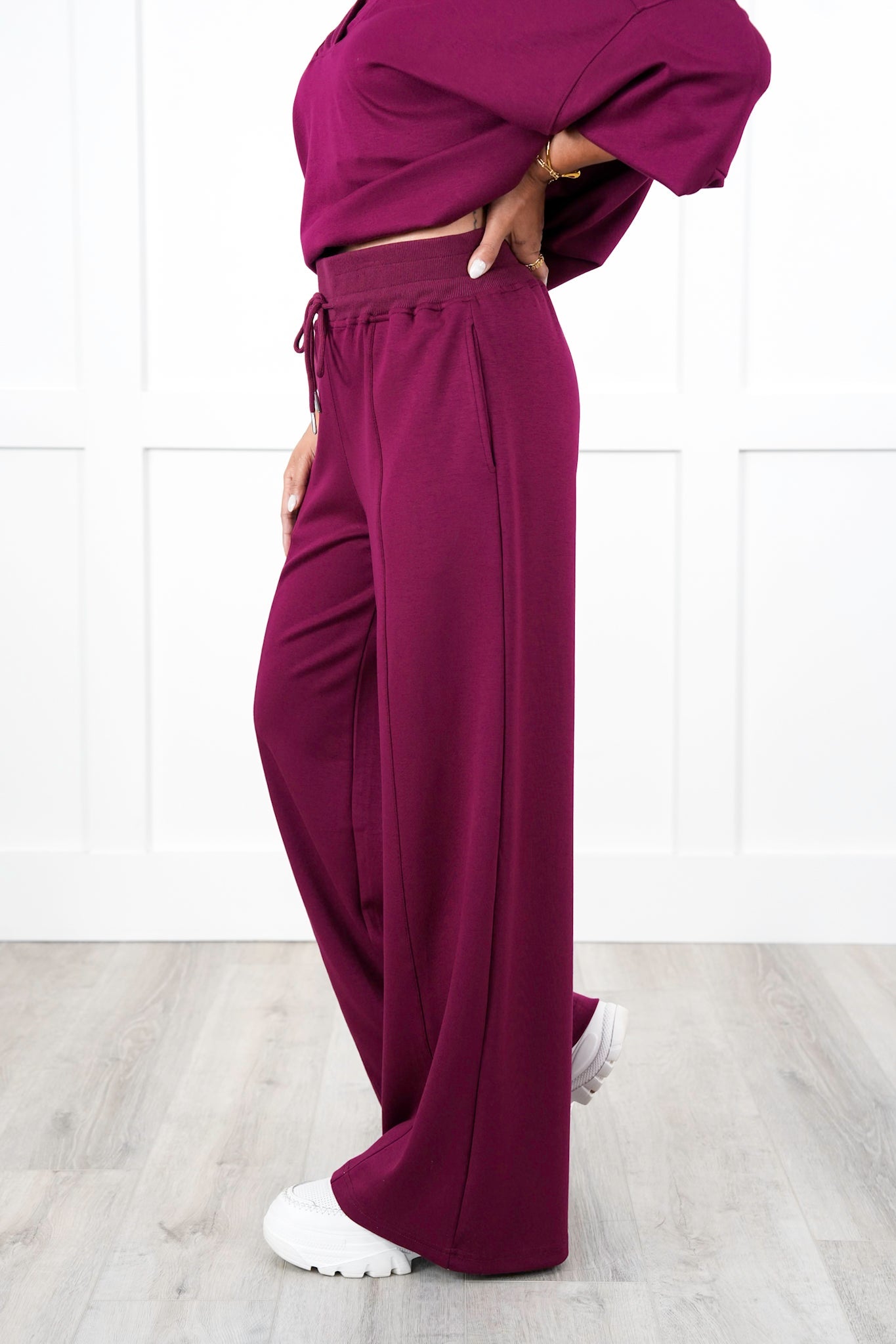 These scuba-knit sweatpants are comfort's cool cousin! They're like wearing a hug for your legs. The high elastic waist keeps everything smooth and comfy, while the wide-leg cut brings a touch of chic to your loungewear game. Perfect for everything from Netflix marathons to quick grocery runs. Pair them with the matching sweatshirt (sold separately) for a coordinated, or add a crisp white tee for a more polished vibe. They're not just sweatpants, they're your new go-to for feeling put-together while staying ultra-comfy. Slip these on and prepare to conquer your day - or your couch - in style!