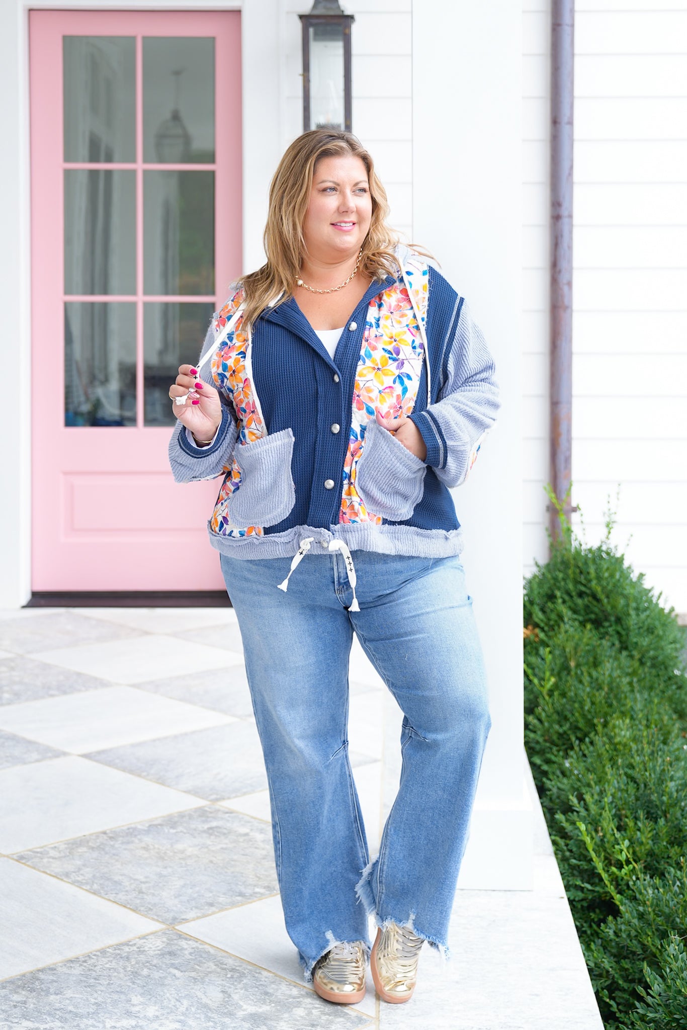 This jacket is the perfect mix of boho and comfort, blending playful floral prints with cozy textures that make it a total statement piece. It’s that easy grab-and-go layer that instantly elevates any casual outfit.