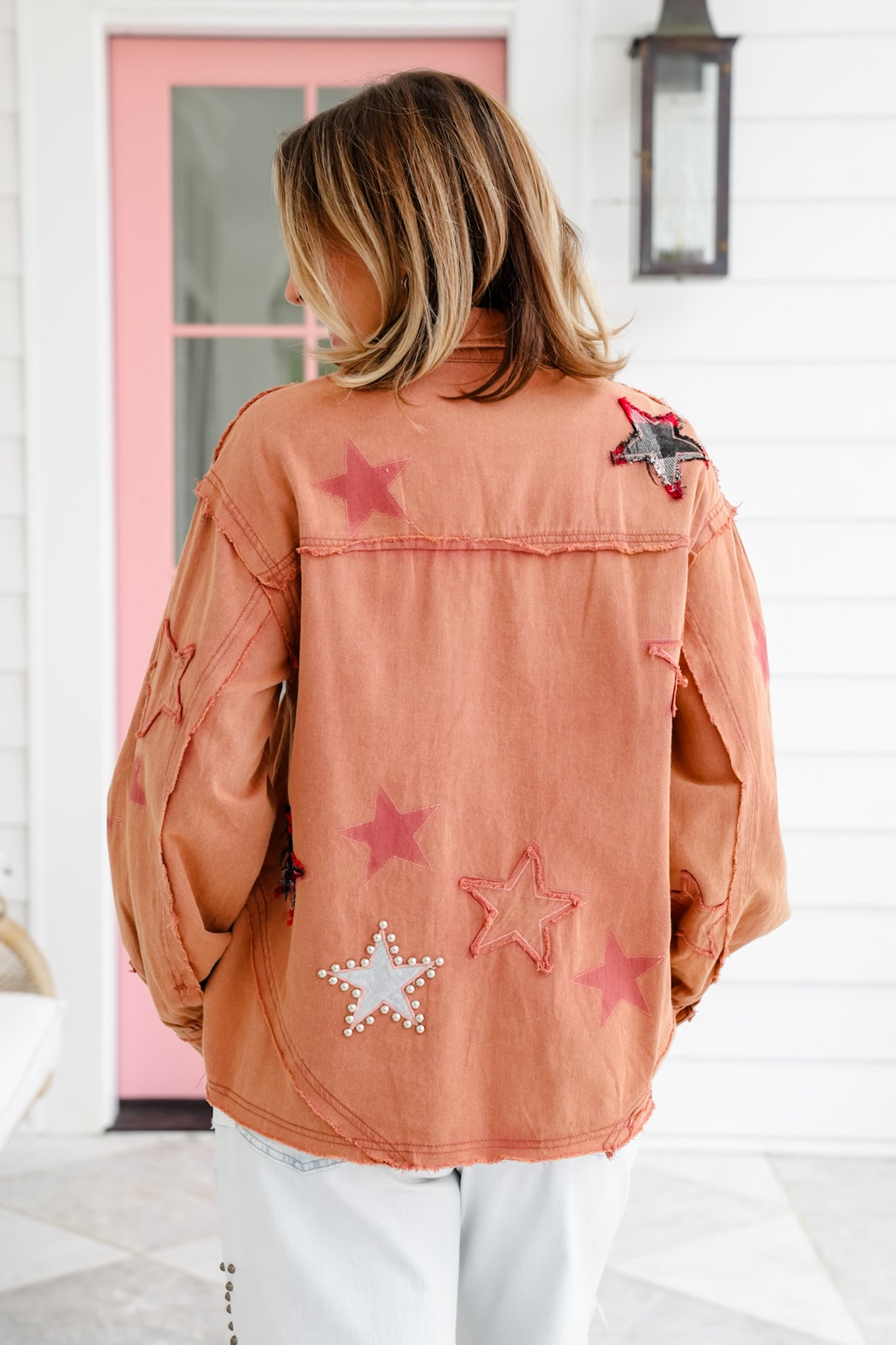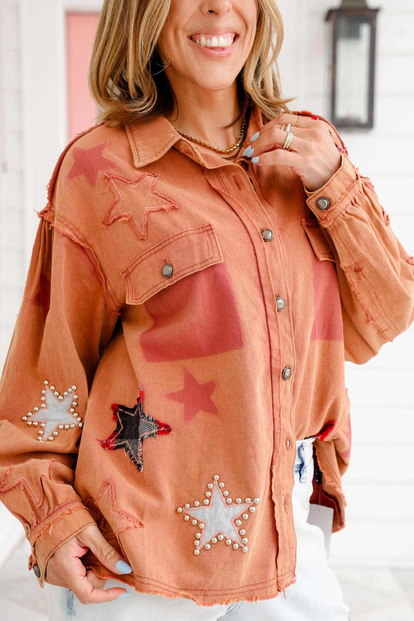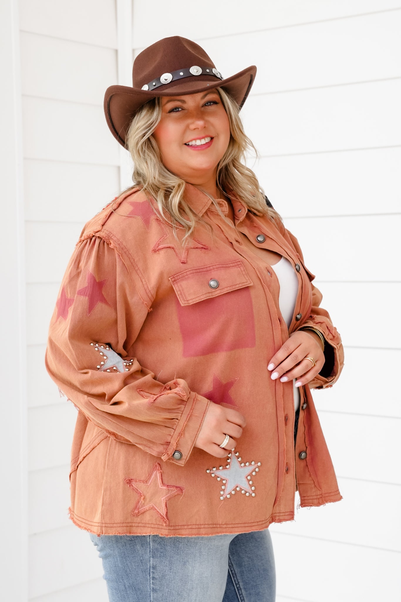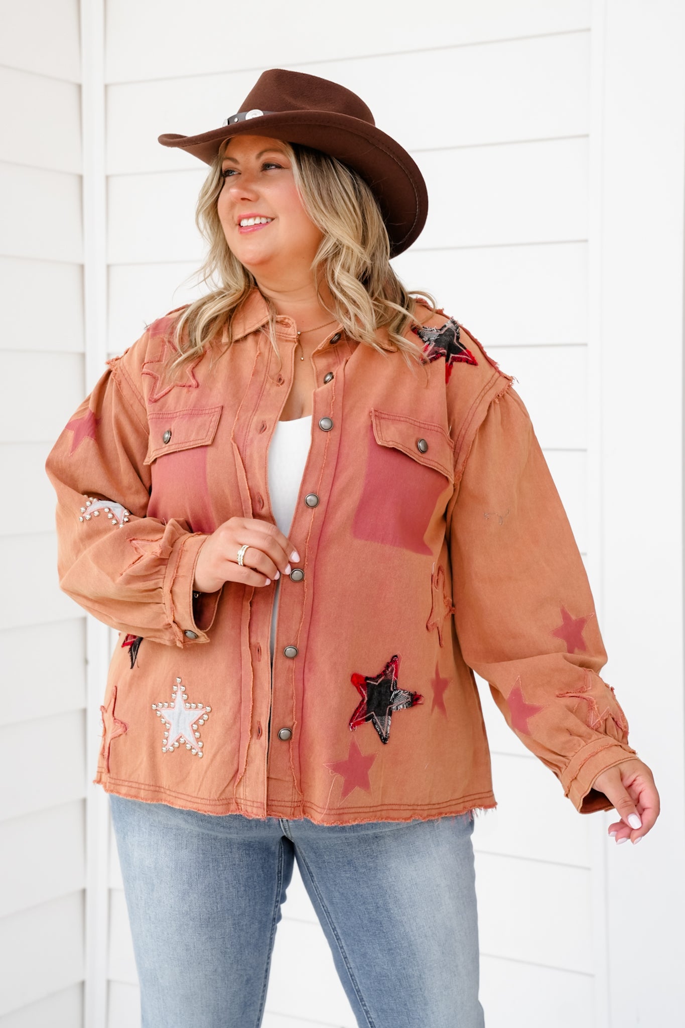 Stars are always trending, and this shacket is no exception! With a vintage wash and standout appliqué detailing, this piece is equal parts comfy and statement-making. Toss it over leggings for a casual coffee run or pair it with distressed denim and sneakers for weekend fun.
