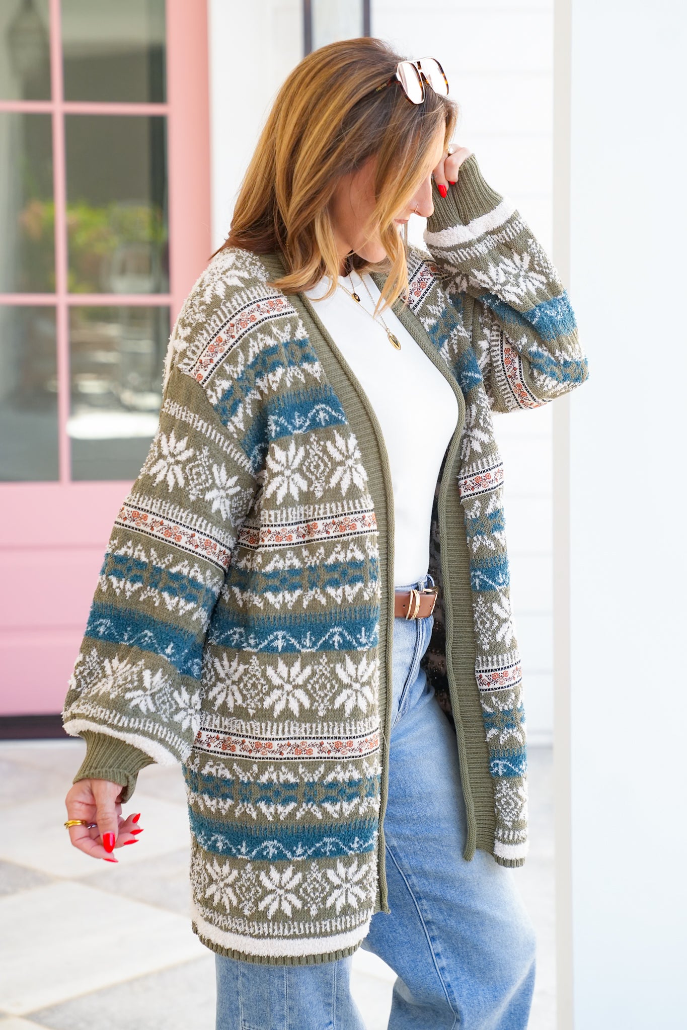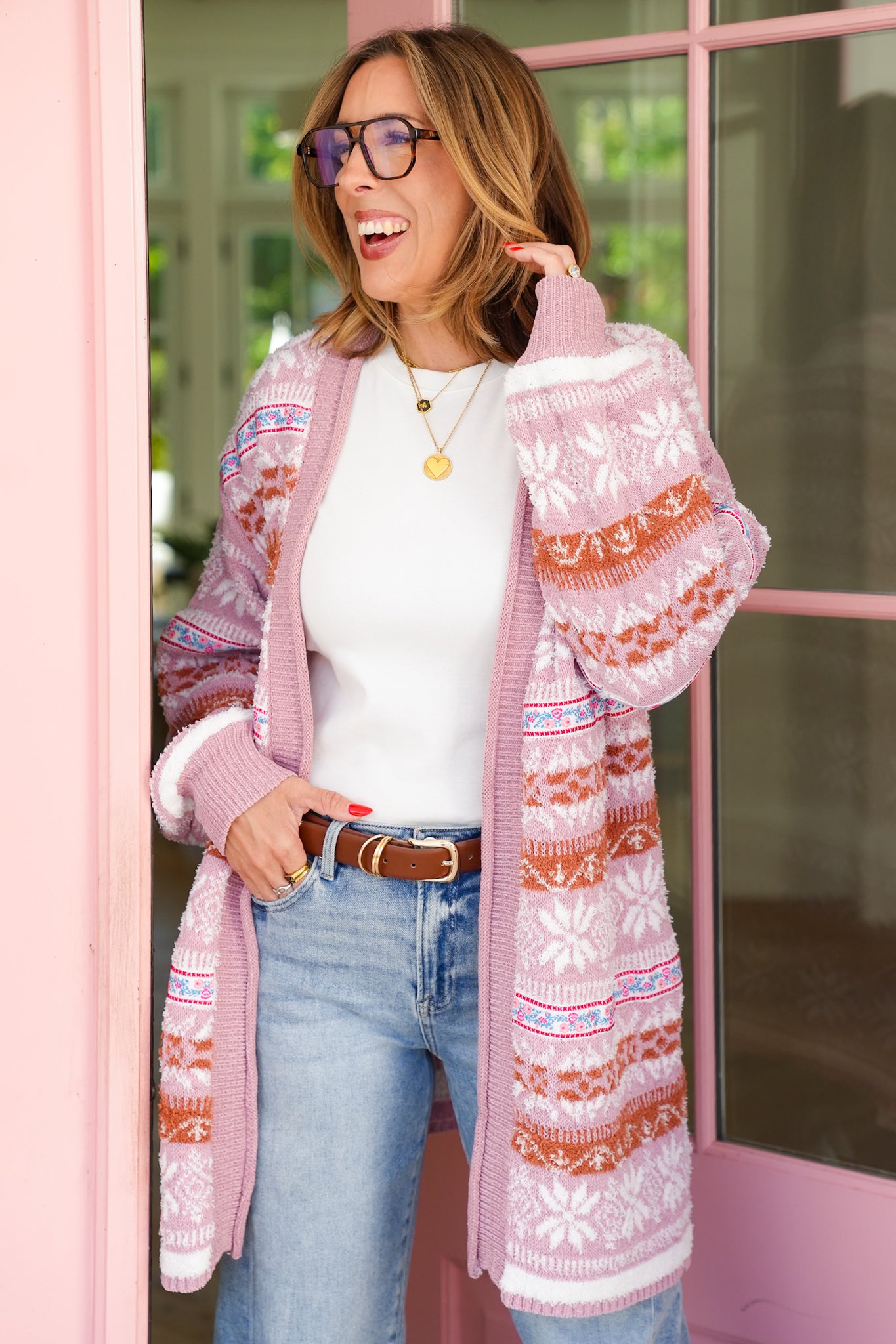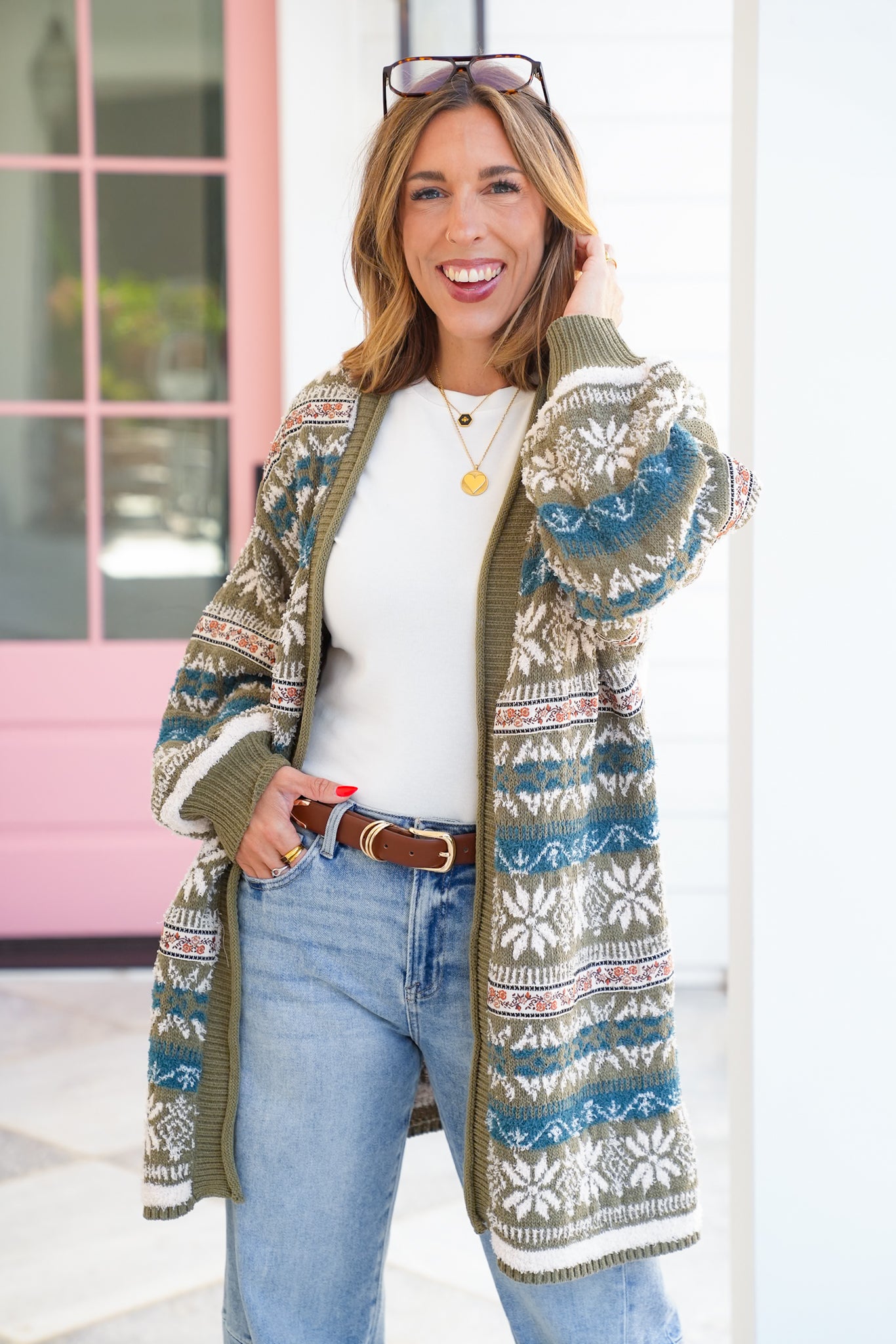 This cardigan is the layering piece you’ll reach for again and again. The soft knit and open-front design make it easy to throw on, while the patterned texture gives it that elevated, boutique feel. Whether paired with denim for a casual day or layered over a dress for a polished look, it brings cozy sophistication to every outfit.