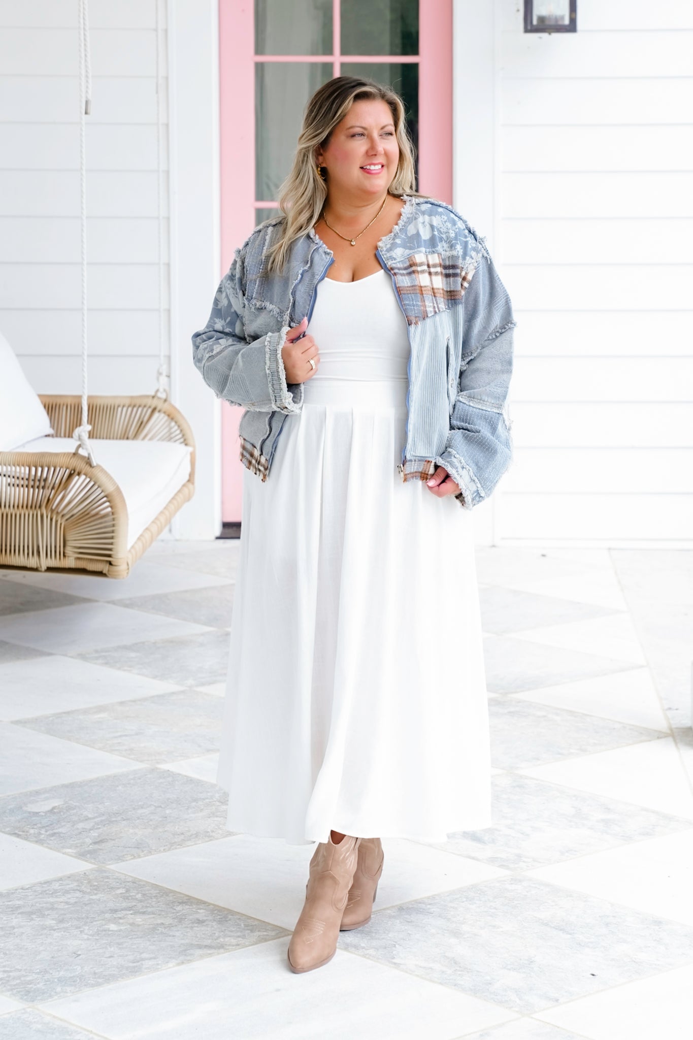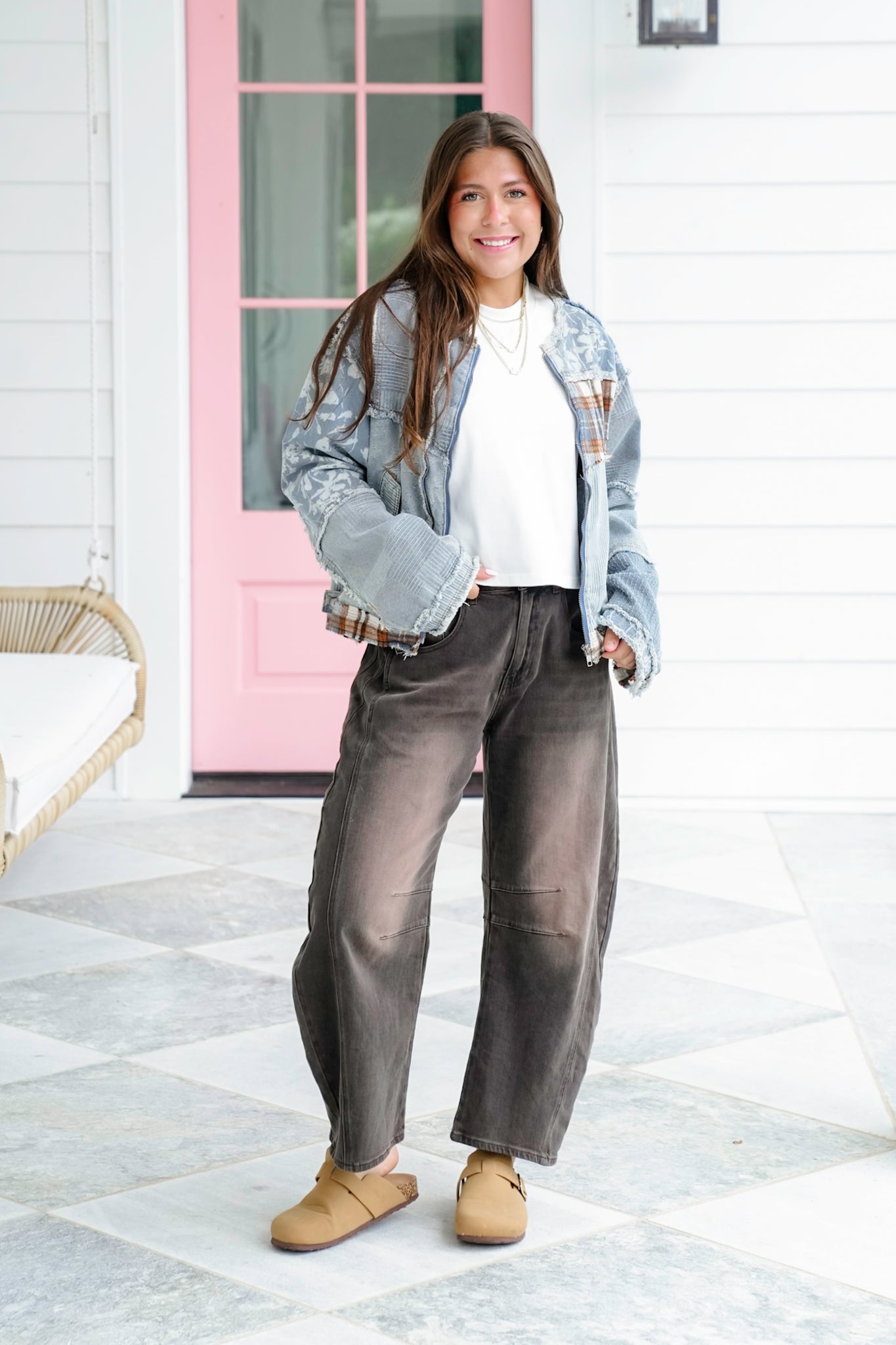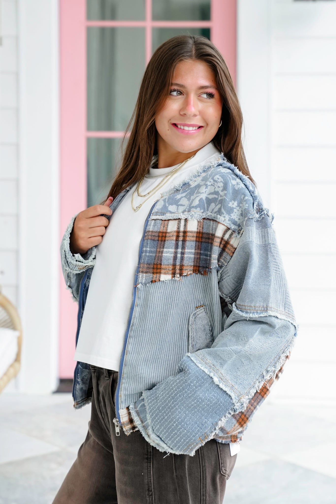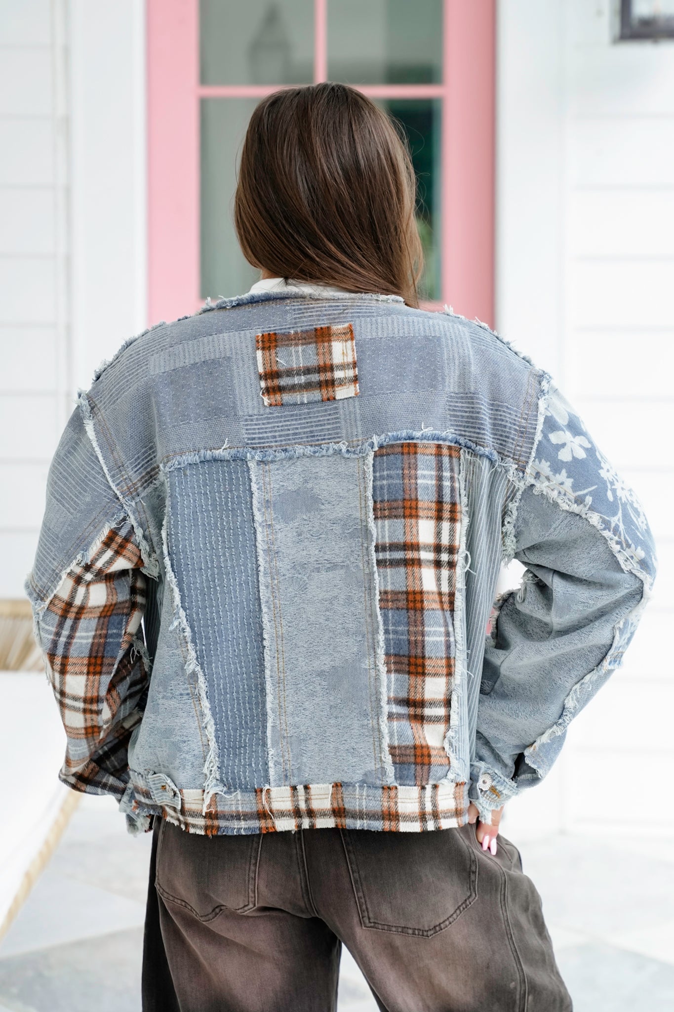 This statement-maker is a whole vibe! A mix of denim, corduroy, flannel, and floral print collide into one bold, edgy, absolutely eye-catching jacket. The frayed seams and patchwork texture give it that vintage, lived-in charm that’s cooler than cool. Throw it on over a graphic tee and distressed denim for weekend errands, or pair it with leggings and boots for a cozy-yet-elevated day out. It’s the jacket everyone will be asking about.