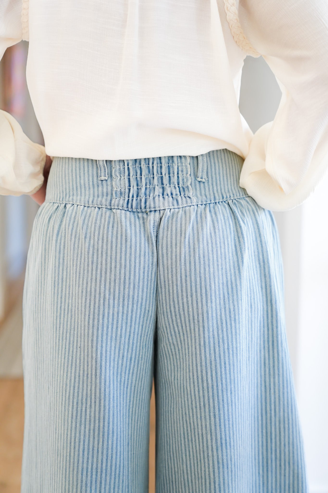 These POL pants are an absolute showstopper with their bold stripes and embroidered floral patches. The wide leg cut flows beautifully with every step, while the elastic back waistband keeps them comfortable without sacrificing style. Pair them with a simple tee or blouse and let these pants steal the spotlight every time.