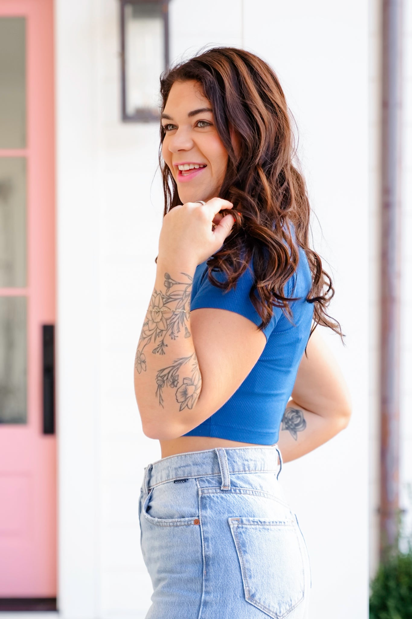 Flattering, stretchy, and designed to pair with anything, this ribbed cropped top adds instant style to any outfit. The soft ribbed fabric hugs comfortably, while the scoop neckline adds a feminine touch. It’s perfect with high-waisted joggers, wide leg pants, or denim for a casual-chic vibe that’s right on trend.