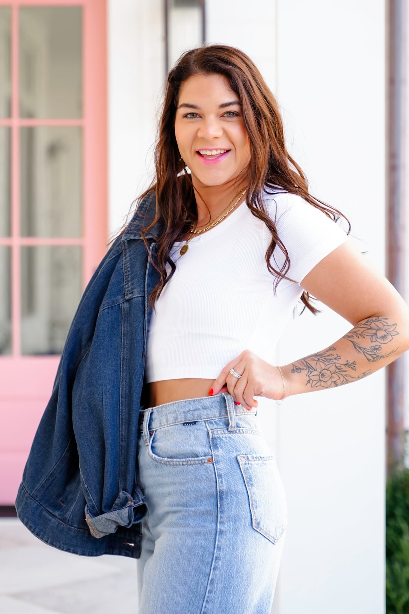 * Cropped length that pairs perfectly with high-waisted bottoms