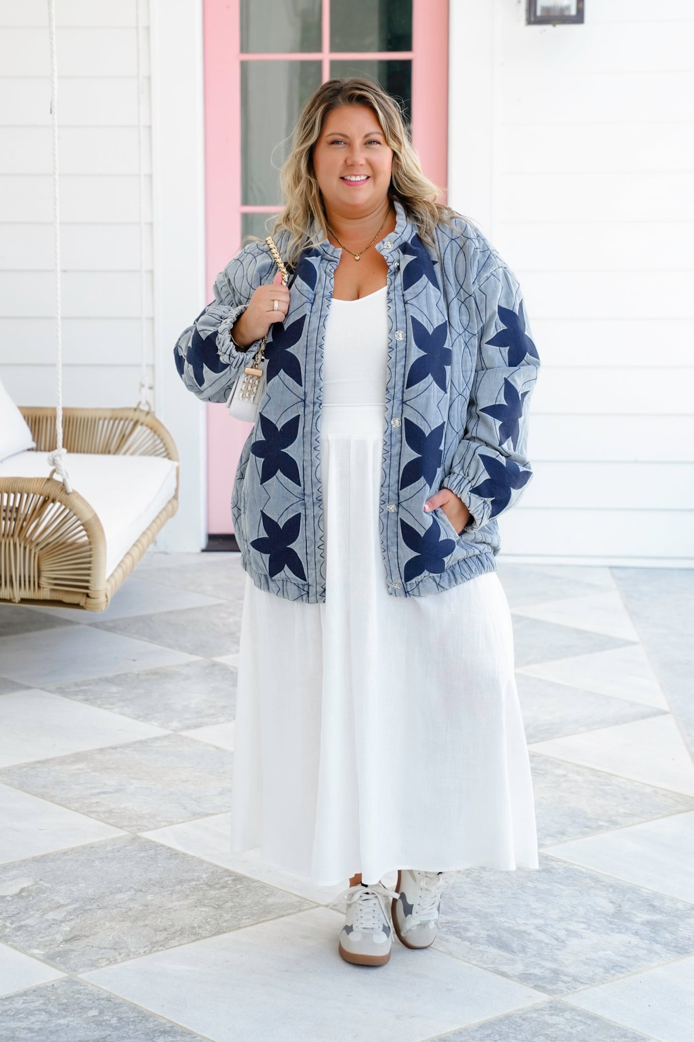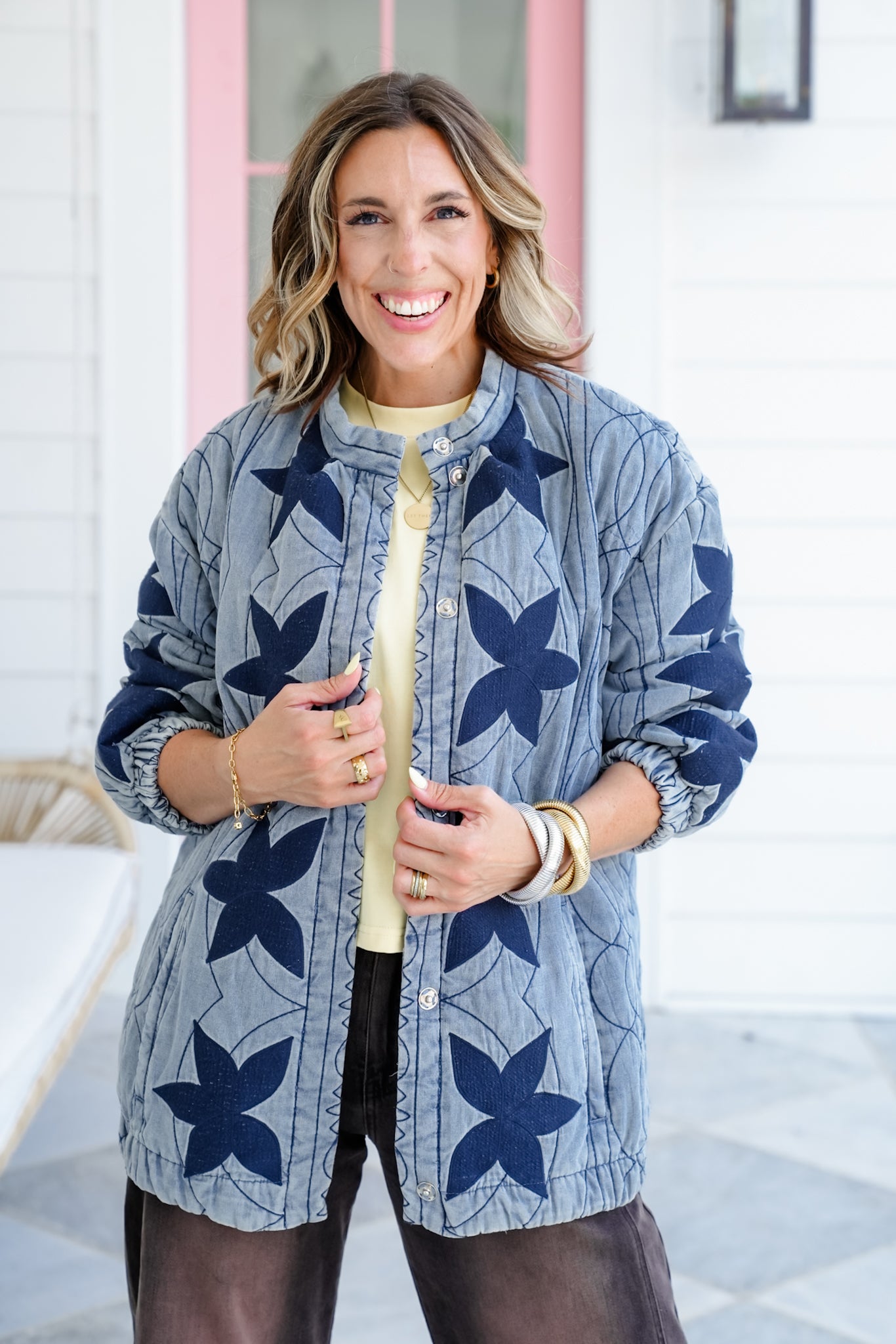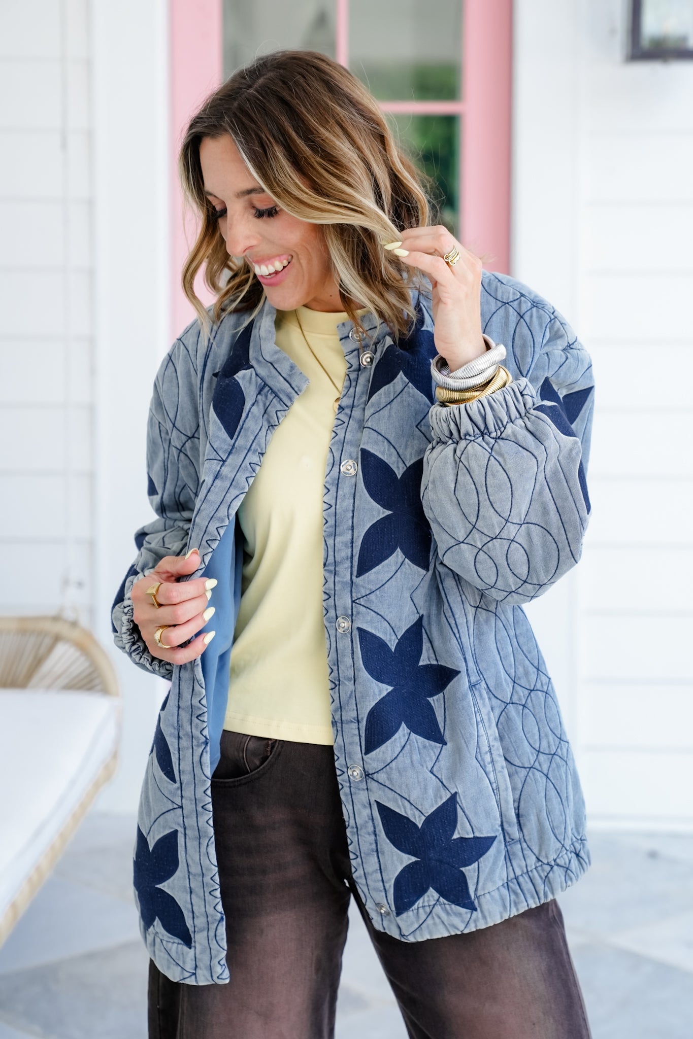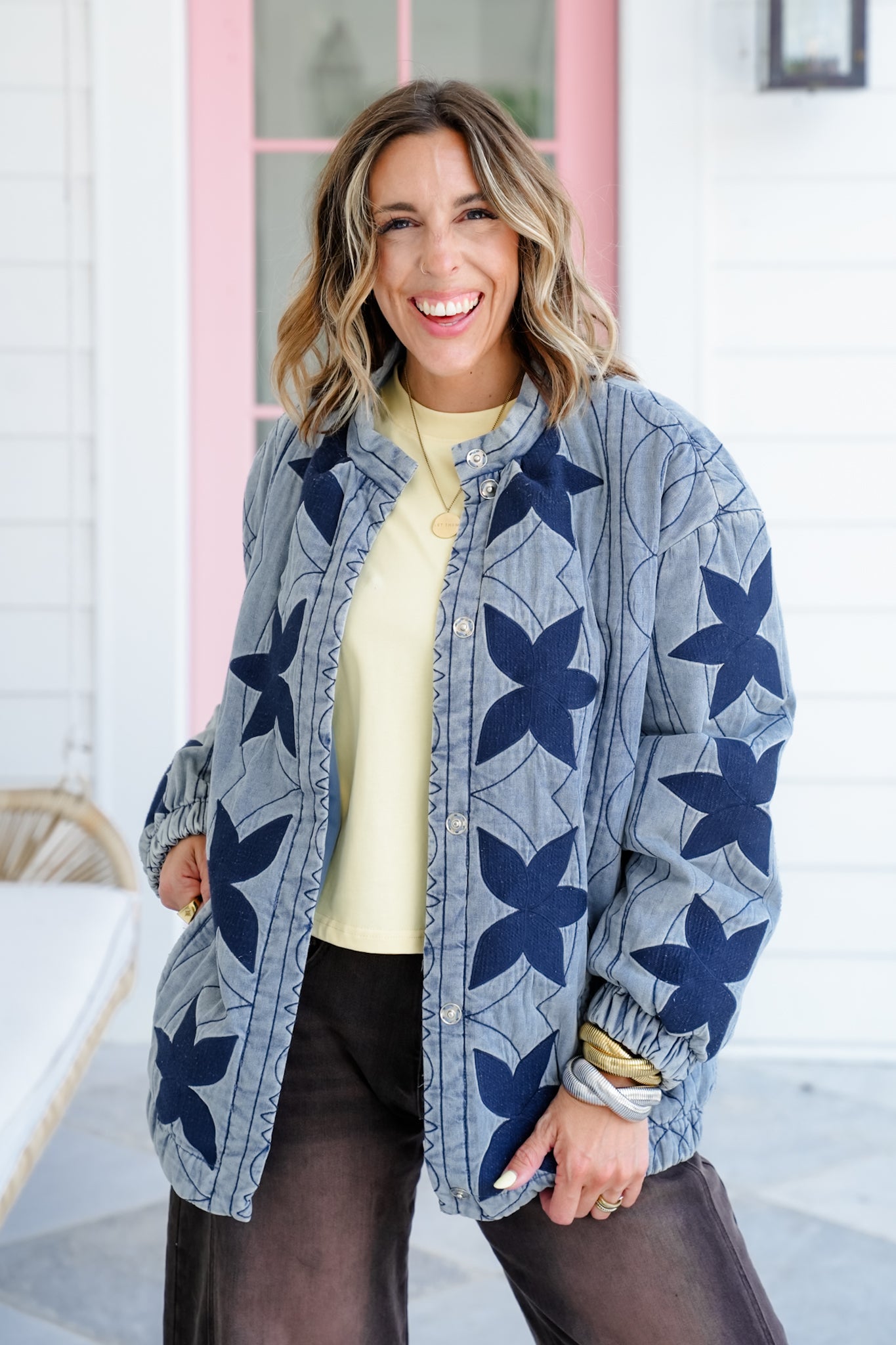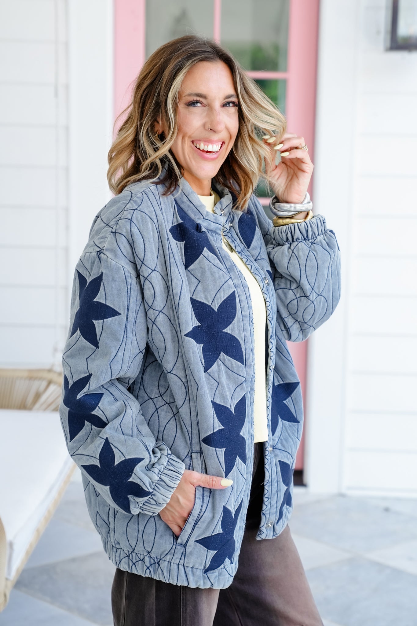 Meet the jacket that’s about to steal the spotlight in your outerwear collection! This quilted jacket wraps you in warmth while serving major style points. The oversized fit gives you that effortlessly cool, “oh-this-old-thing?” vibe, while the intricate quilted stitching and bold floral appliqués make it anything but ordinary.