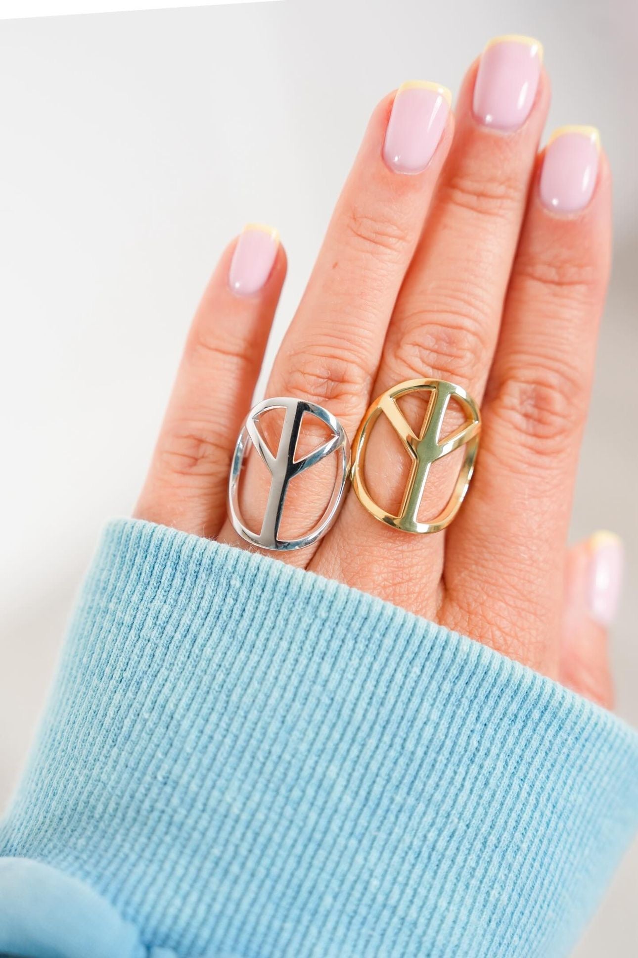 Finally back in stock! Add some good vibes to your look with this bold and stylish peace ring. Available in silver and gold, it’s the perfect way to show off your laid-back, beachy spirit with just the right amount of shine.