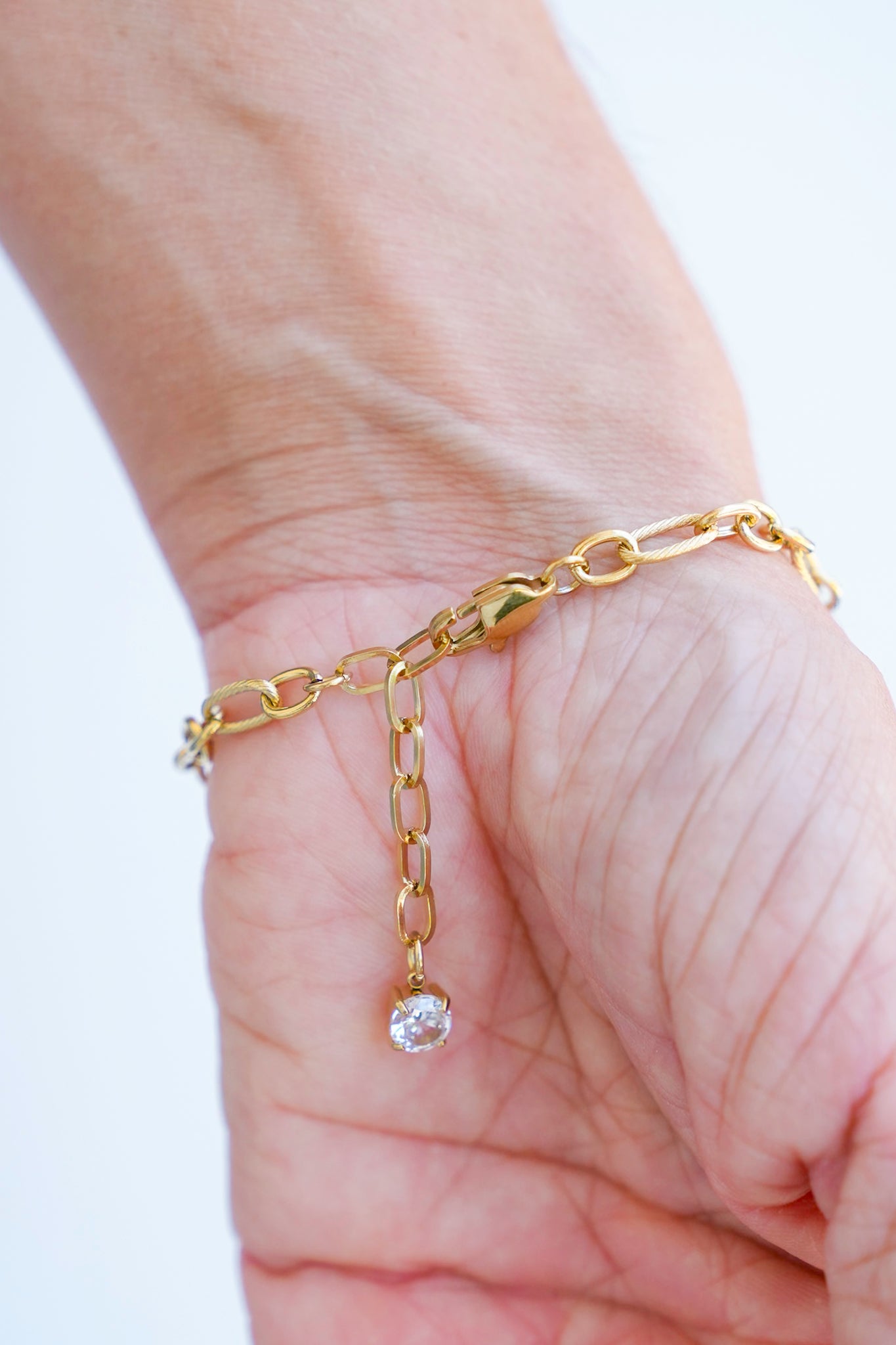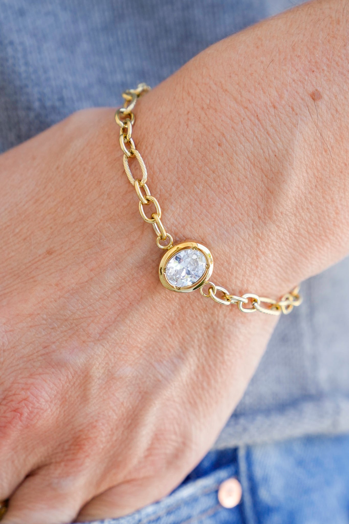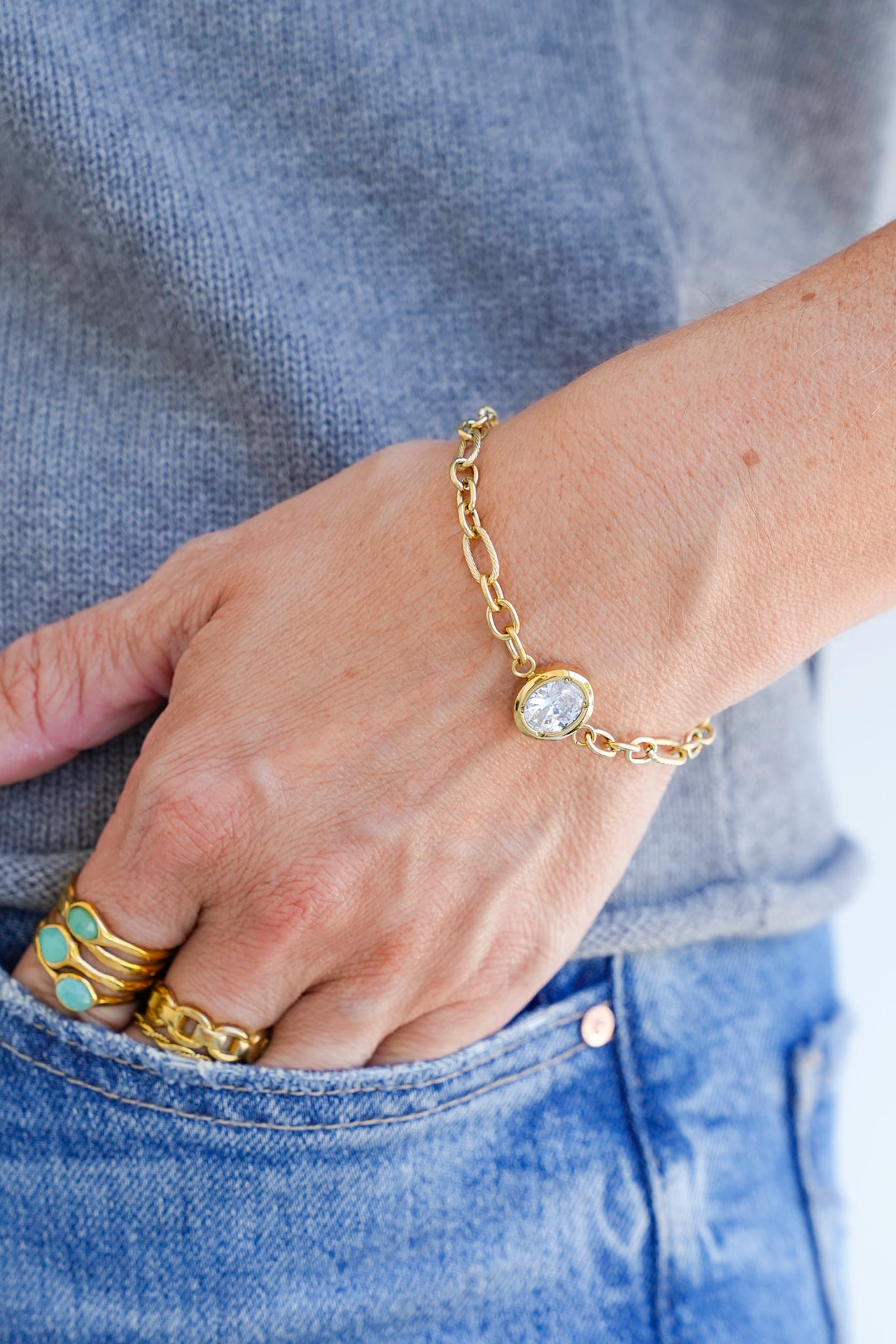 Big on glam and built to shine, the Colette XL adds major personality to your stack. The oversized chain and glimmering crystal give it that designer-inspired feel without the splurge. Style it with denim and a blazer or dress it up for date night sparkle.