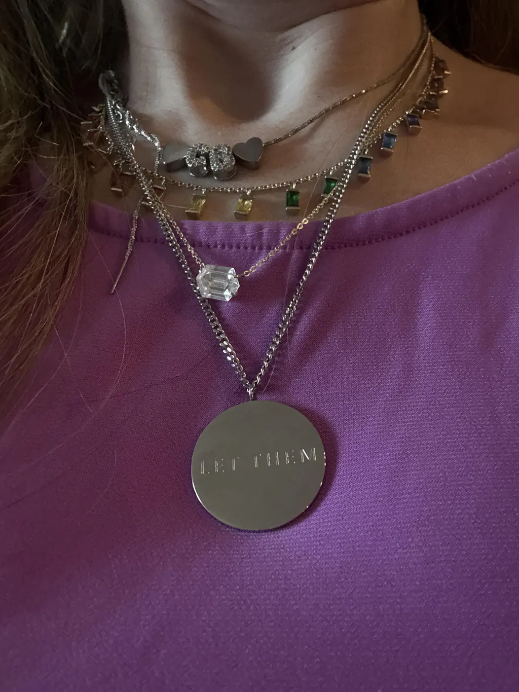 This sweet little necklace carries a powerful message: "let them." It's a gentle reminder to let people do what they do, and to stay rooted in your peace, no matter what swirls around you. The simple, round charm keeps things minimal yet meaningful, catching the light in a pretty, subtle way. Whether you're layering it up or wearing it solo, this one speaks volumes without saying too much.