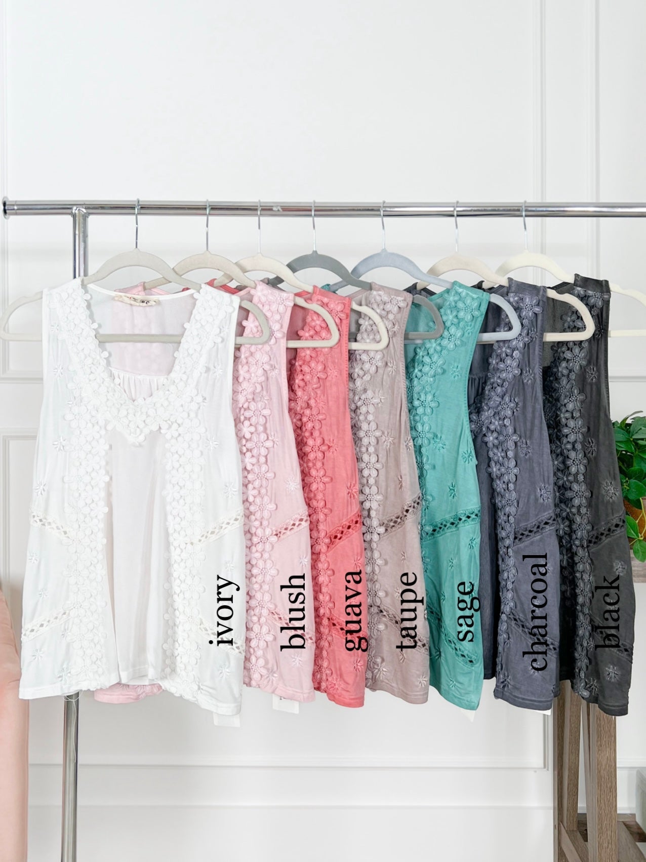Restocks! POL Sleeveless Tank Top with Floral Embroidery Detail