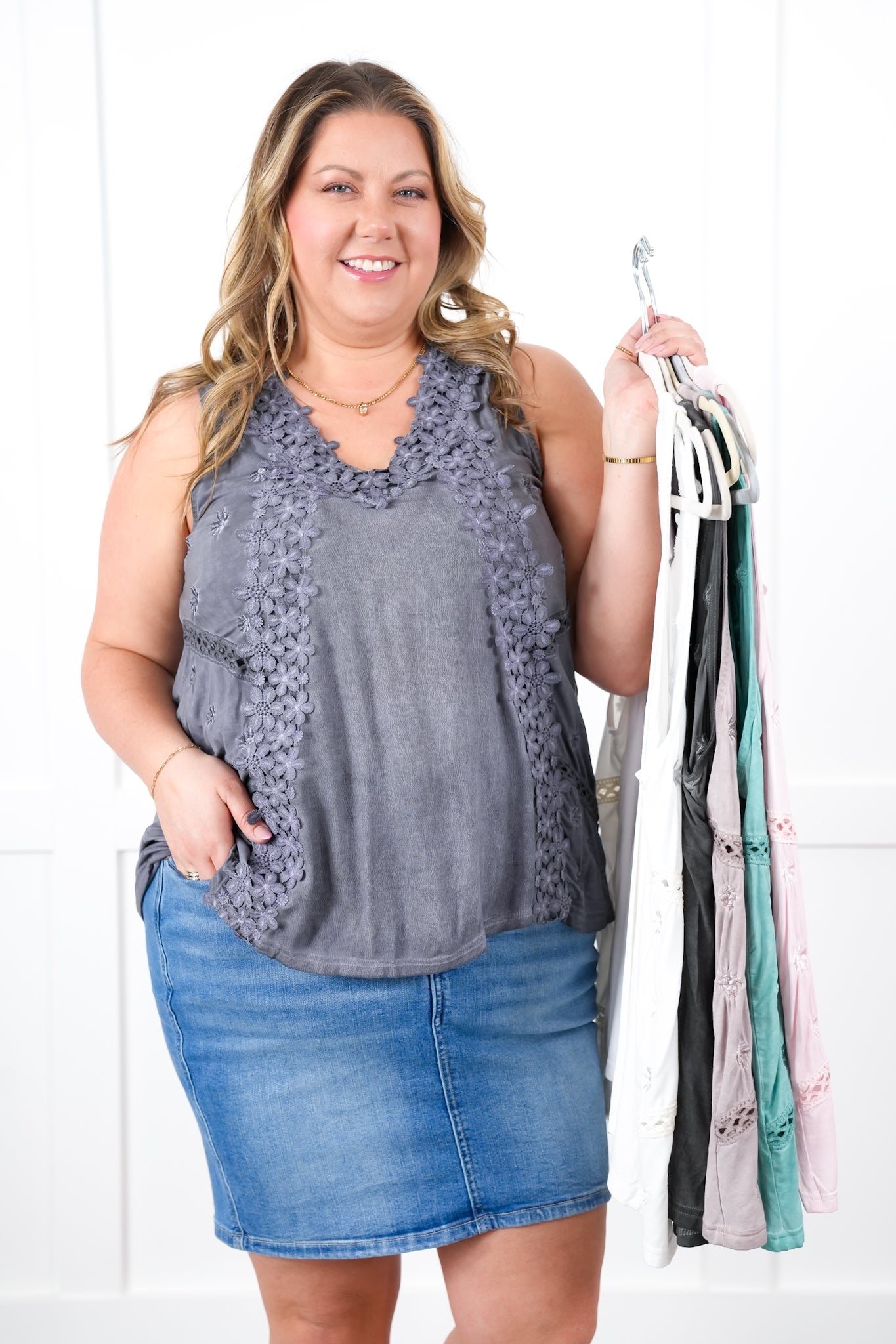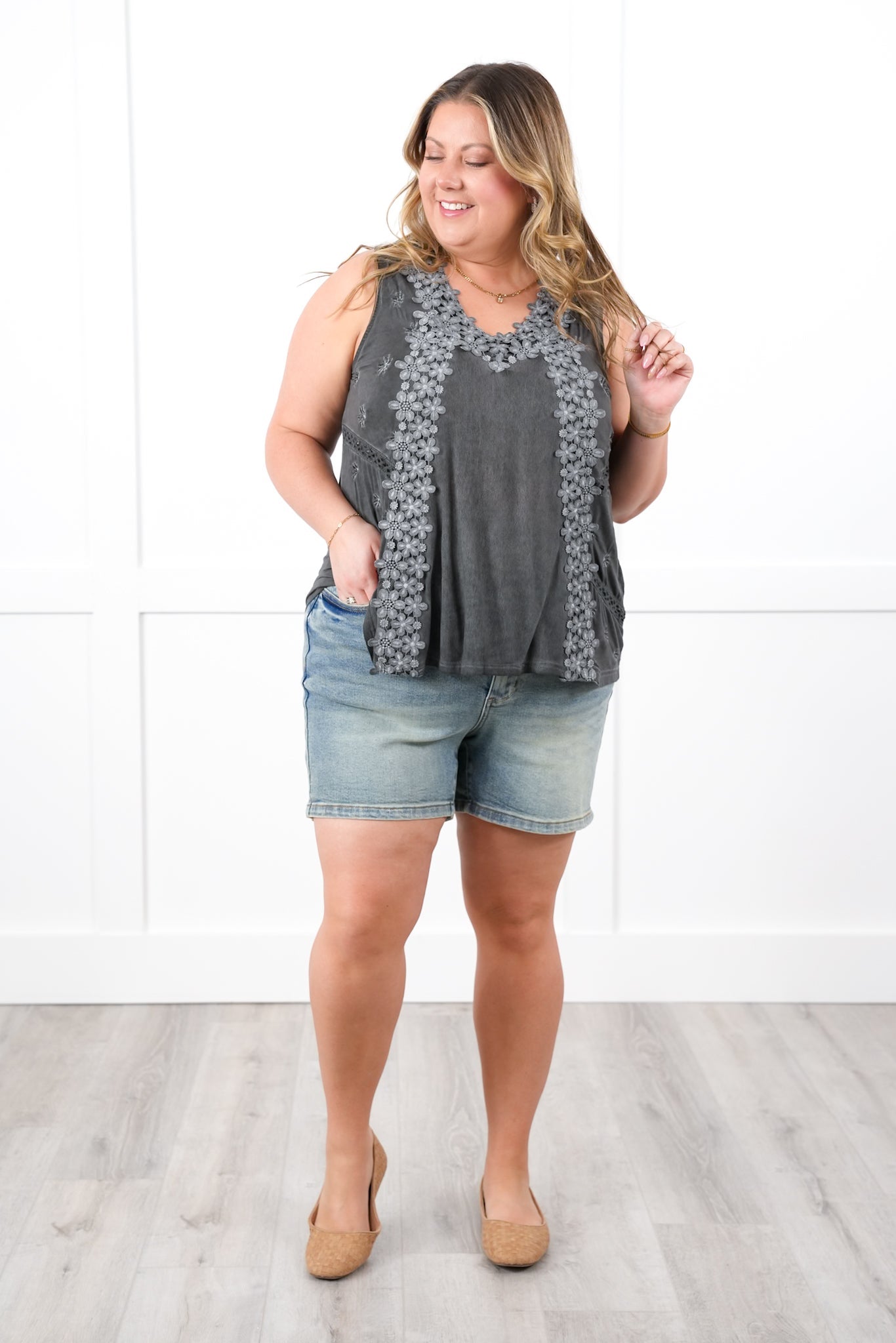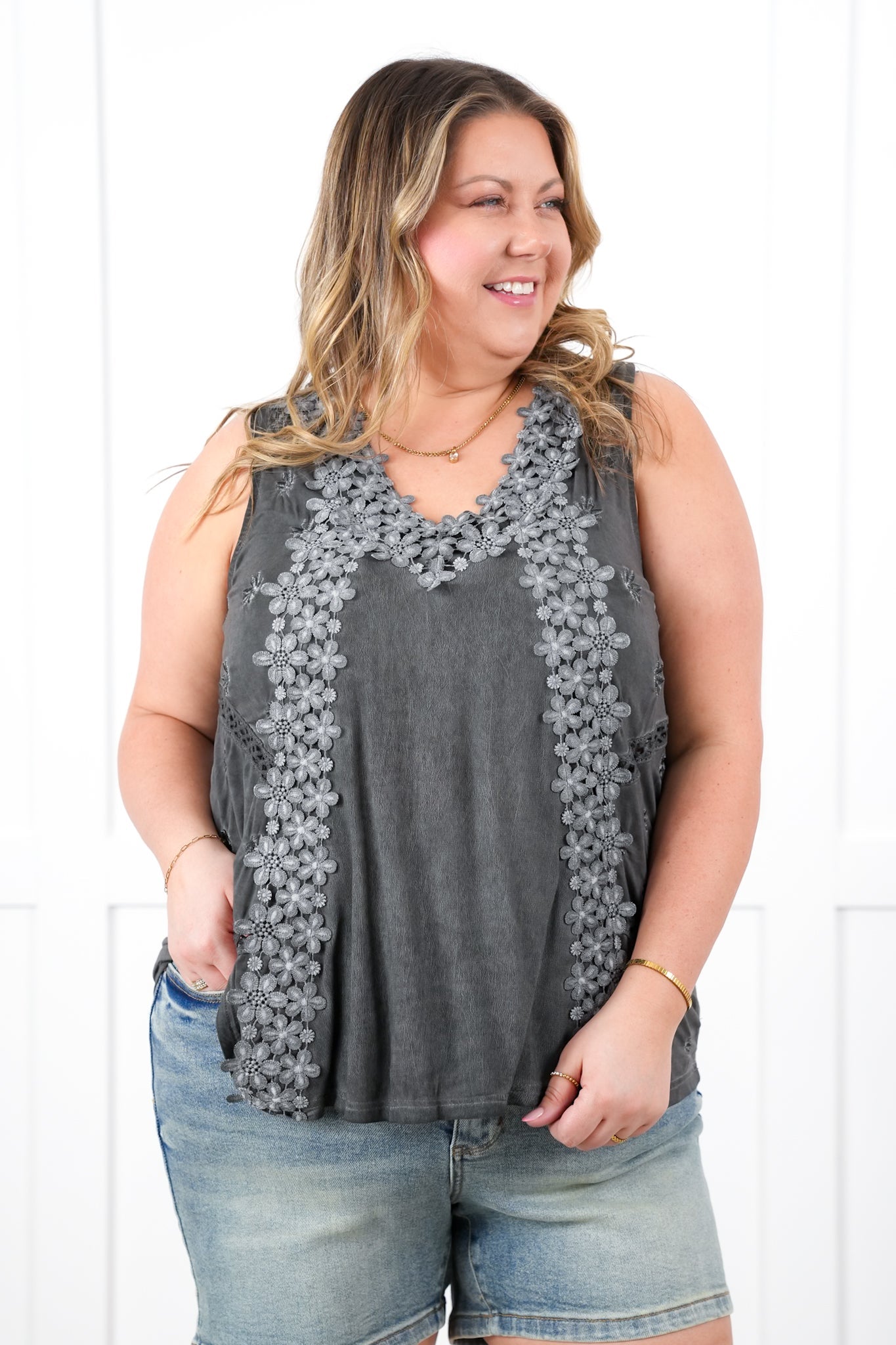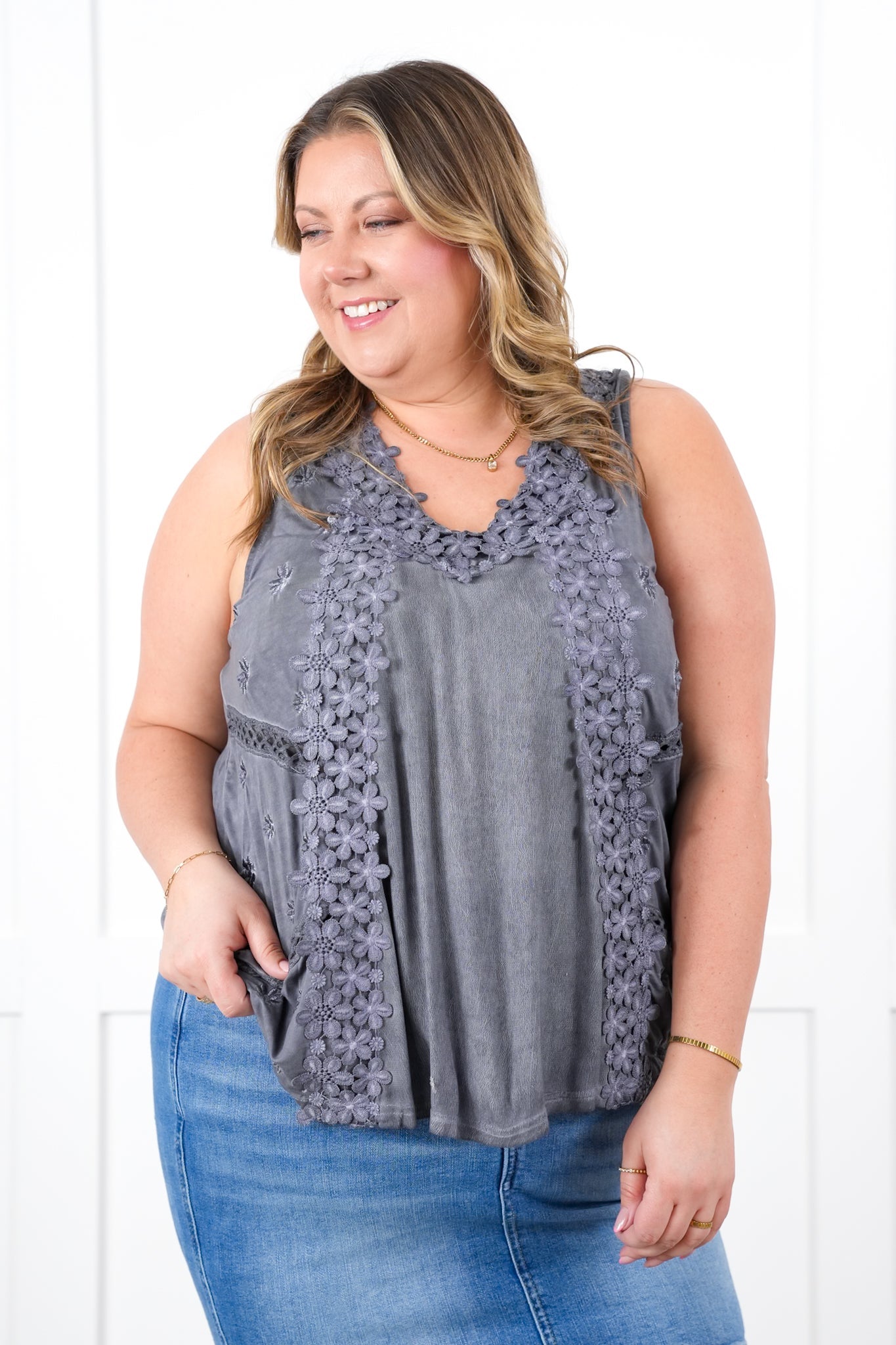 Fit: This tank offers a fabulous roomy fit — relaxed without being boxy. It’s so generously cut that even our 2XL gals can comfortably wear the XL for a drapey, easy vibe.