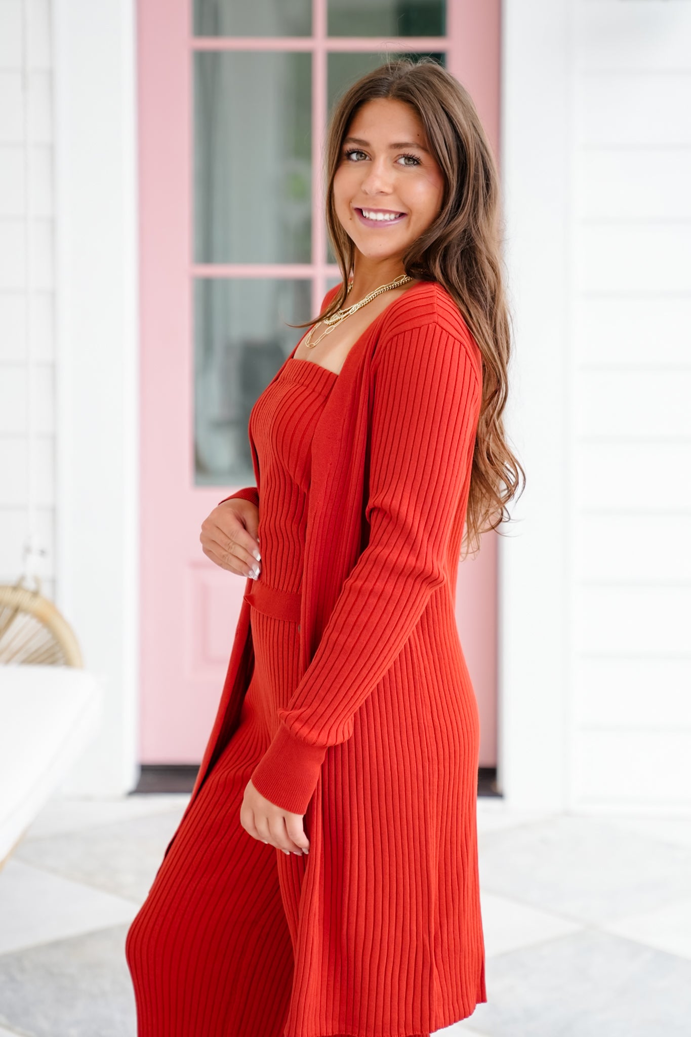 Ribbed Knit 3 Piece Cardigan, Tube Top and Pants Set