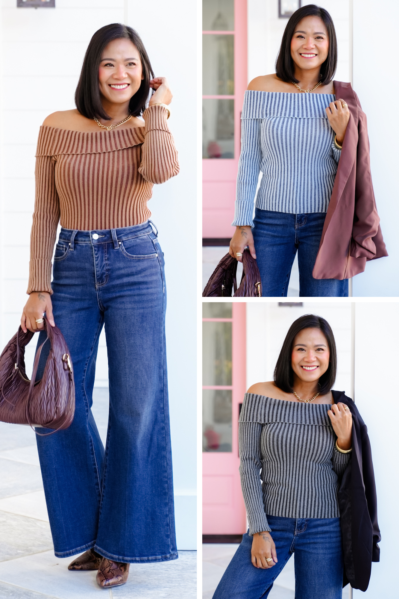 Ribbed Knit Long Sleeve Off Shoulder Top