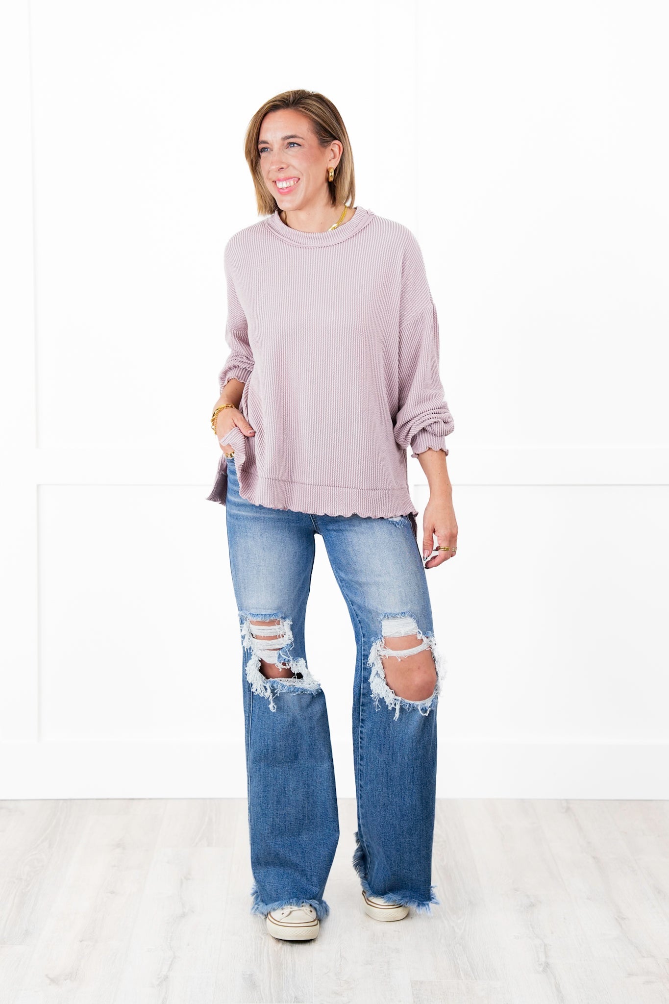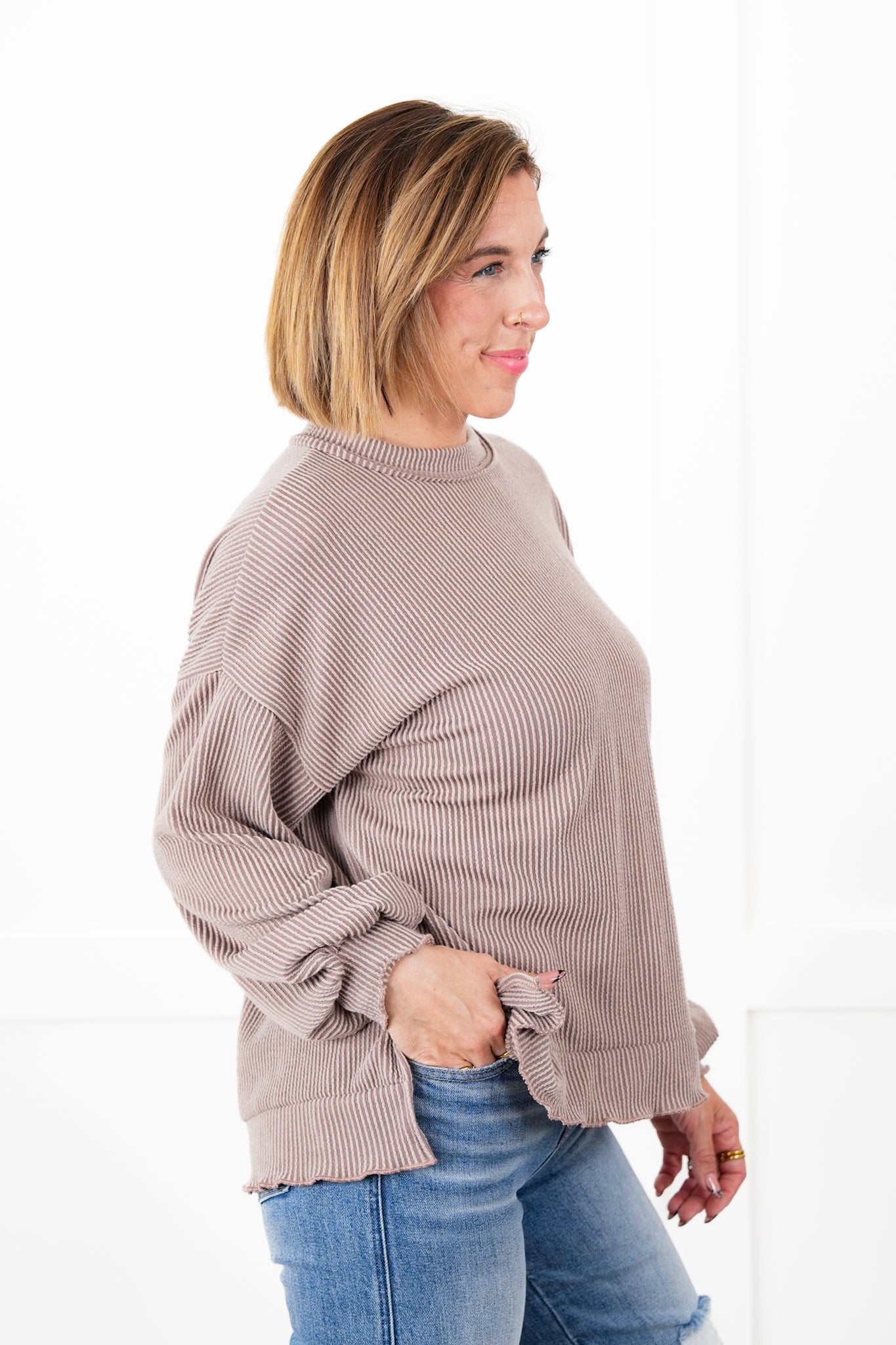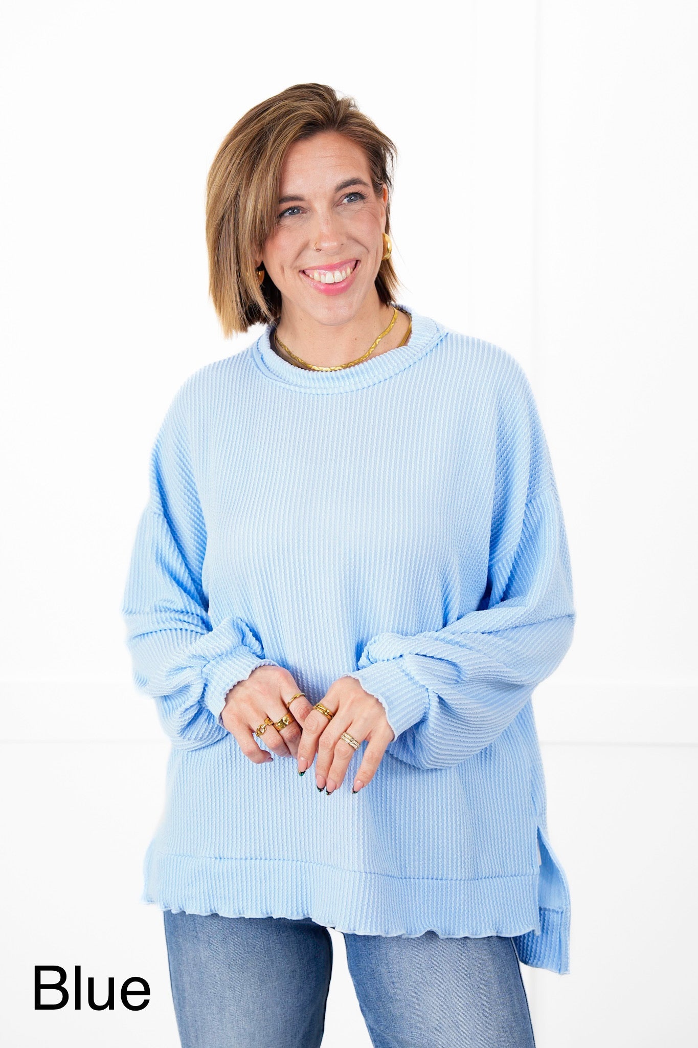 This ribbed pullover is your cozy new best friend. The long sleeves and relaxed fit make it perfect for layering or wearing solo, and the ribbed texture adds just the right amount of interest. Pair it with anything from high-waisted jeans to leggings. It’s a casual-chic style that works year-round.