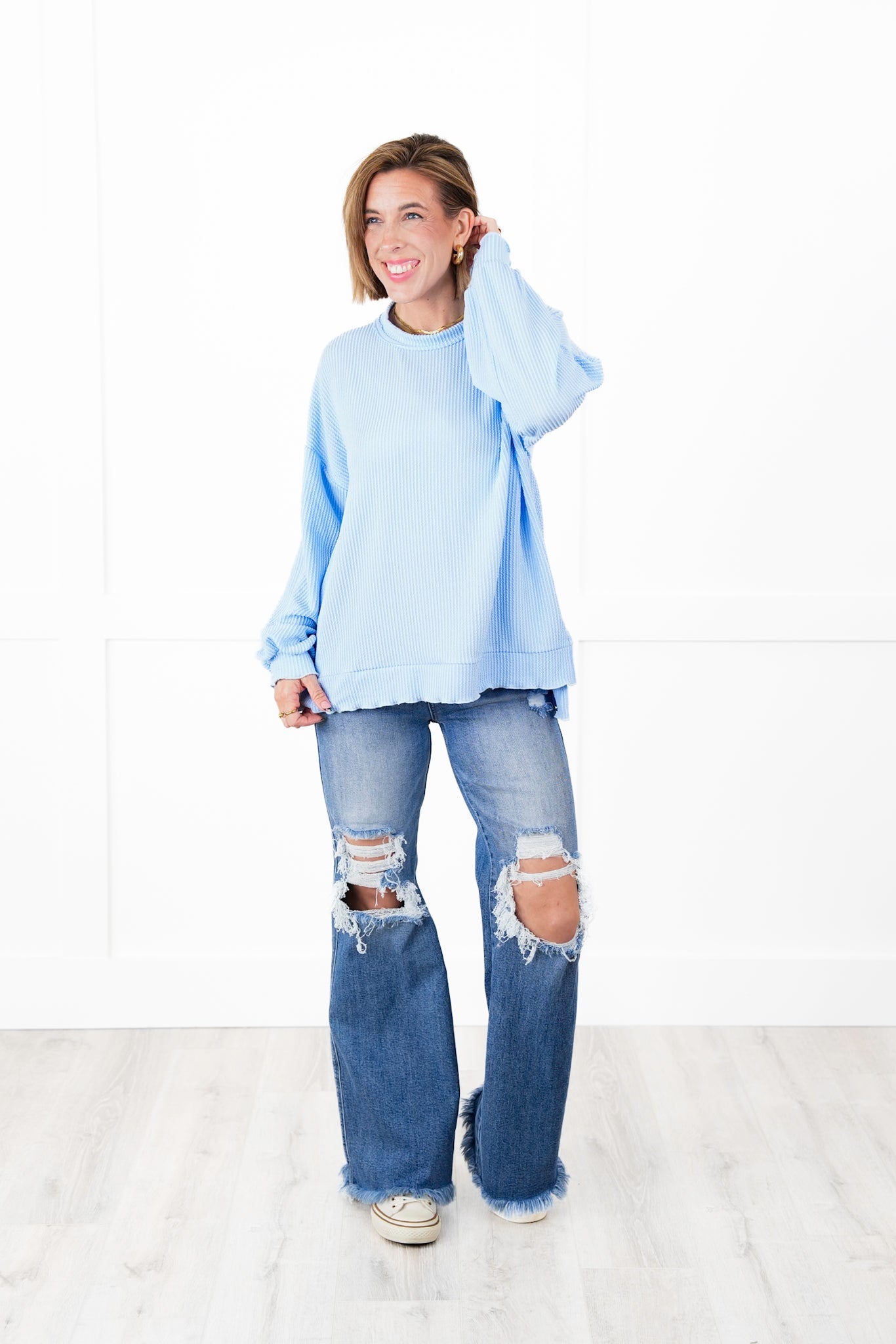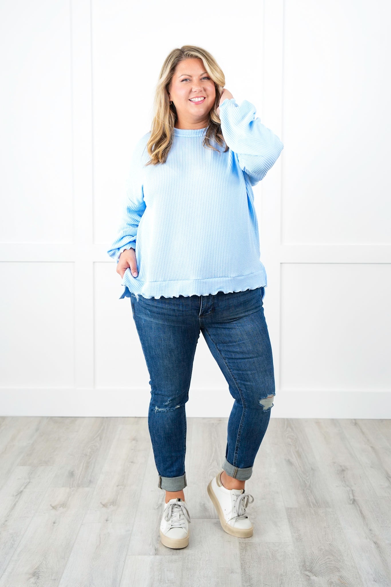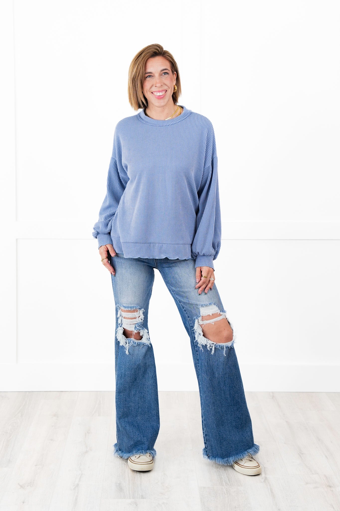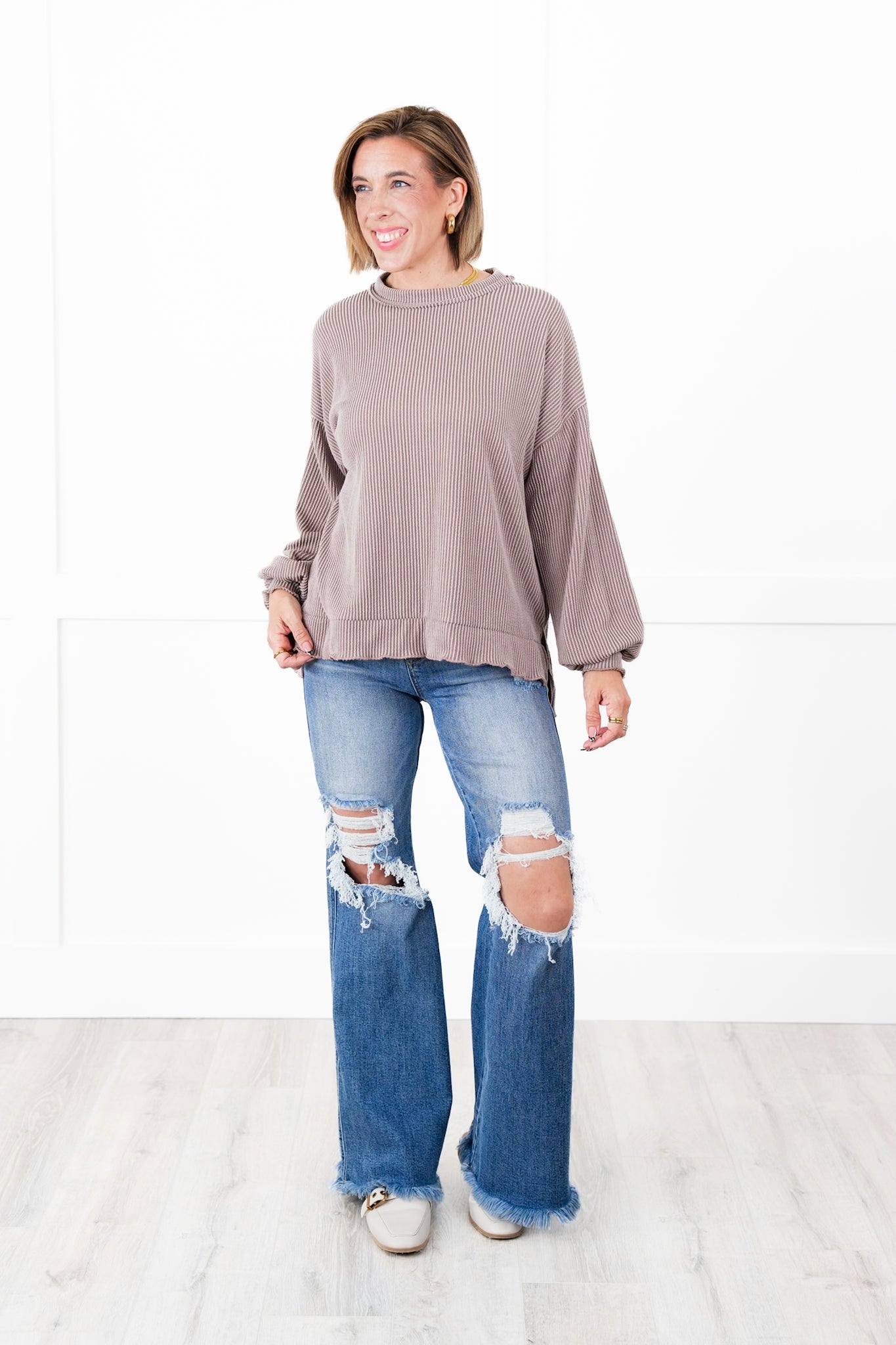 This ribbed pullover is your cozy new best friend. The long sleeves and relaxed fit make it perfect for layering or wearing solo, and the ribbed texture adds just the right amount of interest. Pair it with anything from high-waisted jeans to leggings. It’s a casual-chic style that works year-round.