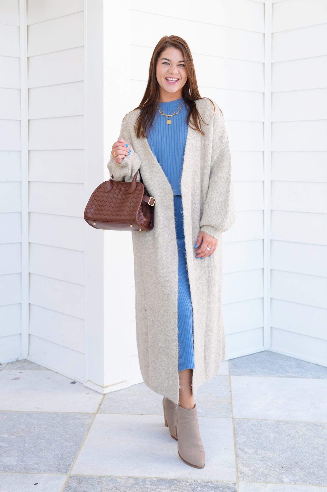 This ribbed knit sweater top and skirt set is the ultimate effortless chic look! The lightweight knit drapes beautifully, featuring a boxy cut top that exudes a laid-back vibe and a midi skirt with side slits and an elastic waist that moves with you. It’s polished yet relaxed, making it perfect for dressing up with heels or keeping casual with sneakers.